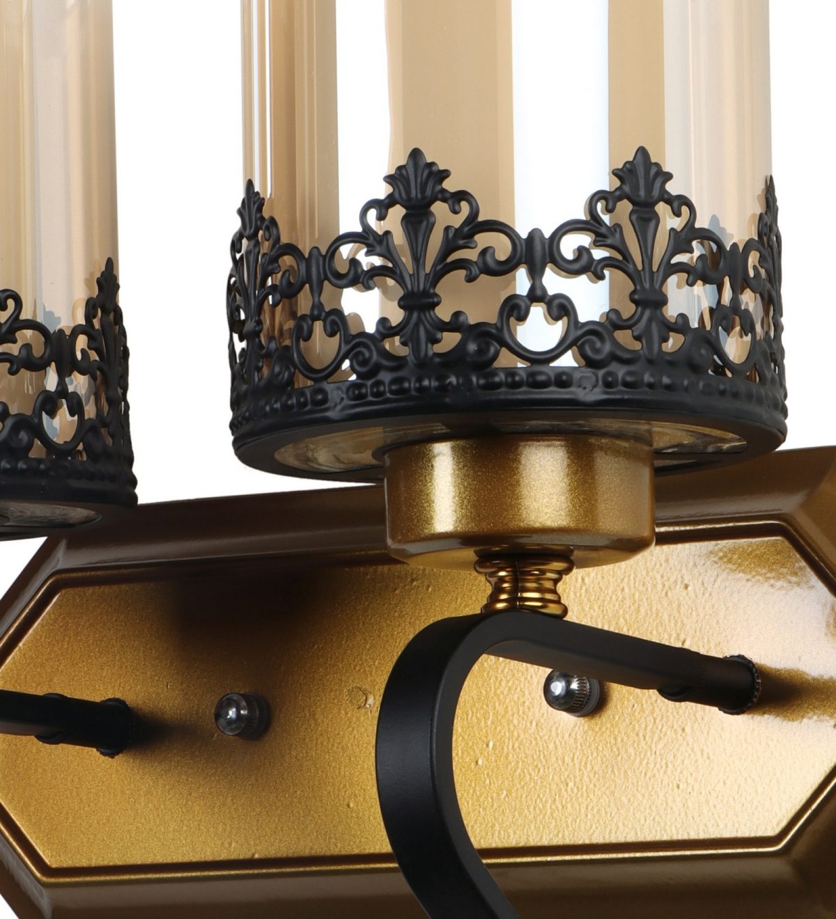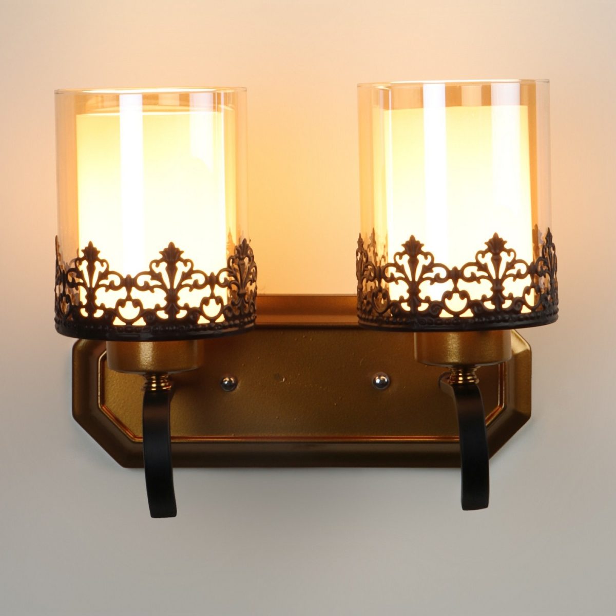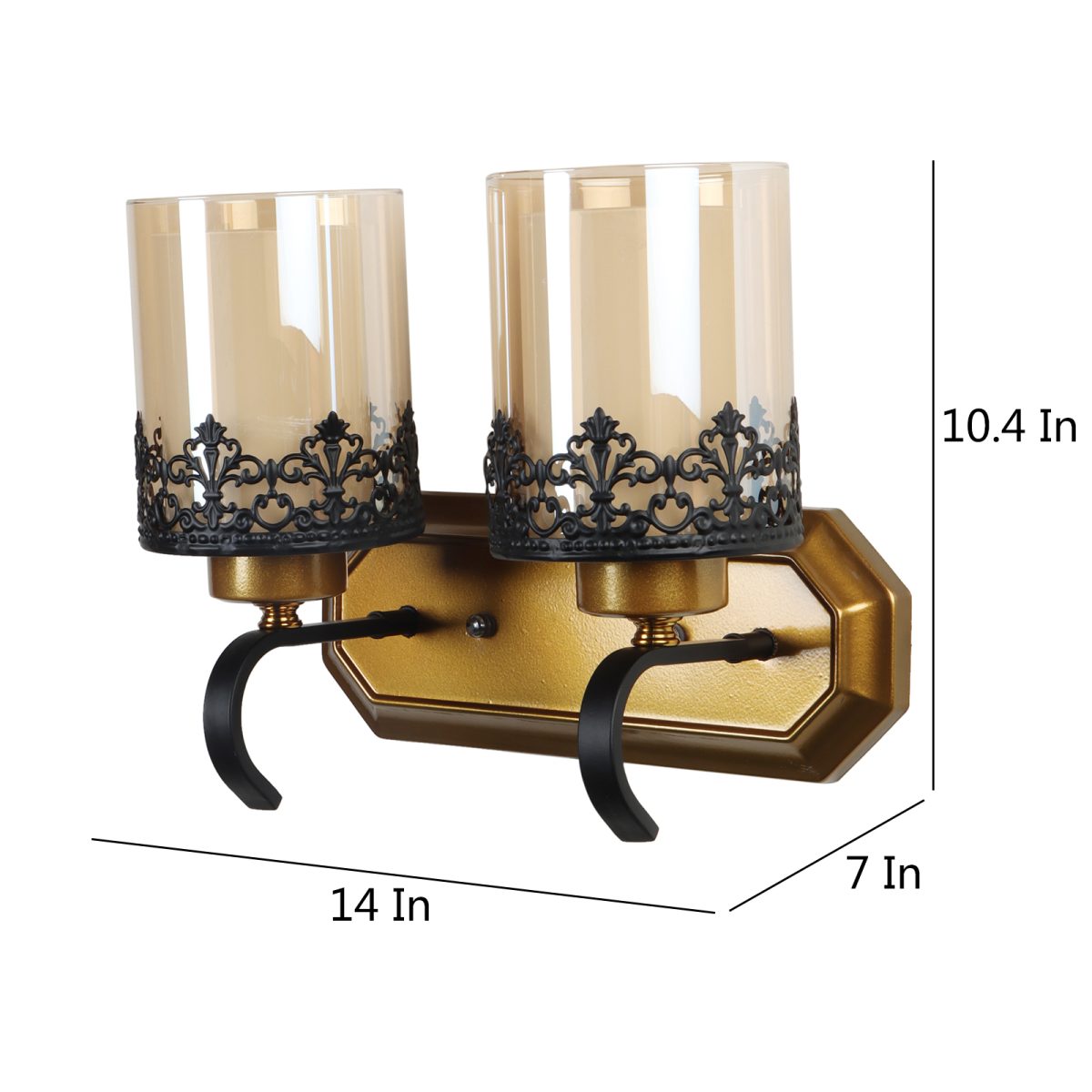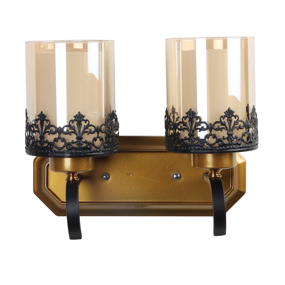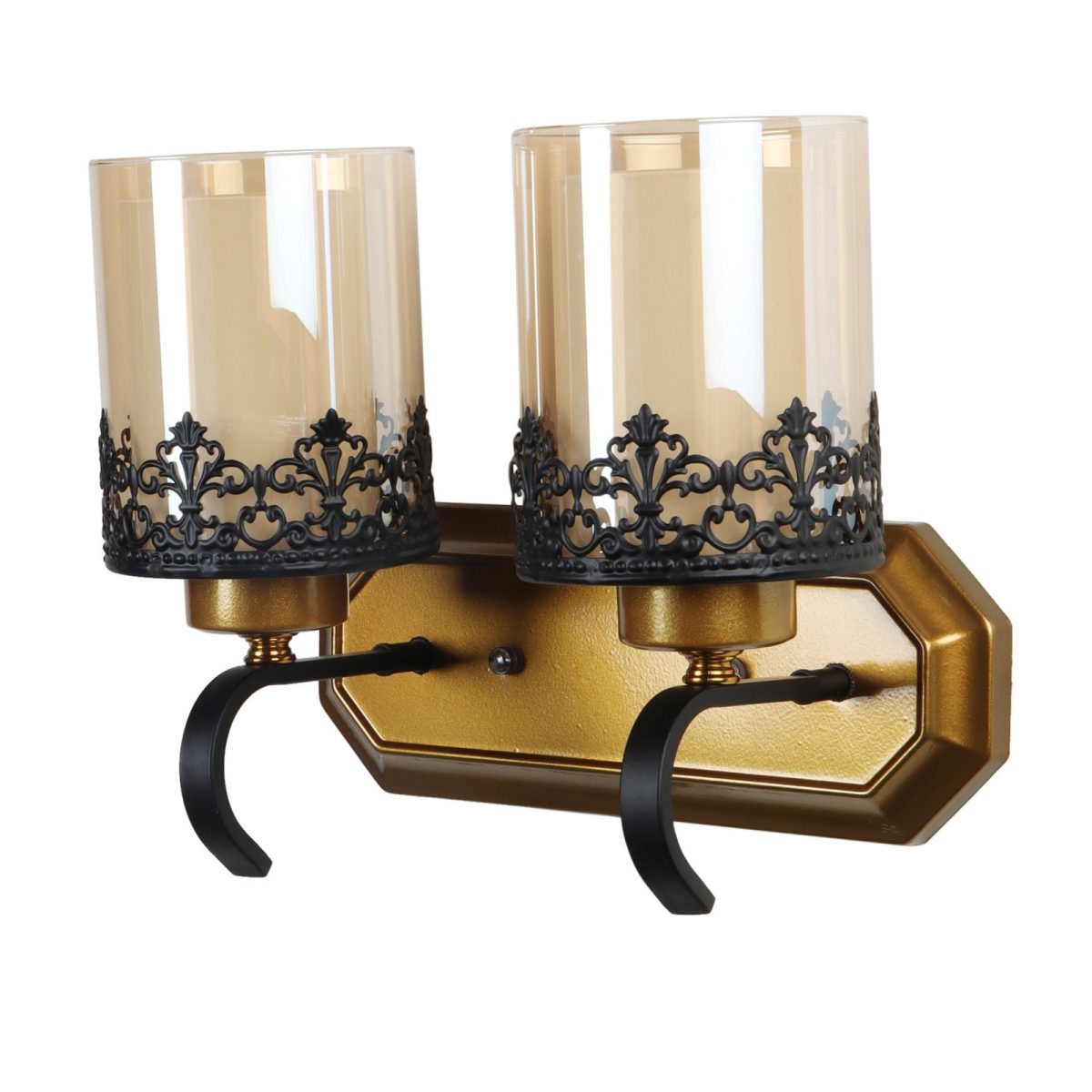 Antique gold, brown finish double wall light having round, cylindrical two layered champaign coloured glass. It is maintenance free, easy to remove glass and wash them, comes with an E27 holder, only the change of lamp is required, which is available locally everywhere. Application includes both residential and commercial premises wherever it matches with your interiors. Matching single wall light code – WL2729. Can be customized as per requirement in case of bulk quantity, LAMP NOT INCLUDED.