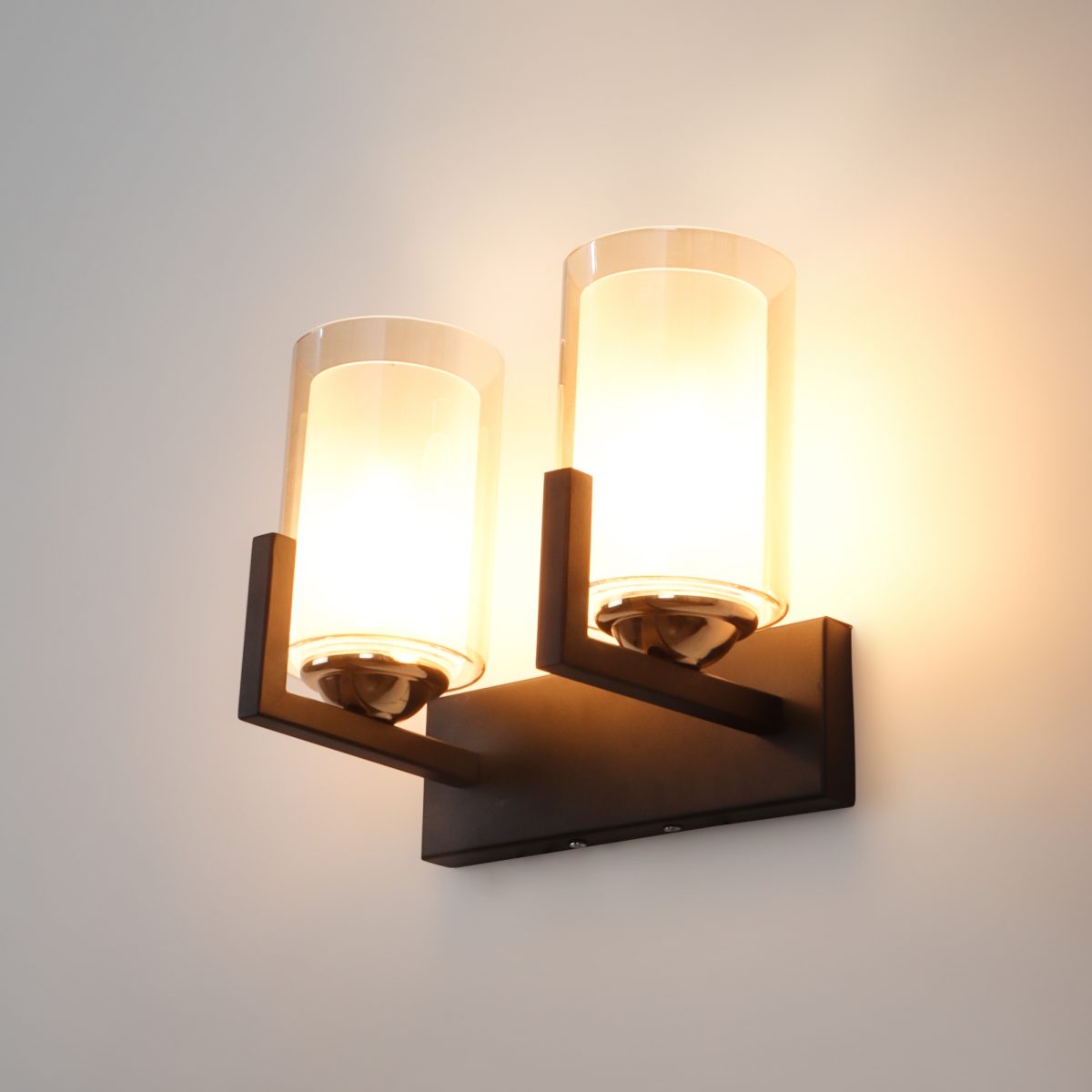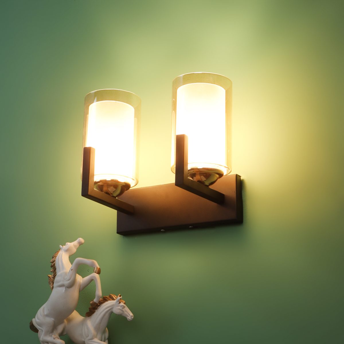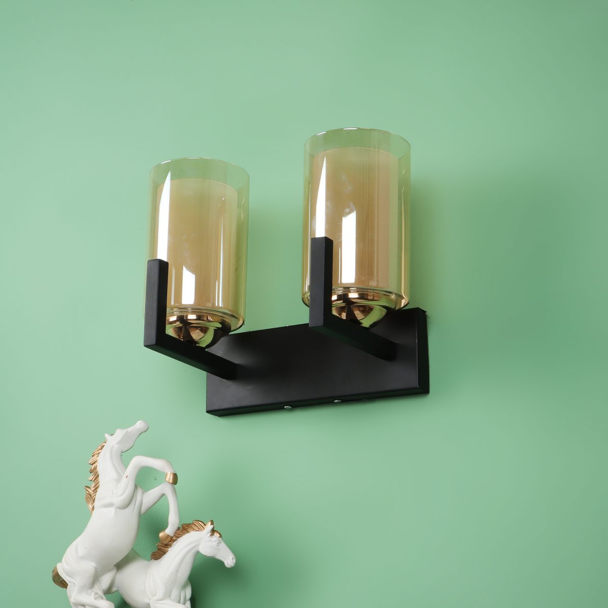 Brown, Gold finish, mild steel double wall light in Champaign coloured two layered glasses. It is maintenance free, comes with an E27 holder, only the change of lamp is required, which is available locally everywhere. Application includes both residential and commercial premises wherever it matches with your interiors. Can be customized as per requirement. LAMP NOT INCLUDED.