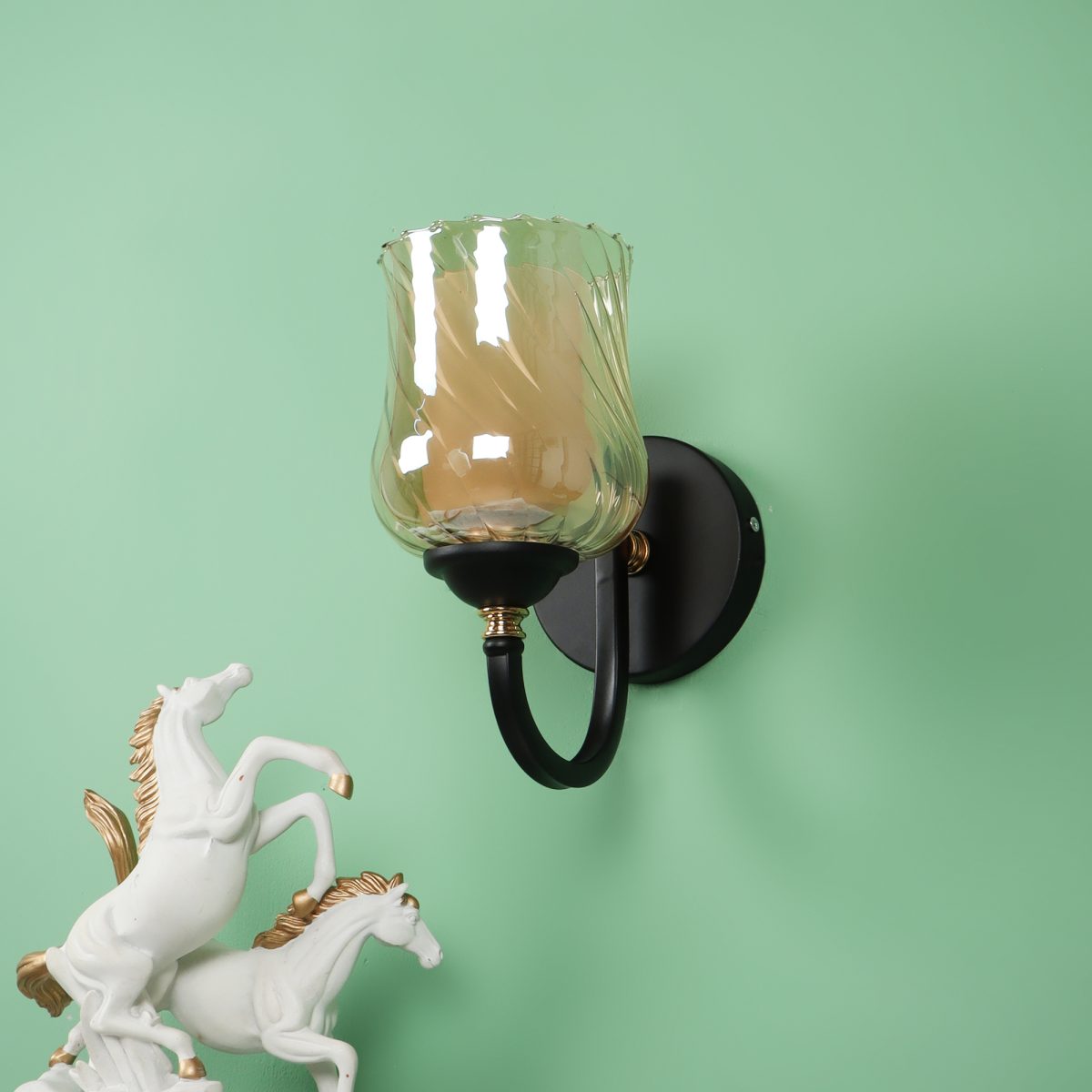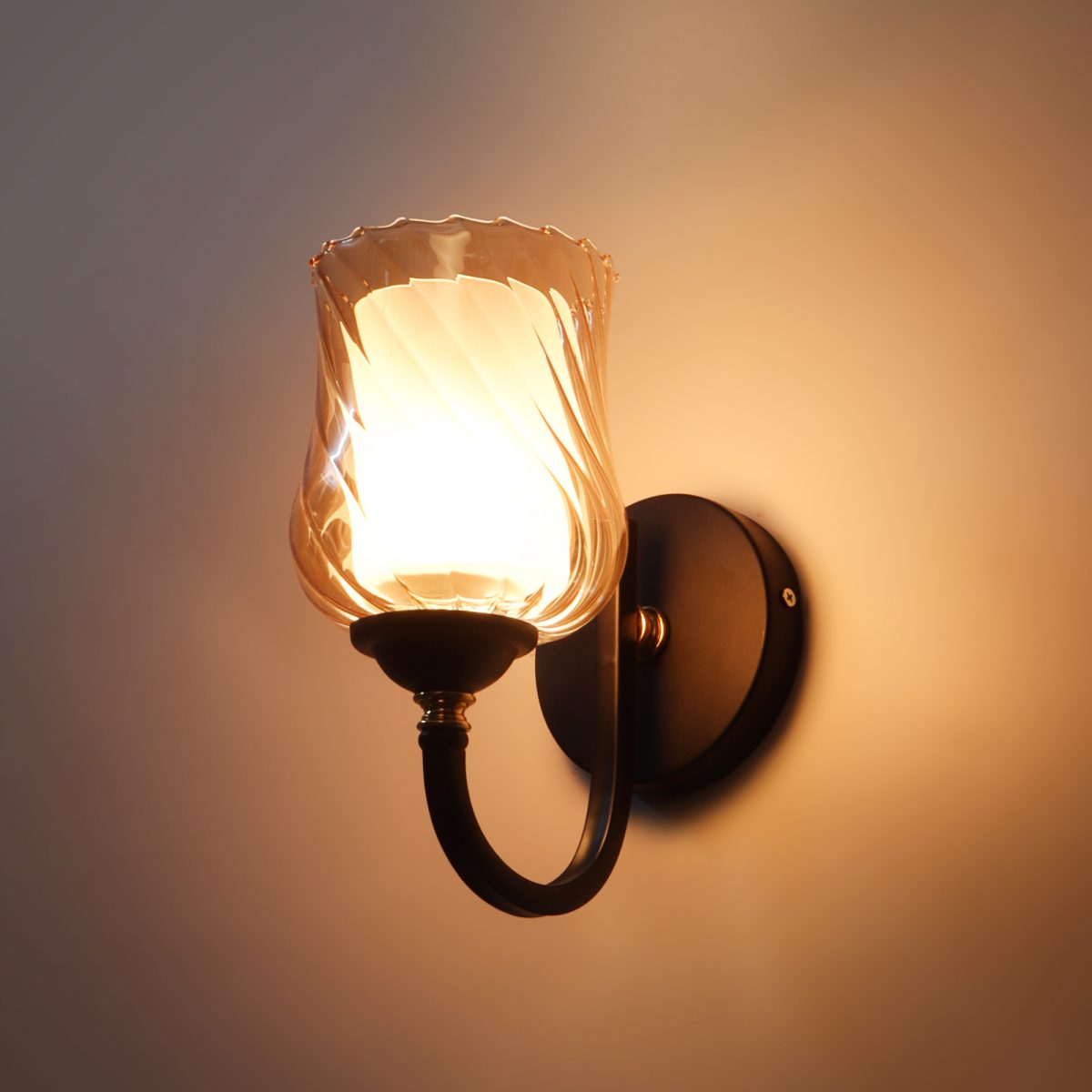 Brown, Gold finish, mild steel single wall light in Champaign colour two layered glass. It is maintenance free, comes with an E27 holder, only the change of lamp is required, which is available locally everywhere. Application includes both residential and commercial premises wherever it matches with your interiors. Can be customized as per requirement. LAMP NOT INCLUDED.