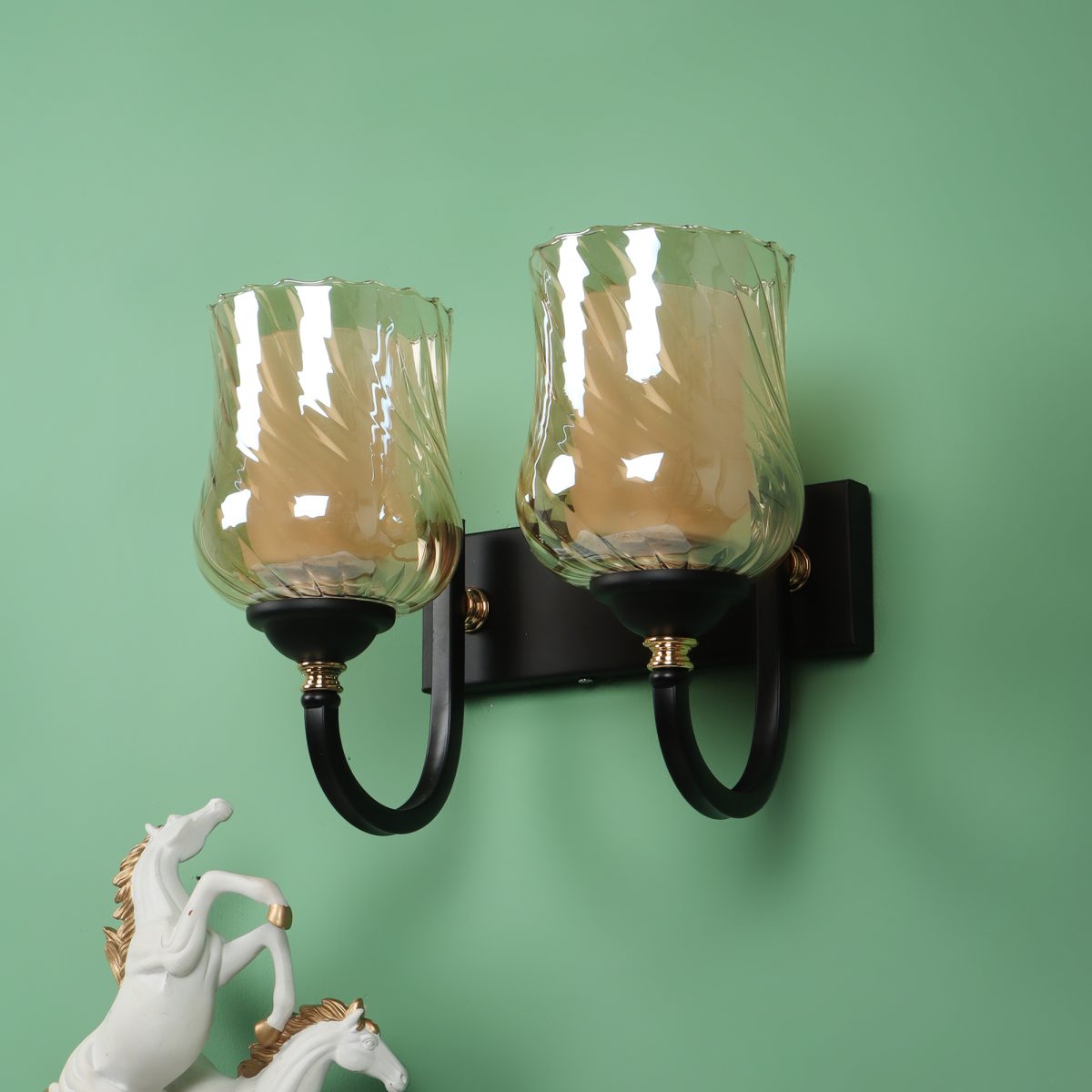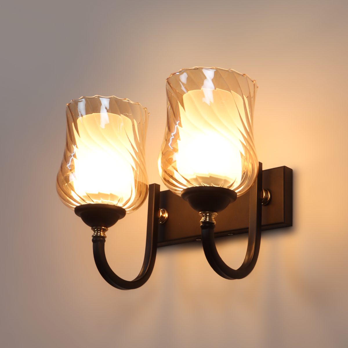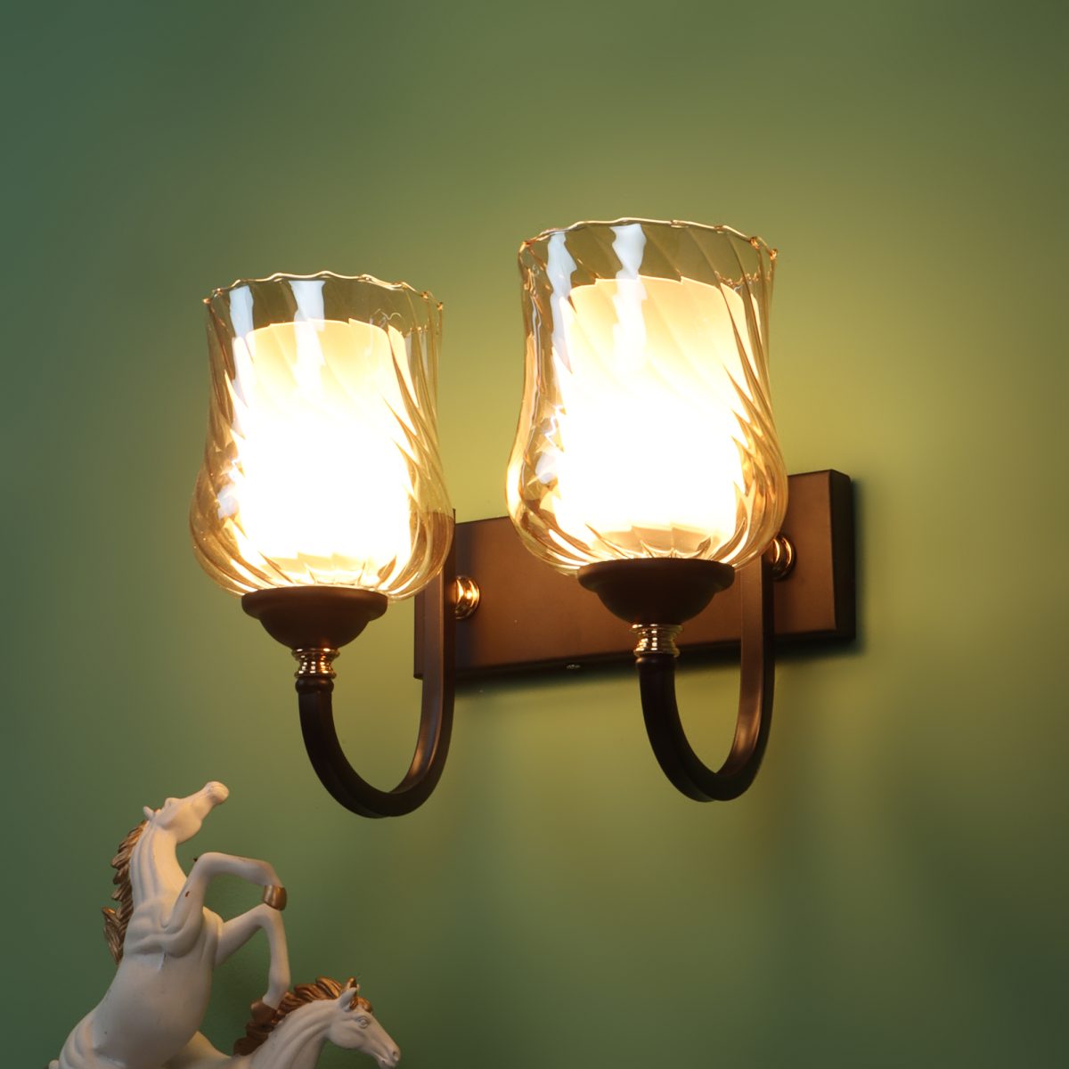 Brown, Gold finish, mild steel double wall light in Champaign colour two layered glasses. It is maintenance free, comes with an E27 holder, only the change of lamp is required, which is available locally everywhere. Application includes both residential and commercial premises wherever it matches with your interiors. Can be customized as per requirement. LAMP NOT INCLUDED.