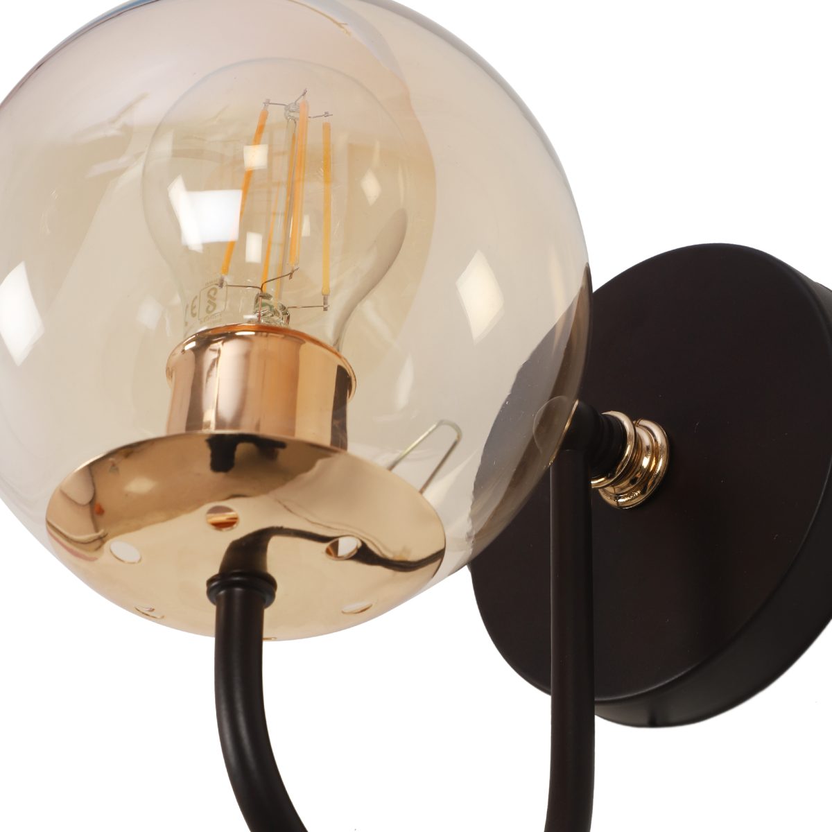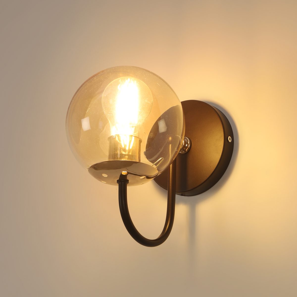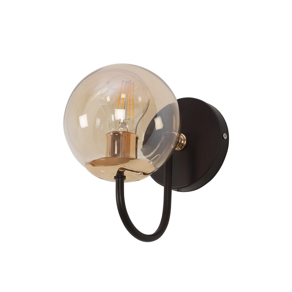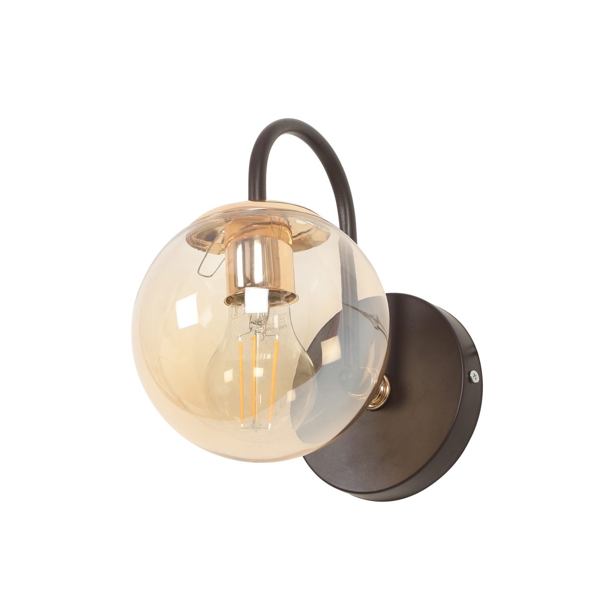 Brown gold finish single wall light with small round globe (doom) type champaign coloured glass . It is maintenance free, easy to remove glass and wash it. Comes with an E27 holder, only the change of lamp is required, which is available locally everywhere. Application includes both residential and commercial premises wherever it matches with your interiors. Filament lamp is recommended to enhance its beauty. Can be customized as per requirement. LAMP NOT INCLUDED.