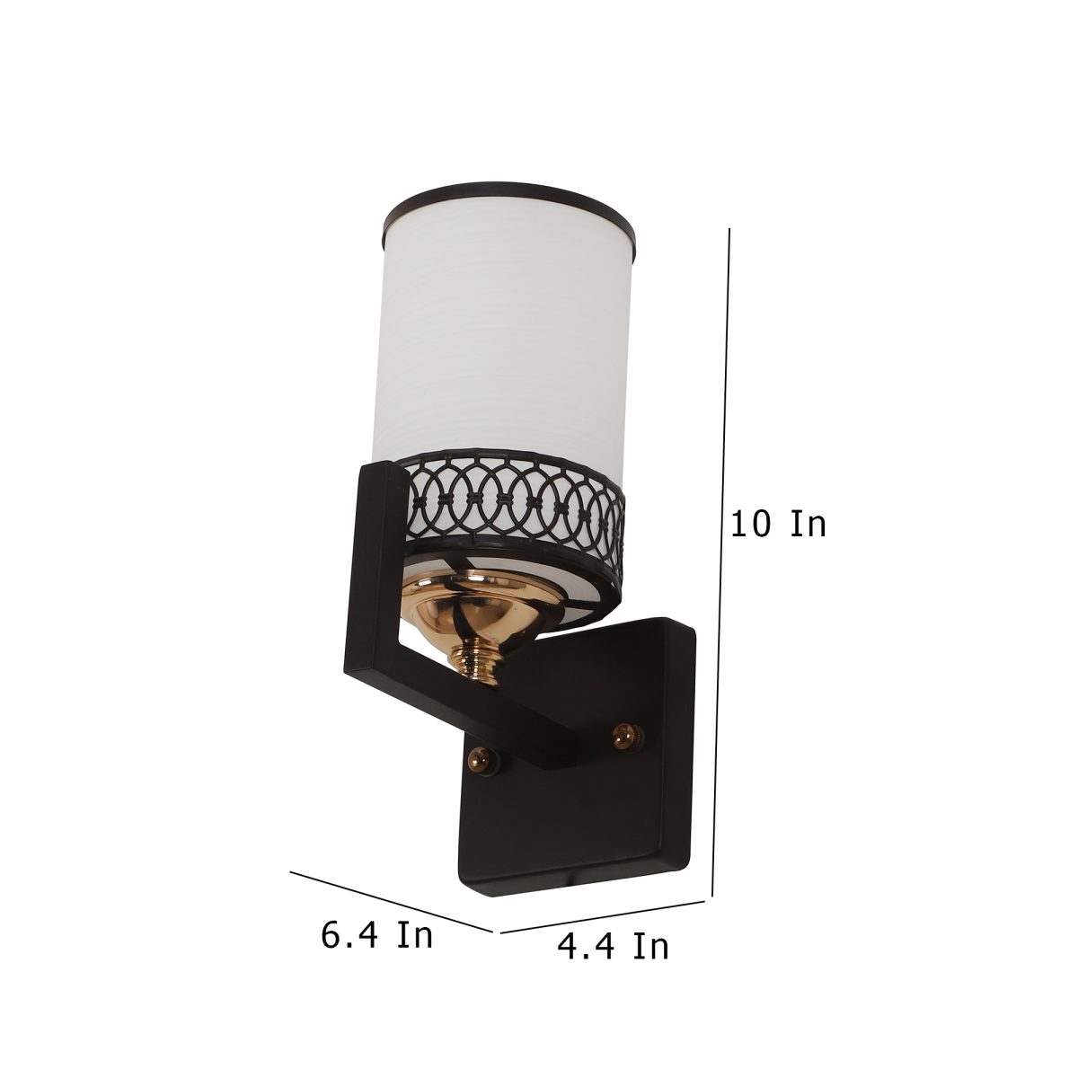 Dark brown finish single wall light having cylinderical white glass having self textured design mounted on a designer frame made of mild steel. It is maintenance free. It is easy to remove glass and wash it. Comes with an E27 holder, only the change of lamp is required, which is available locally everywhere. Application includes both residential and commercial premises wherever it matches with your interiors. Can be customized as per requirement, LAMP NOT INCLUDED.