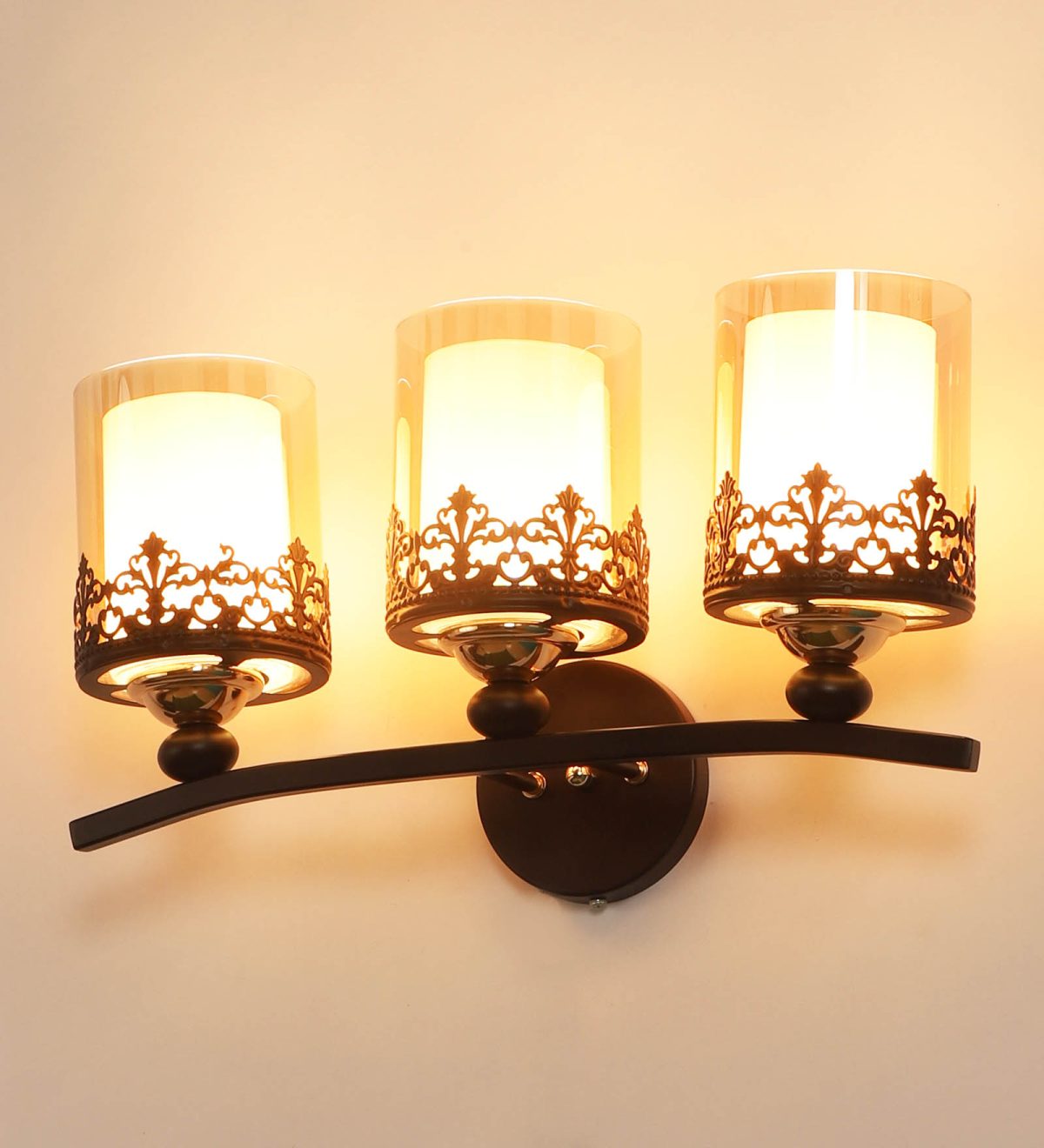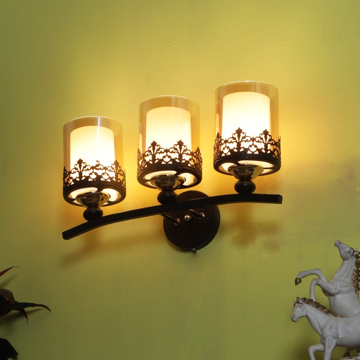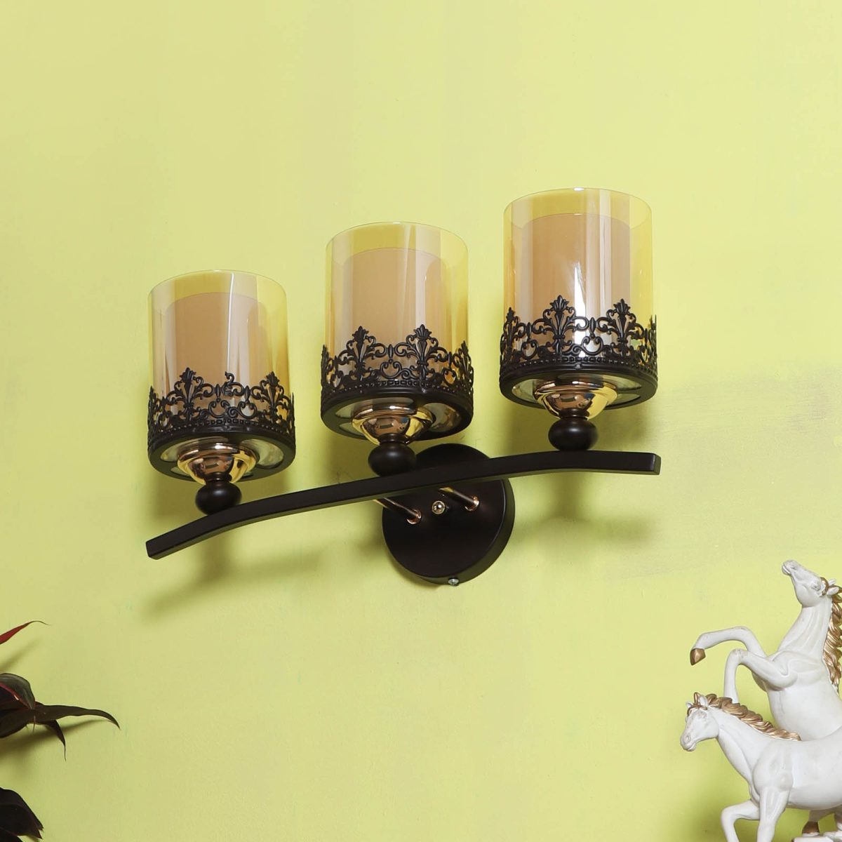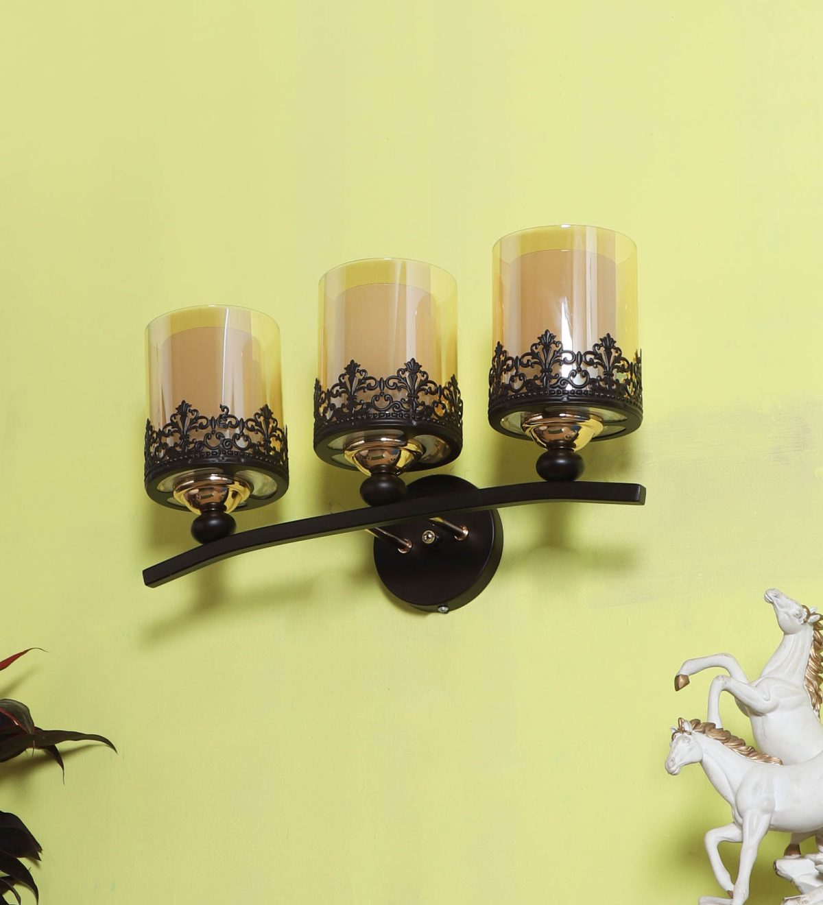 Brown finish tripple wall light. Can be customized as per requirement. LAMP NOT INCLUDED.