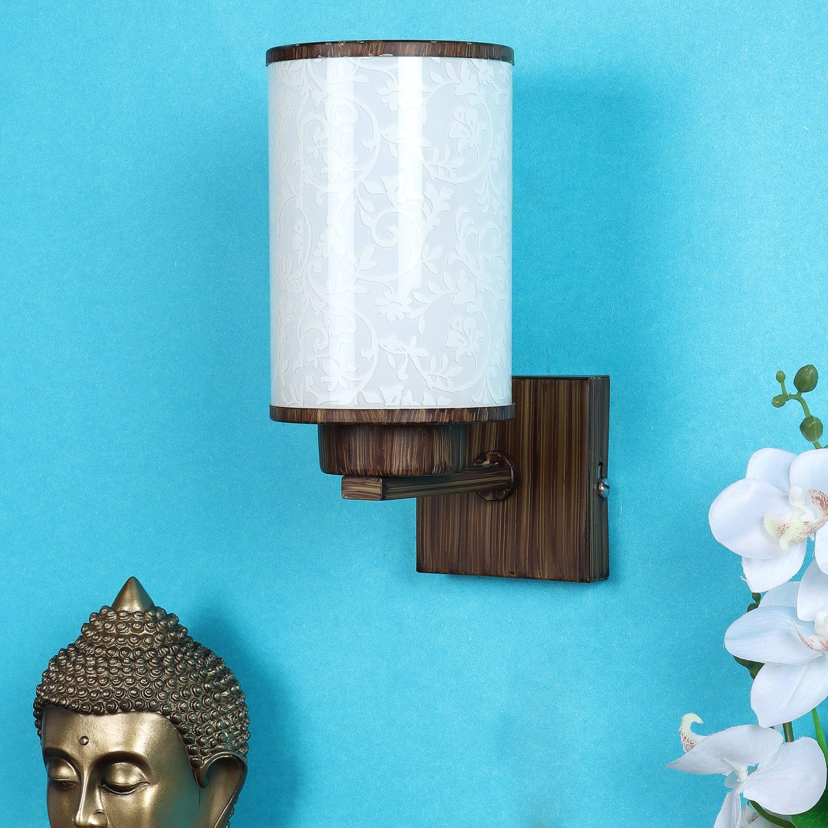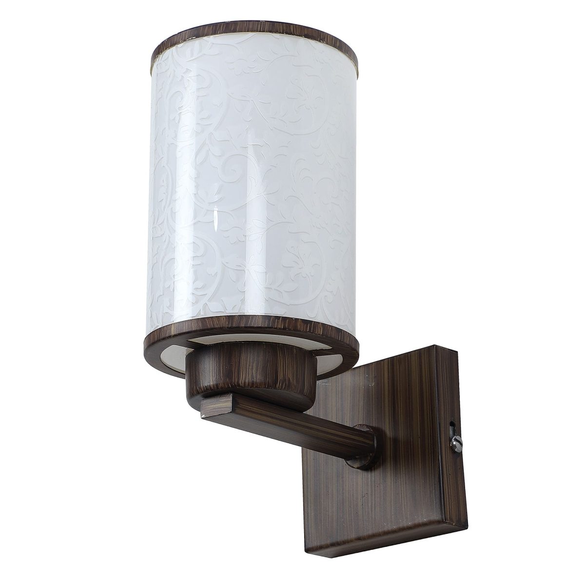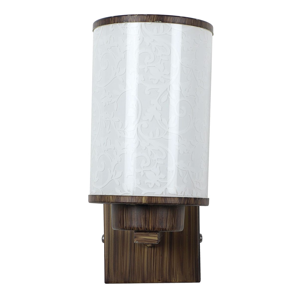 Dark brown (wood) finish single wall light made mild steel, with a round, cylindrical long glass with a nice floral design. Looks amazing when lit. It is maintenance free, easy to remove glass and wash it, comes with an E27 holder, only the change of lamp is required, which is available locally everywhere. You can of course swap out the bulb for one that is dimmable, has a higher light output or a different color temperature. Application includes both residential and commercial premises wherever it matches with your interiors. Matching double wall light code – WL2262. Can be customized as per requirement in case of bulk quantities. Lamp not included.