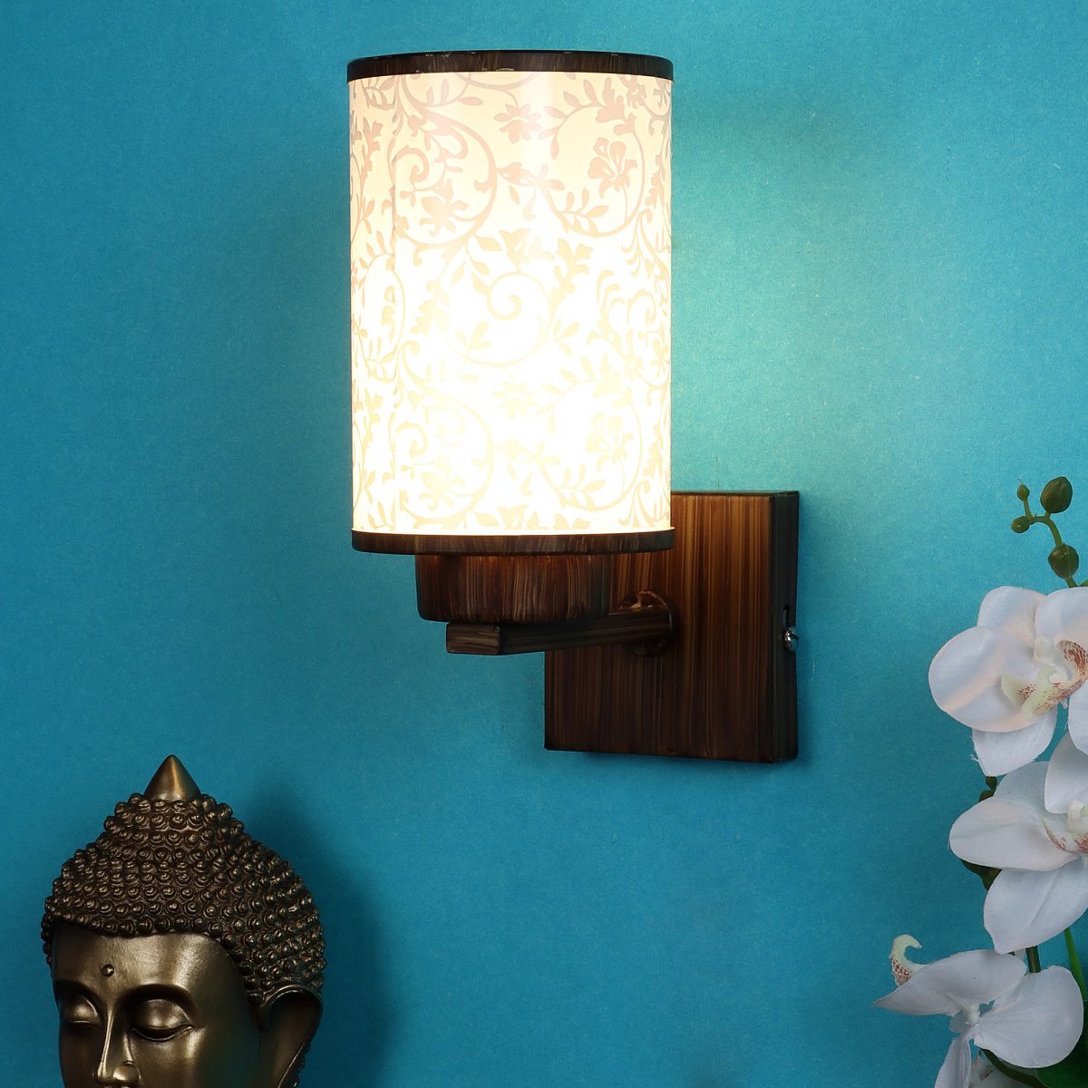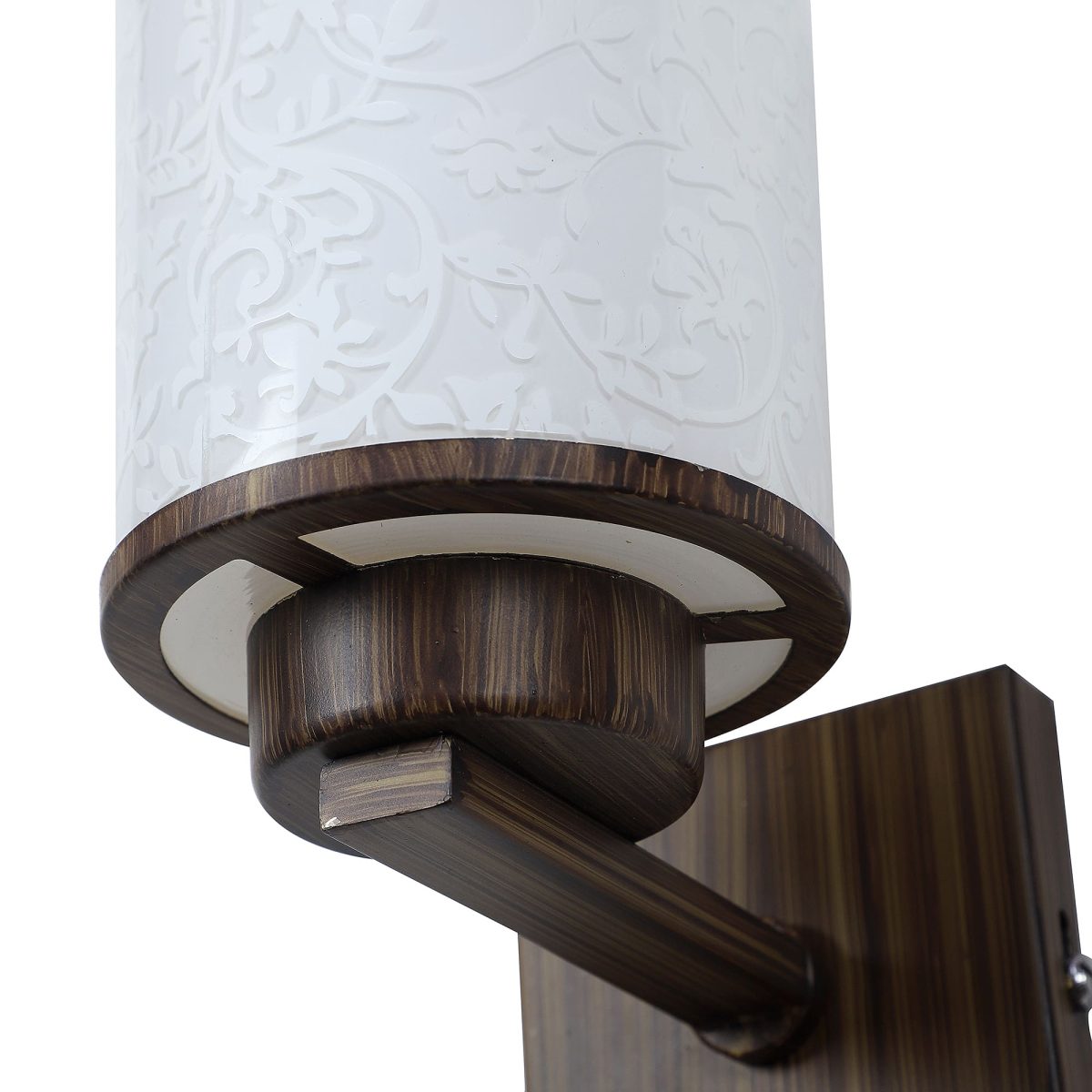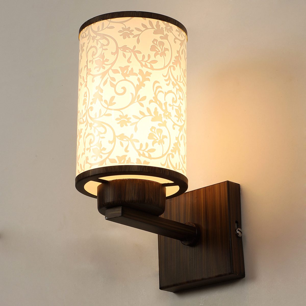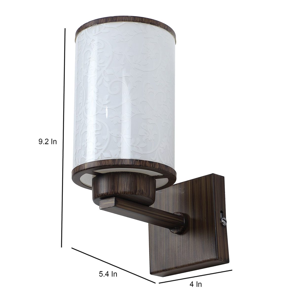 Dark brown (wood) finish single wall light made mild steel, with a round, cylindrical long glass with a nice floral design. Looks amazing when lit. It is maintenance free, easy to remove glass and wash it, comes with an E27 holder, only the change of lamp is required, which is available locally everywhere. You can of course swap out the bulb for one that is dimmable, has a higher light output or a different color temperature. Application includes both residential and commercial premises wherever it matches with your interiors. Matching double wall light code – WL2262. Can be customized as per requirement in case of bulk quantities. Lamp not included.