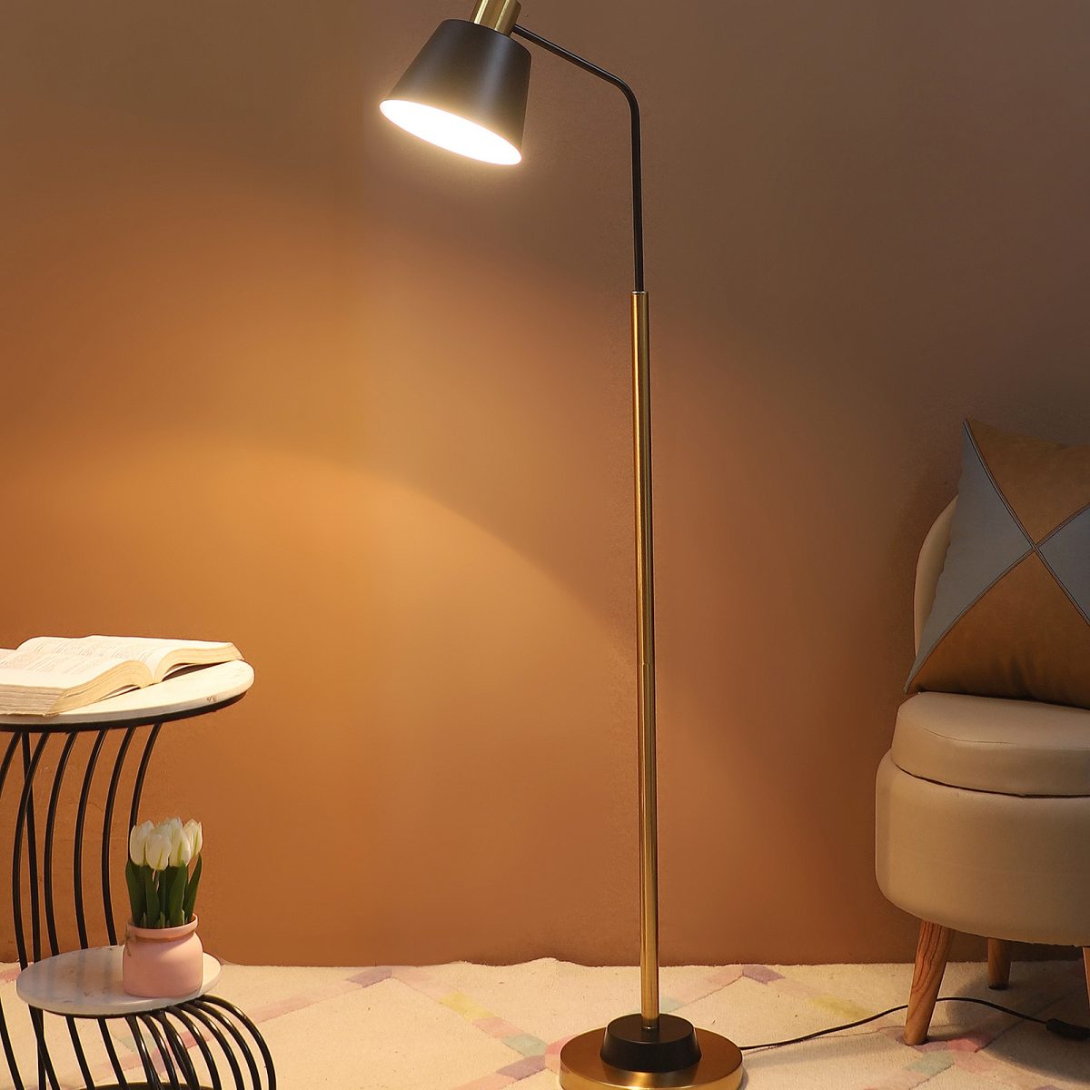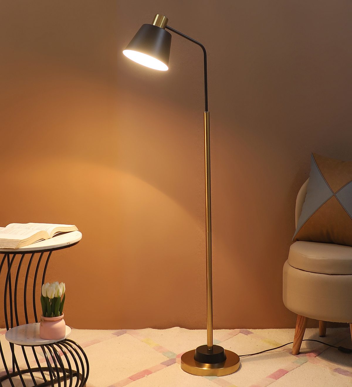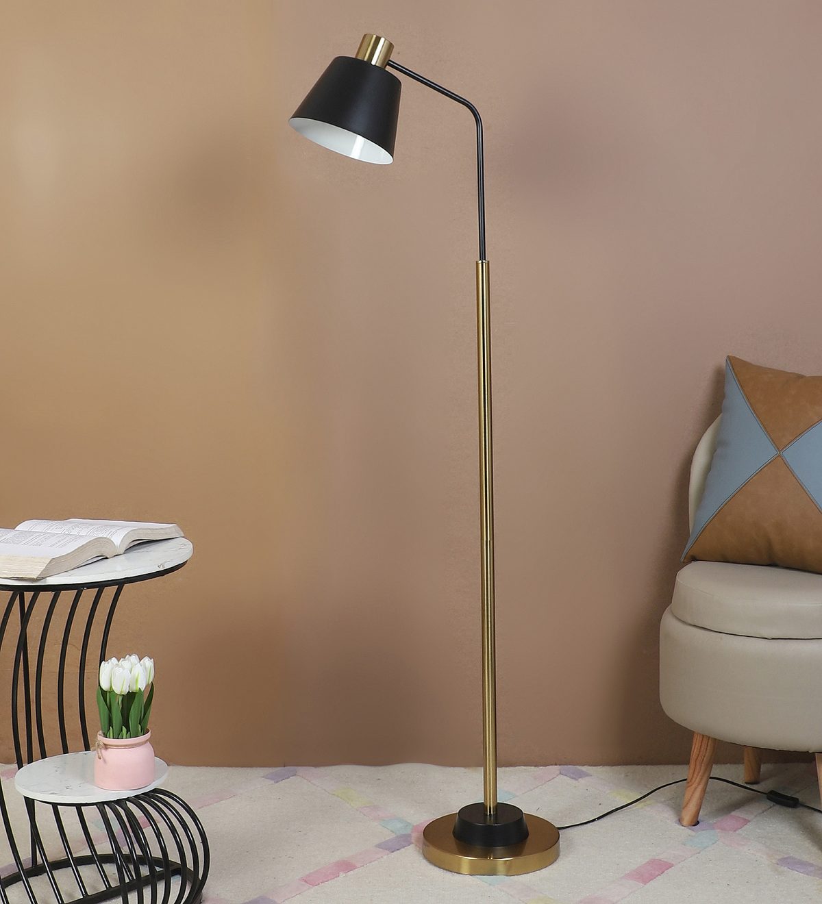 LEARC gold bronze and black finish floor lamp. LAMP NOT INCLUDED.
