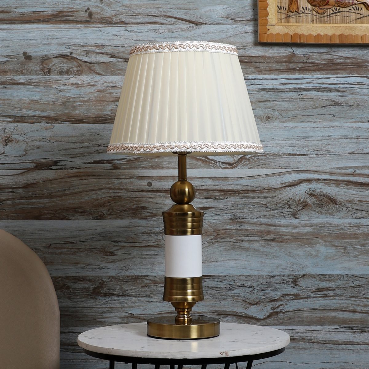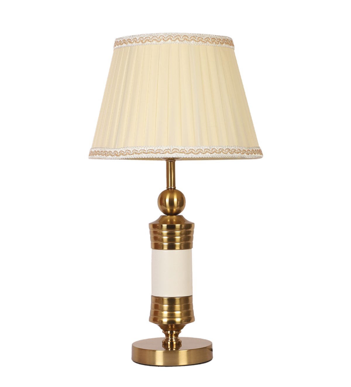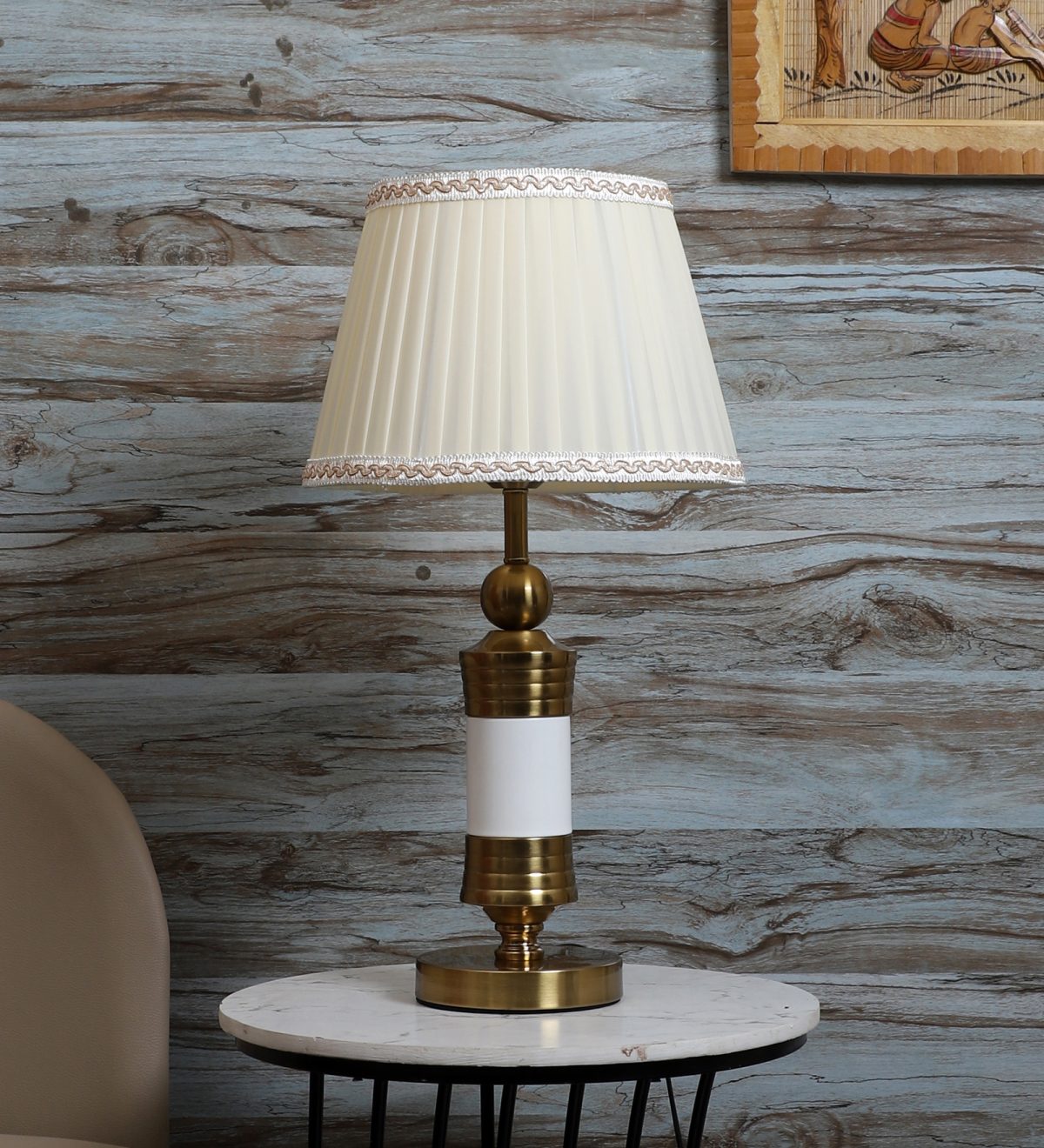 LEARC gold bronze and white finish table lamp with light gold shade having golden border TL5017-D