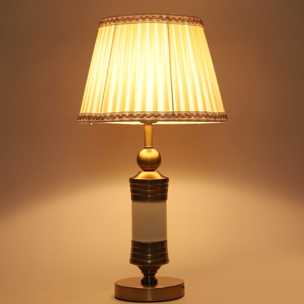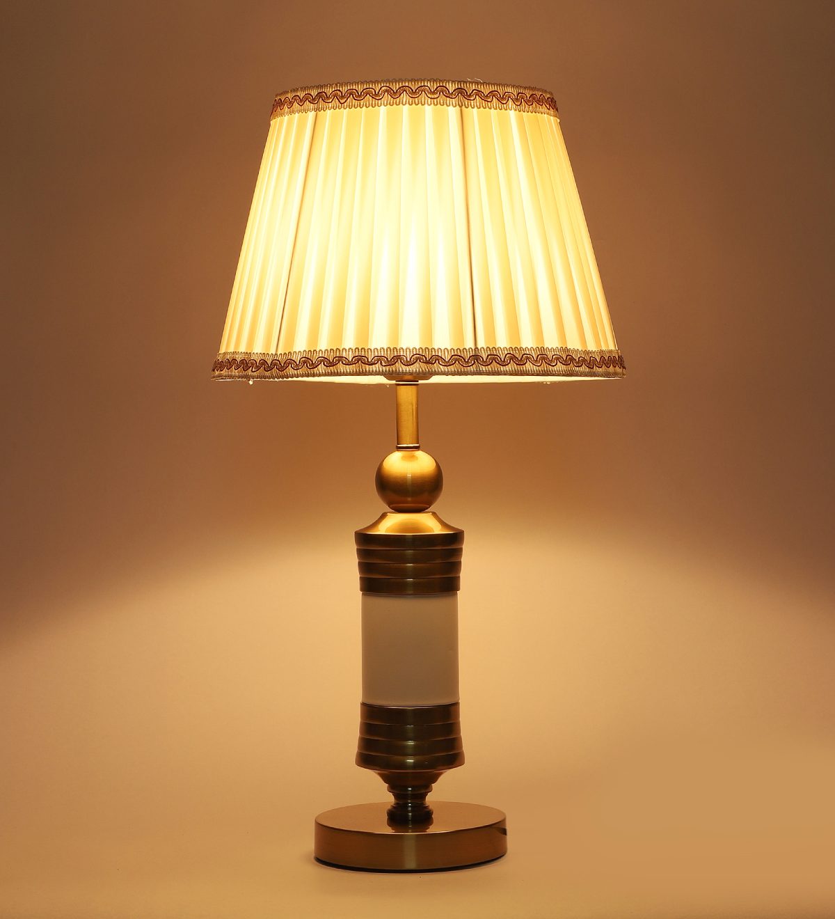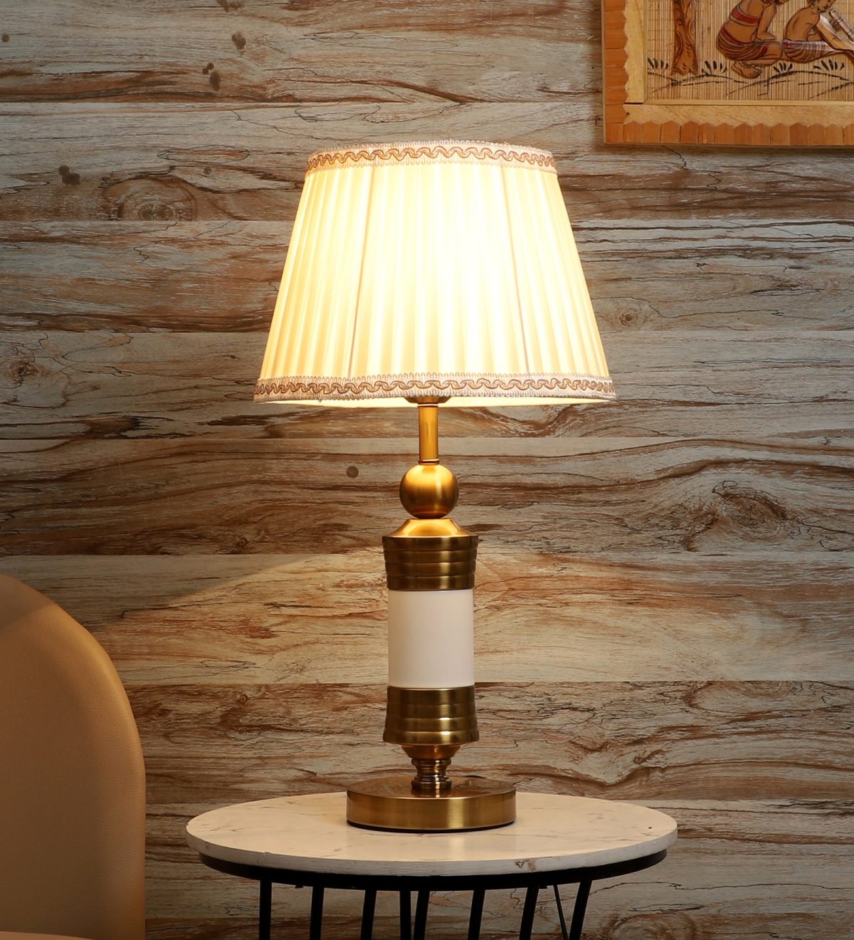 LEARC gold bronze and white finish table lamp with light gold shade having golden border TL5017-D