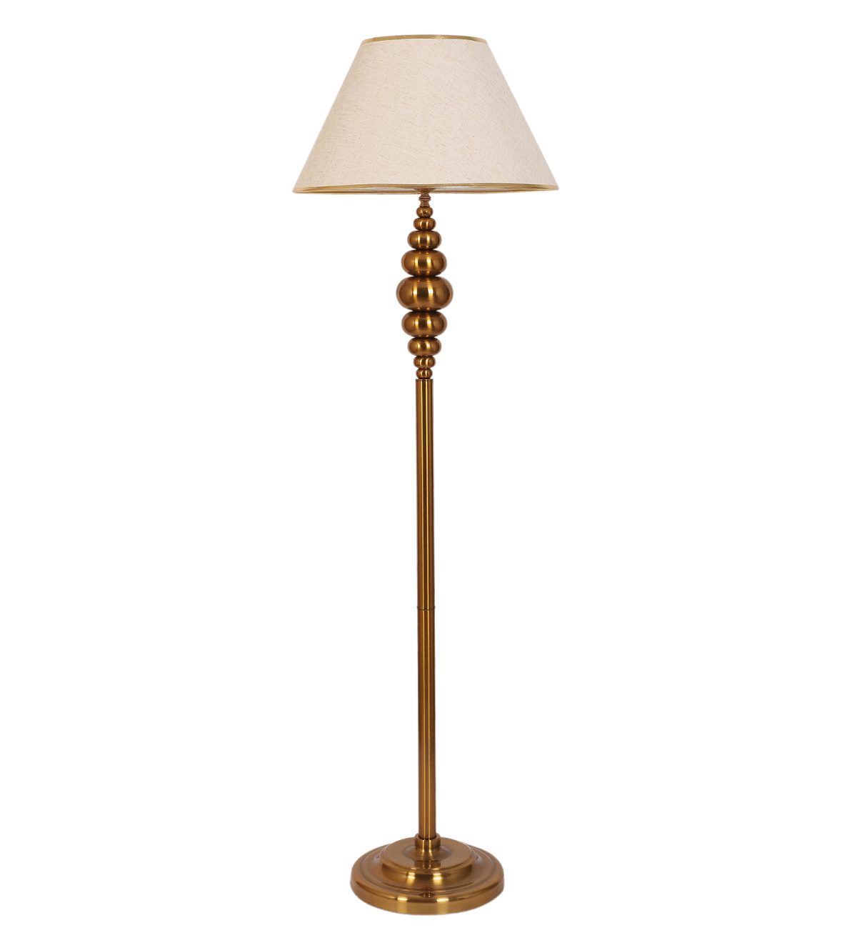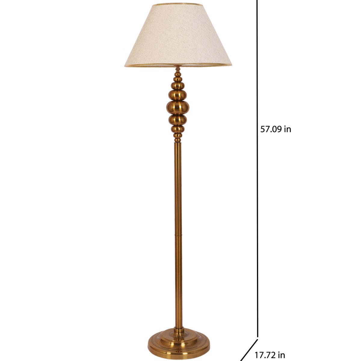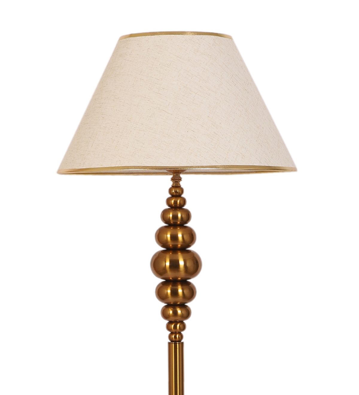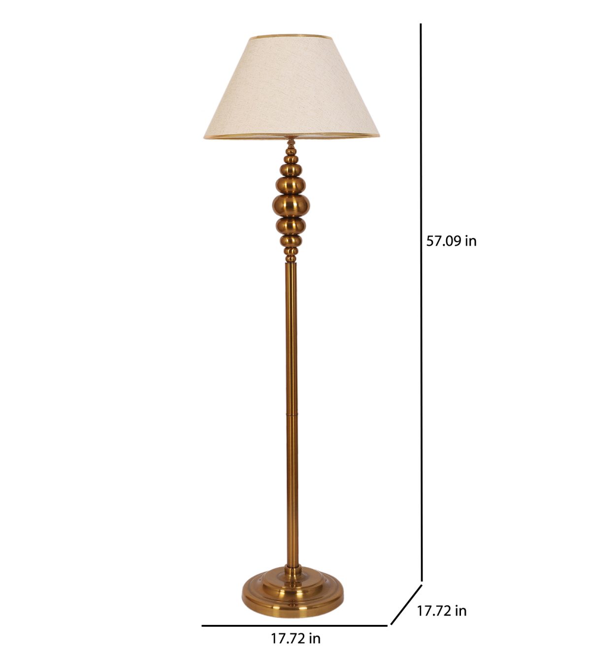 LEARC gold bronze finish floor lamp with cream textured shade having golden border. LAMP NOT INCLUDED.