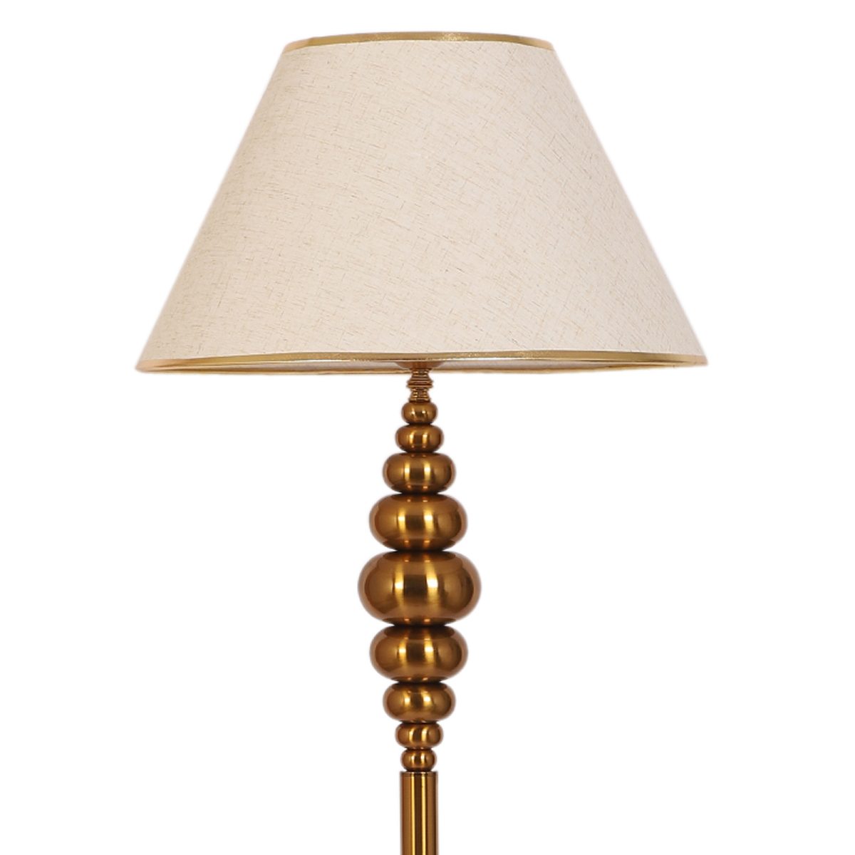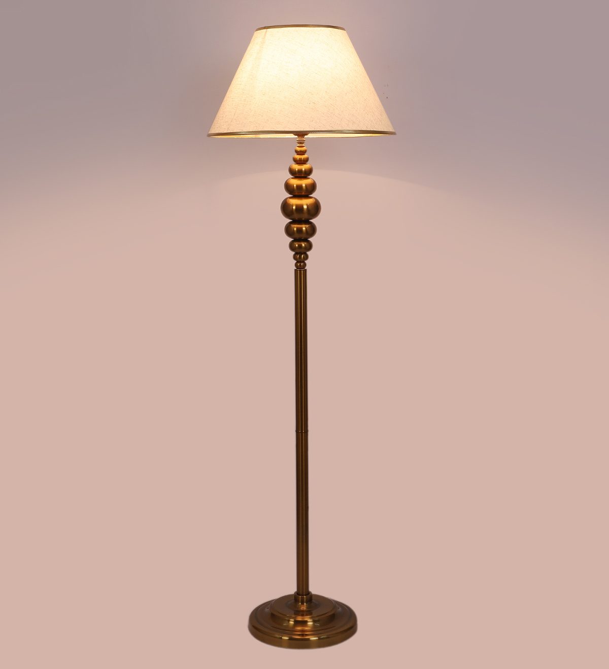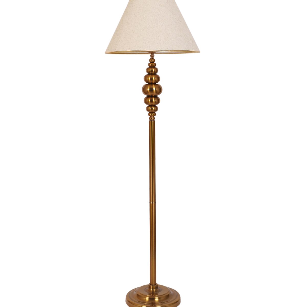 LEARC gold bronze finish floor lamp with cream textured shade having golden border. LAMP NOT INCLUDED.
