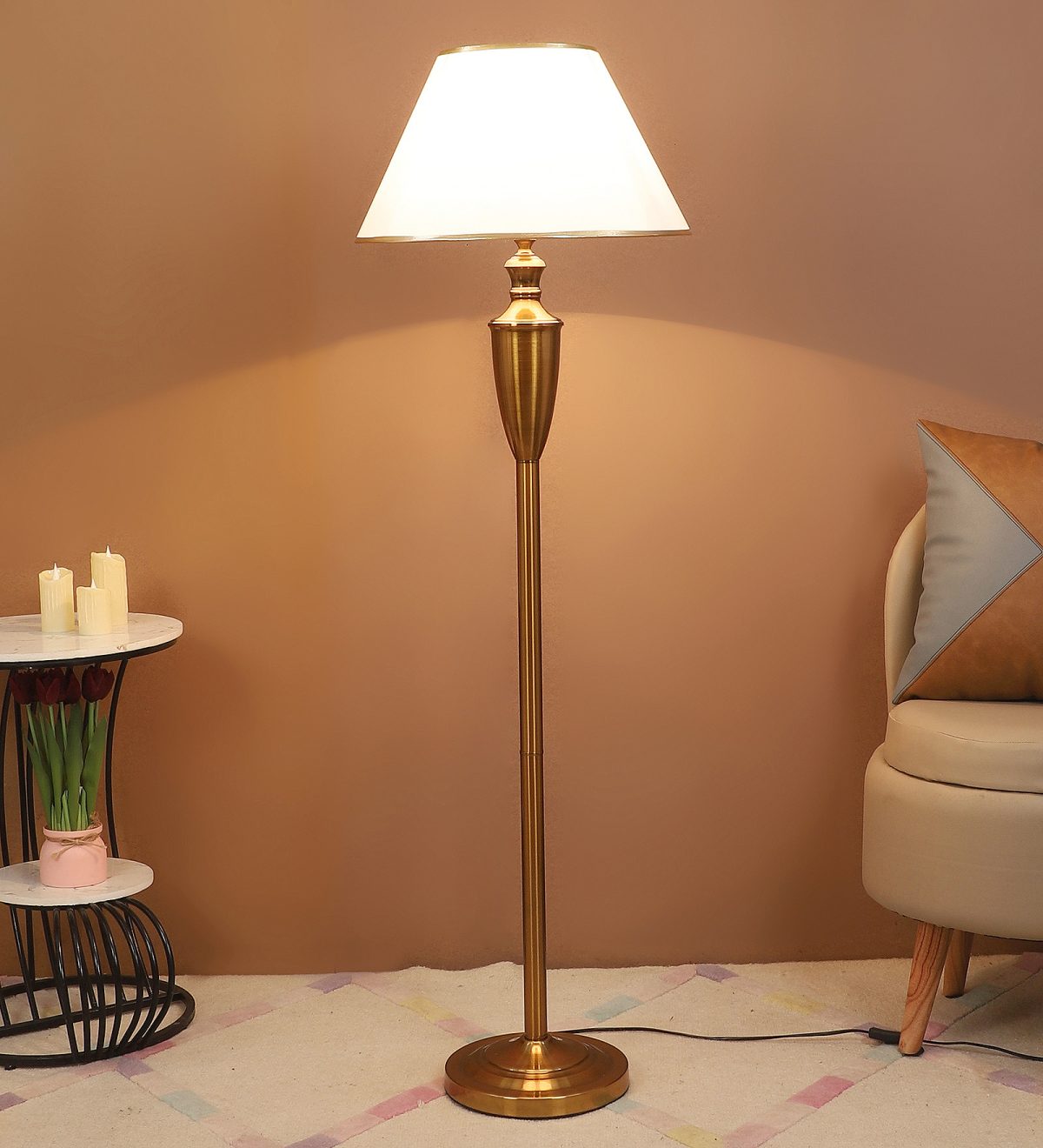 Be the first to review “LEARC gold bronze finish floor lamp with white shade having golden border FL5021-C”