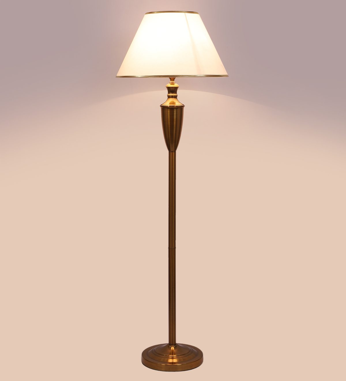 LEARC gold bronze finish floor lamp with white shade having golden border FL5021-C