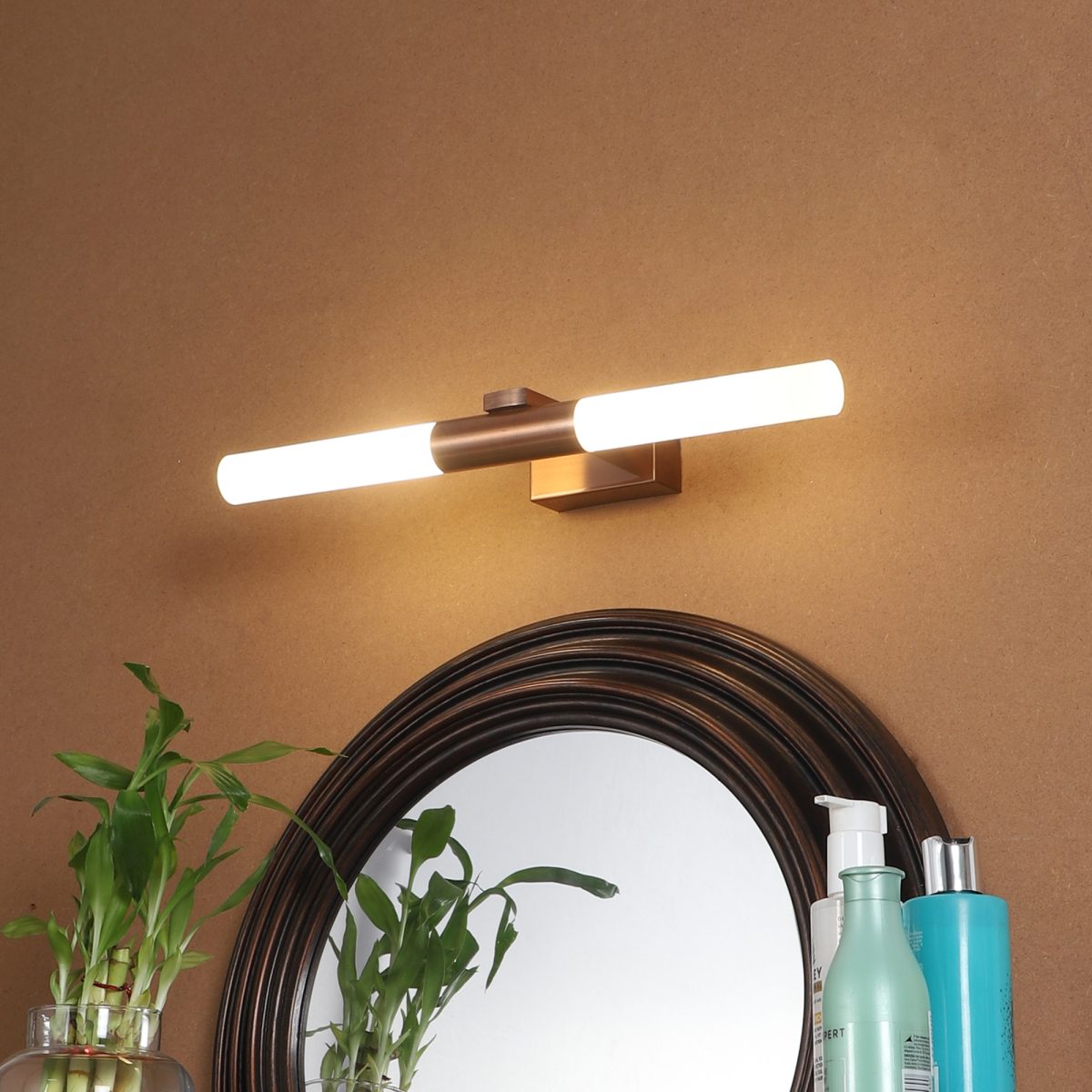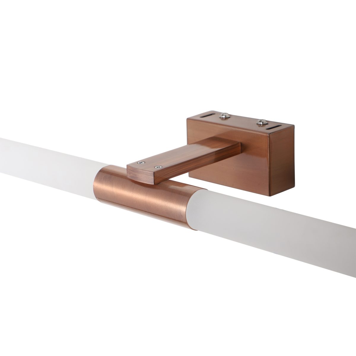 Exclusive copper finish, 12 watt LED mirror light using high quality LED and driver with high success rate having less than 0.5% replacement with warm white (yellow) light output. It is usually placed over the mirror. Can also be used as a picture light or a wall light.