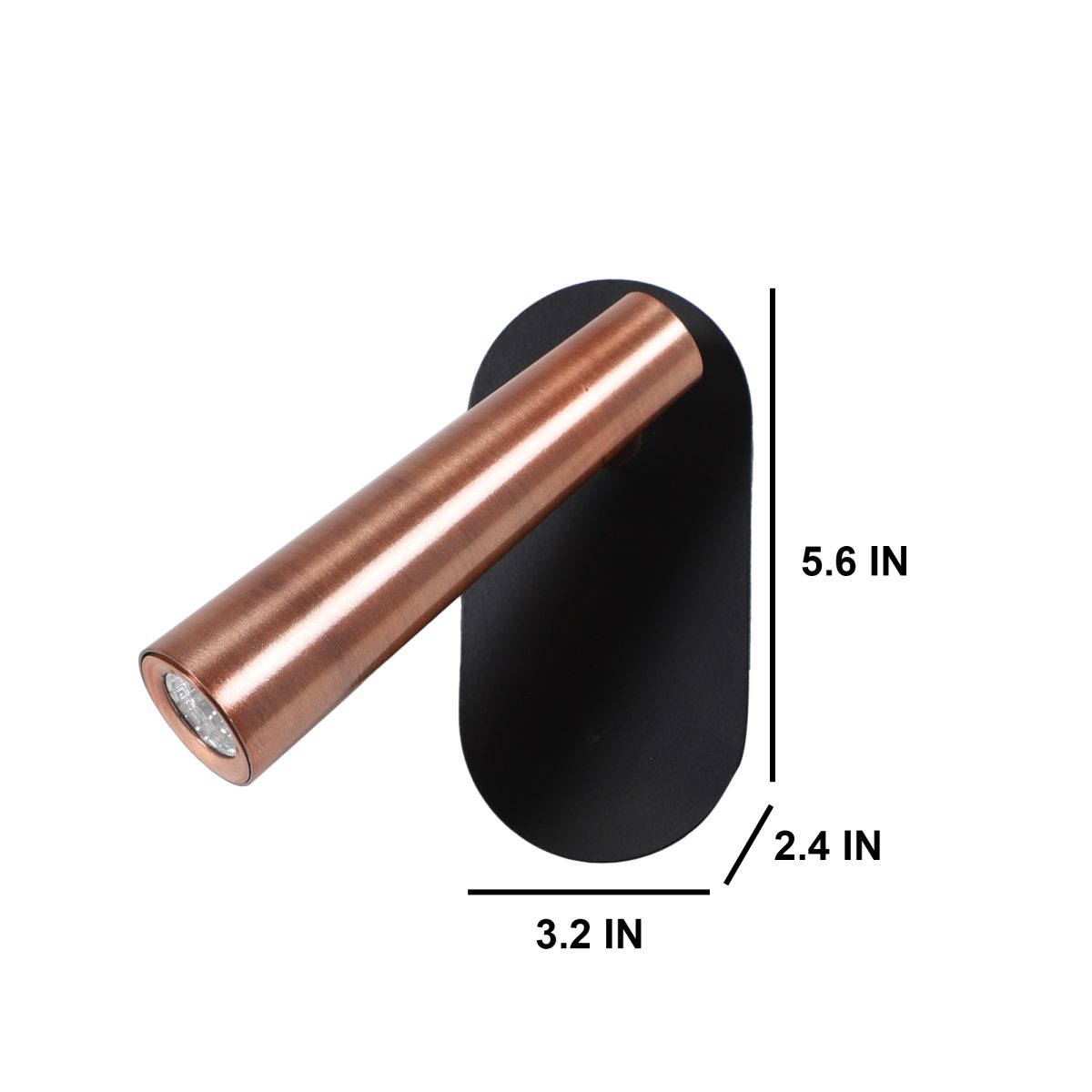 Copper finish sleek, adjustable bed side spot light using high quality LED and driver with high success rate having less than 0.5% replacement. It is one of the best selling product. Ideal to install on the side of the bed at a low height. This highlights a small area giving yellow light output , which can be adjusted by rotating the pipe in any required direction. The sleep of the other person is not disturbed while using this light since the area highlighted is limited. It can also be used as a spot light or a picture light to enhance the look of any object.
