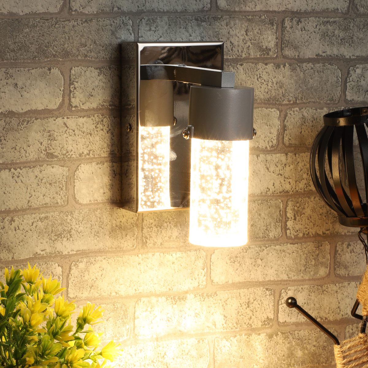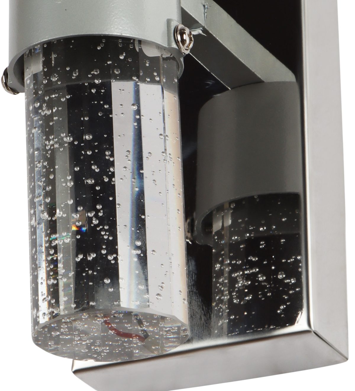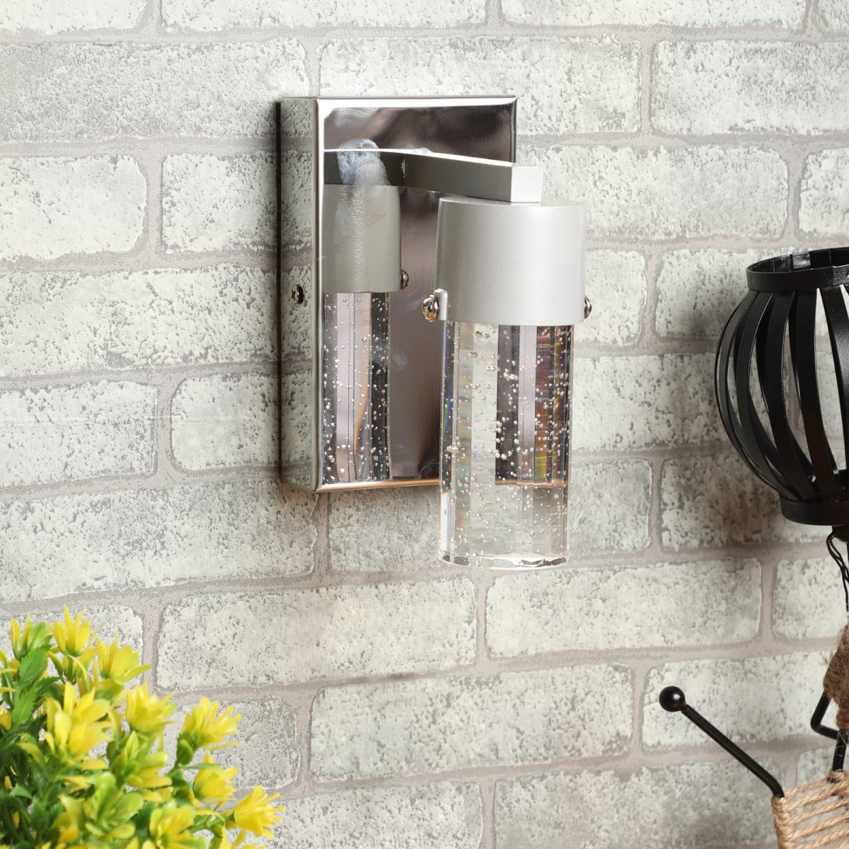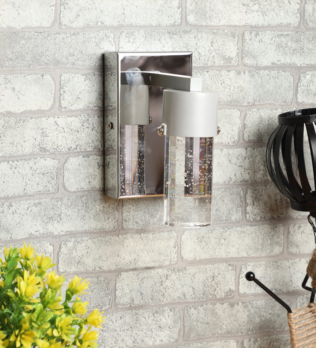 Silver (chrome) , rectangular wall light with heavy crystal glass. This light is having a very bright warm white (yellow) light output. It comes with maintenance free inbuilt LED and power supply circuit. Application includes both residential and commercial premises. Can be made in white light output against order.