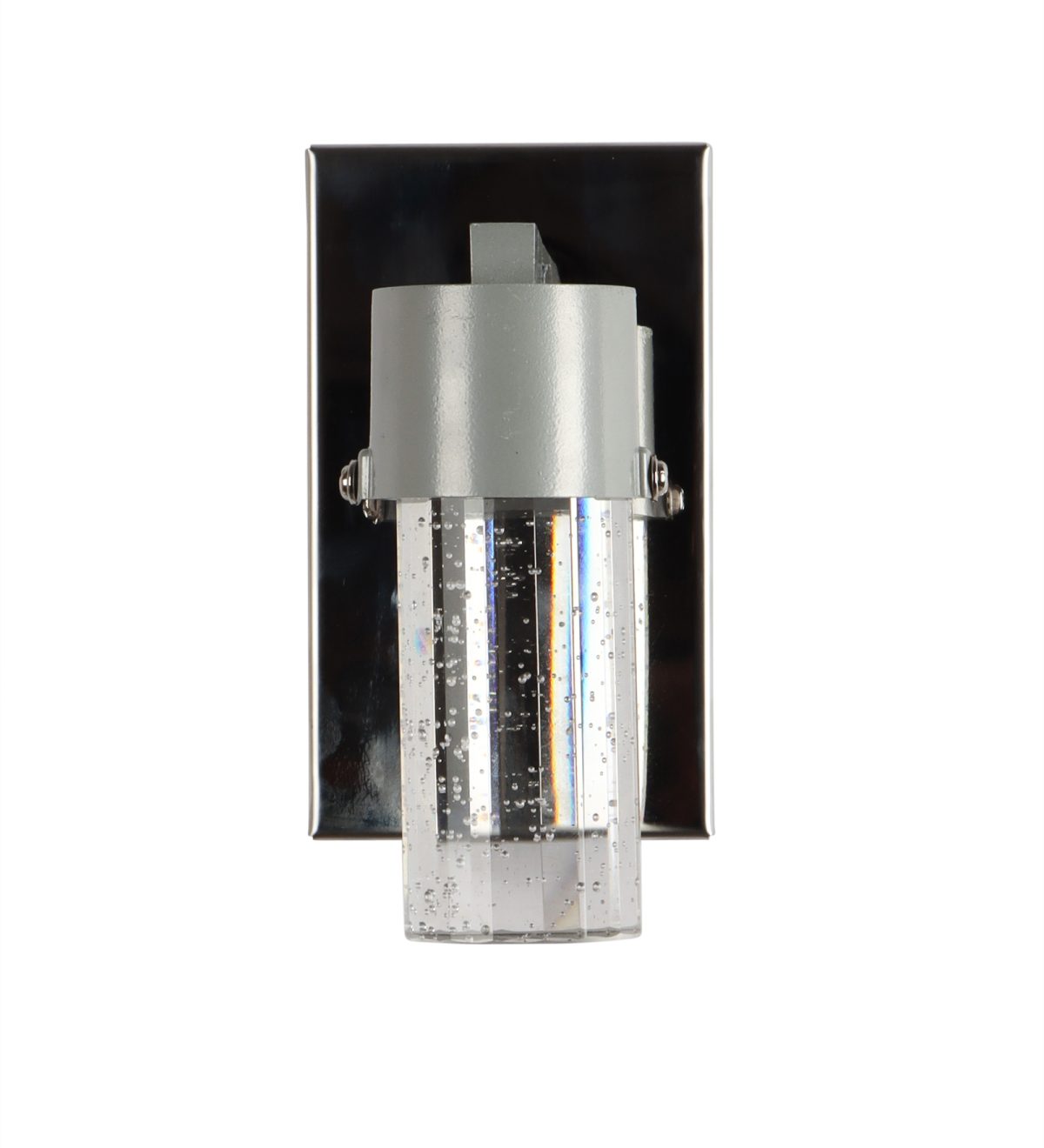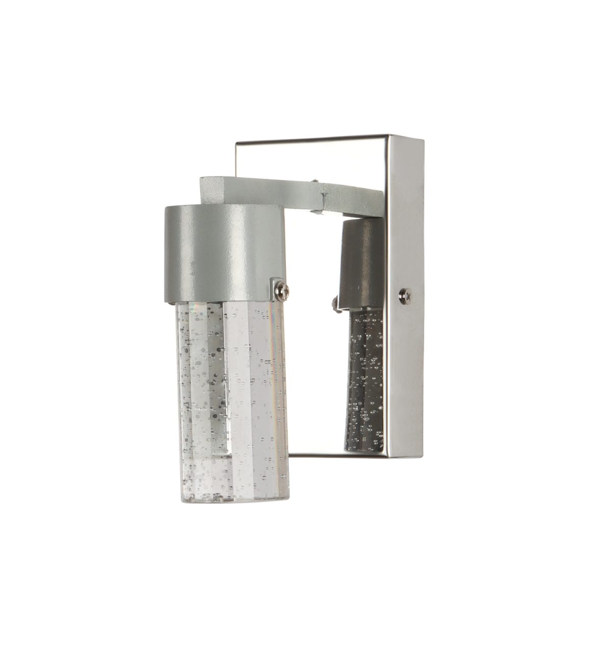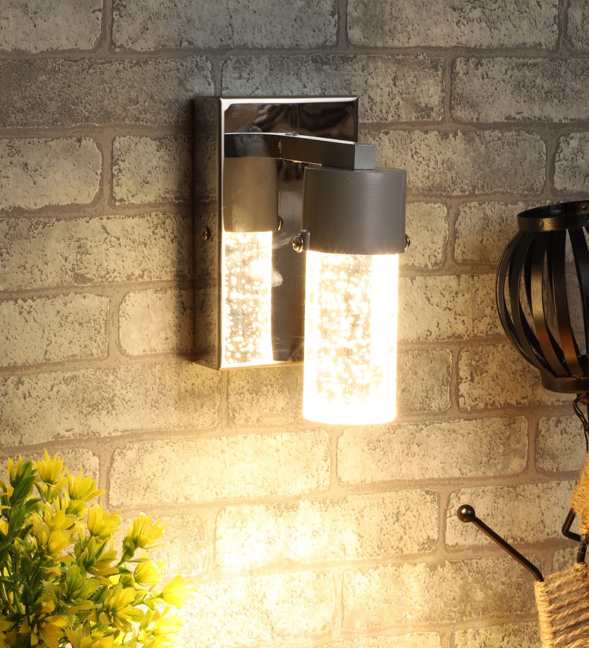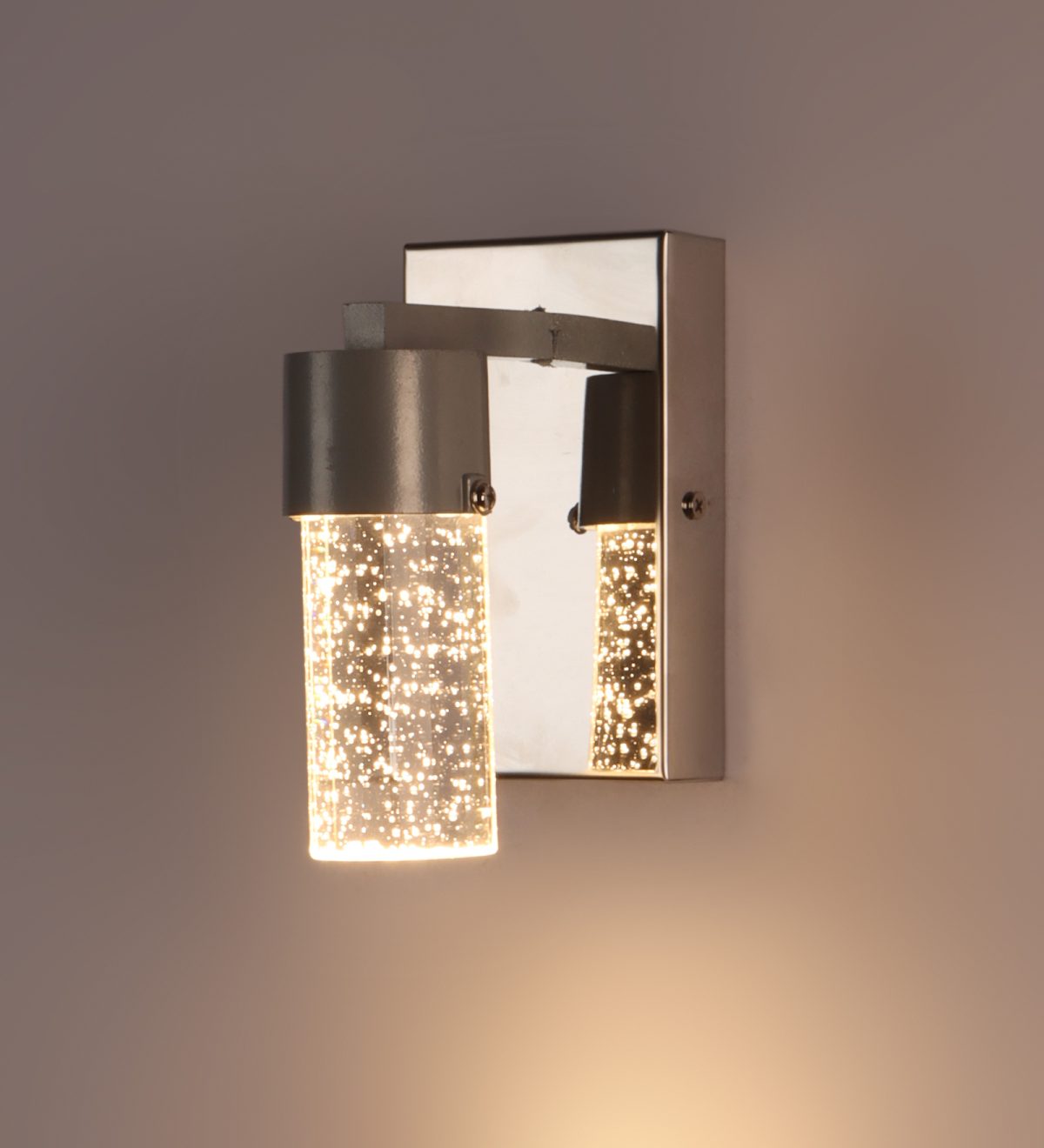 Silver (chrome) , rectangular wall light with heavy crystal glass. This light is having a very bright warm white (yellow) light output. It comes with maintenance free inbuilt LED and power supply circuit. Application includes both residential and commercial premises. Can be made in white light output against order.