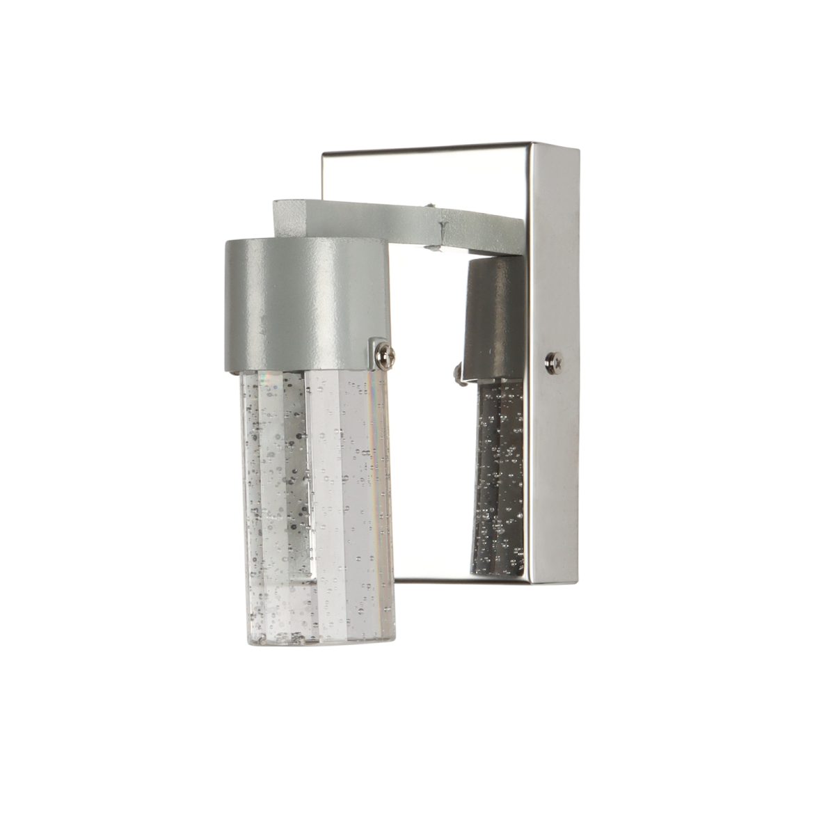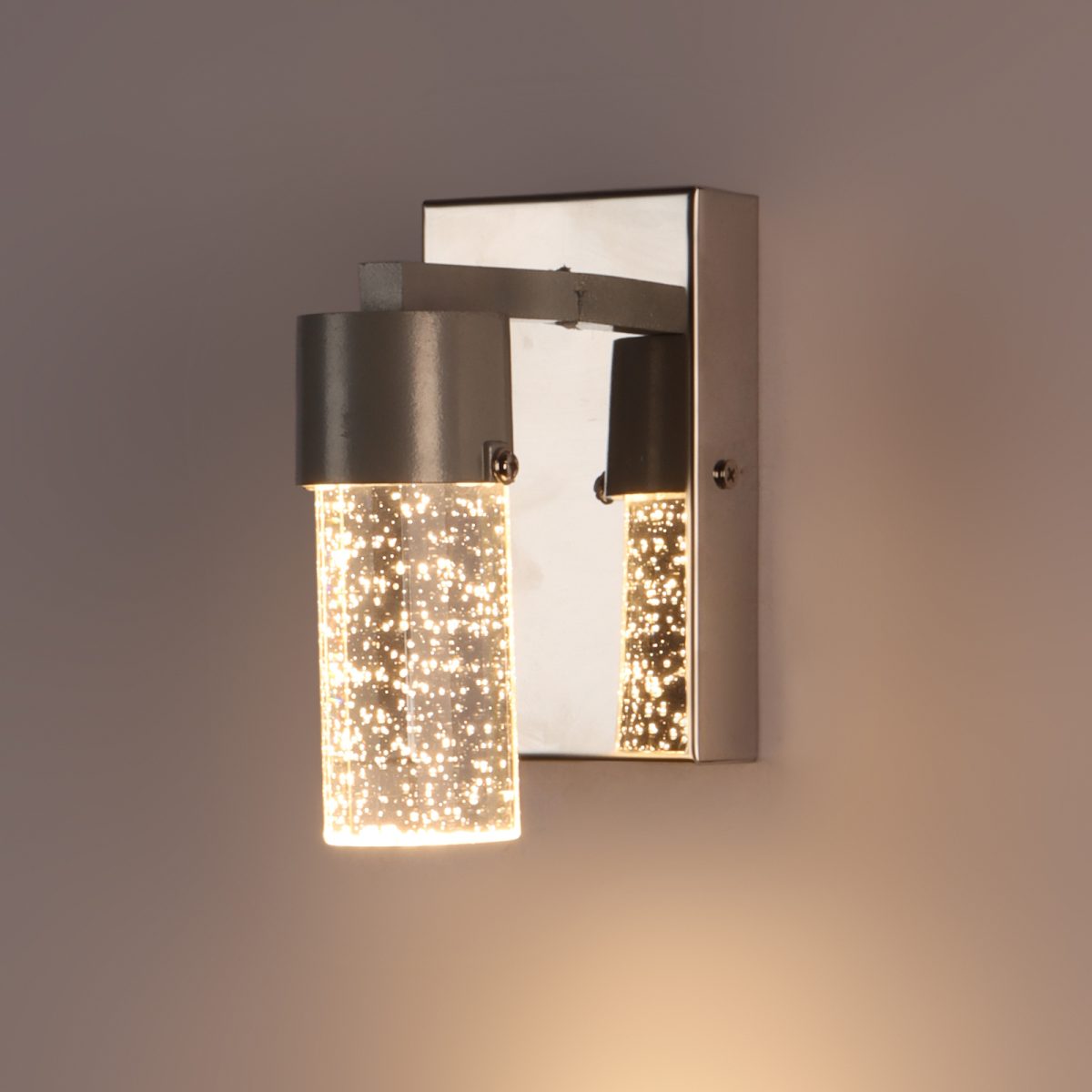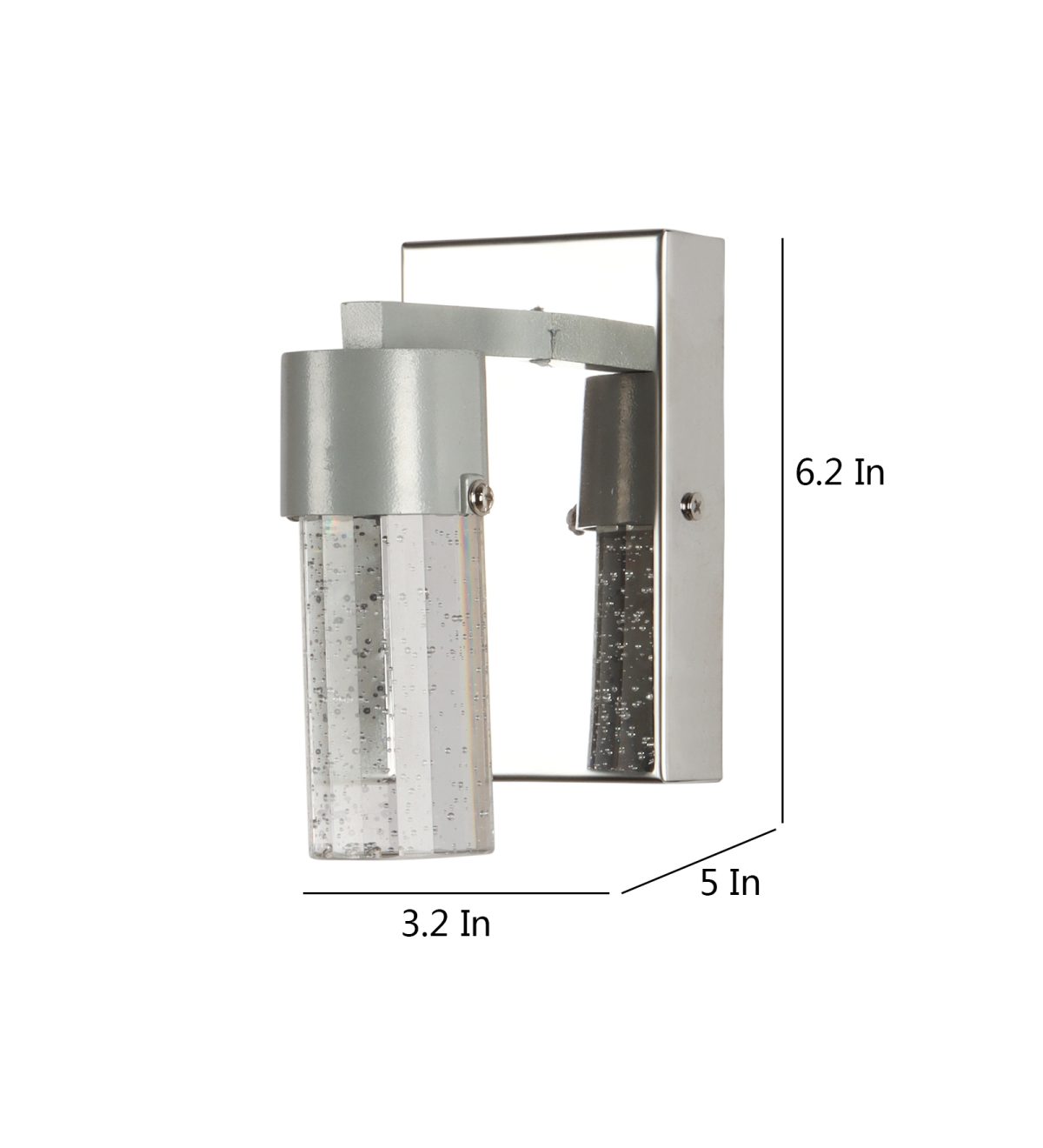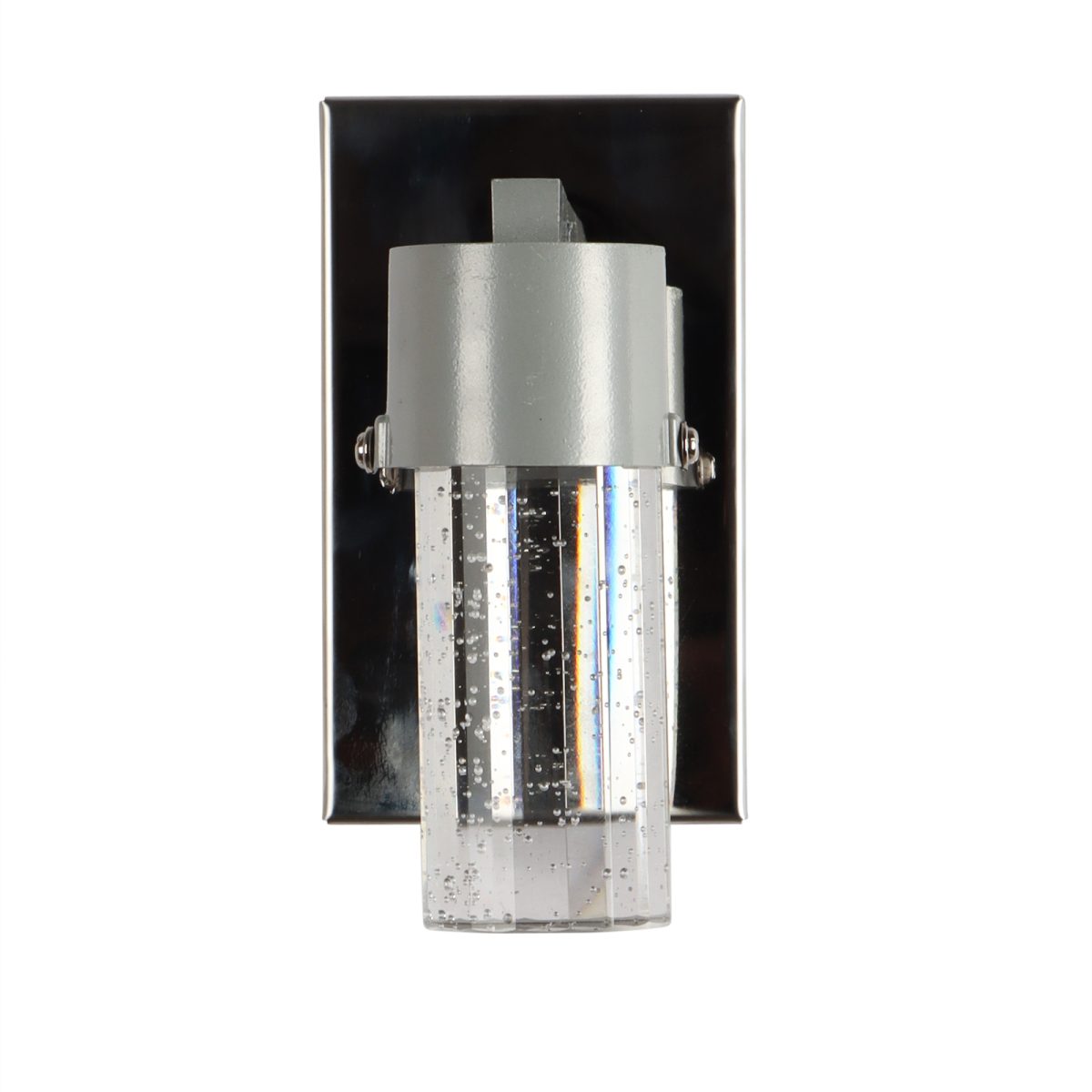 Silver (chrome) , rectangular wall light with heavy crystal glass. This light is having a very bright warm white (yellow) light output. It comes with maintenance free inbuilt LED and power supply circuit. Application includes both residential and commercial premises. Can be made in white light output against order.