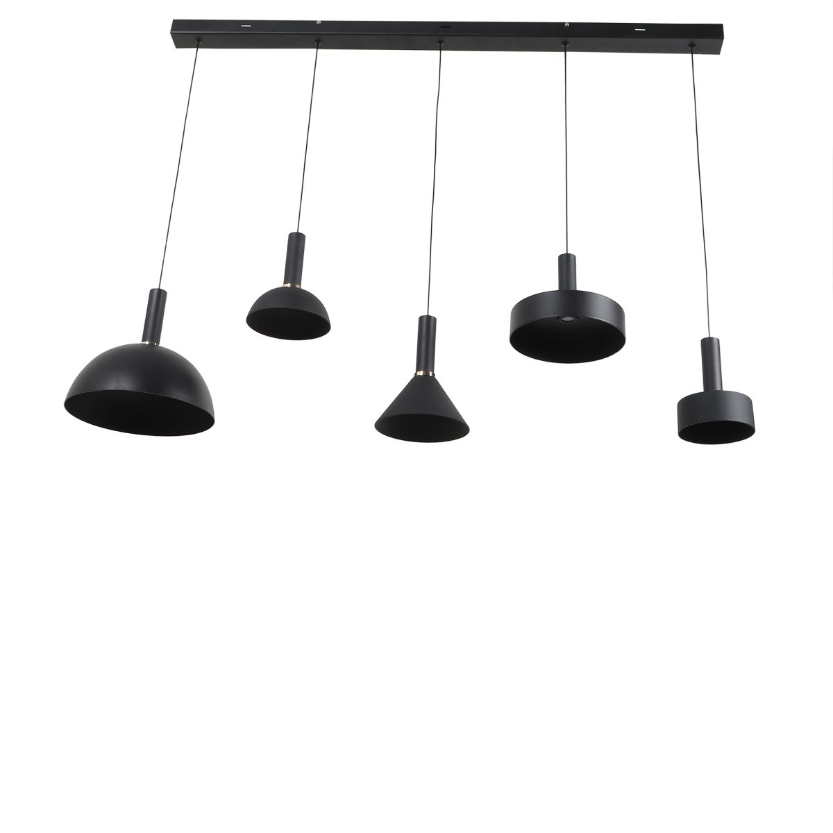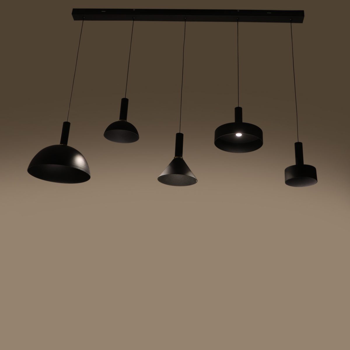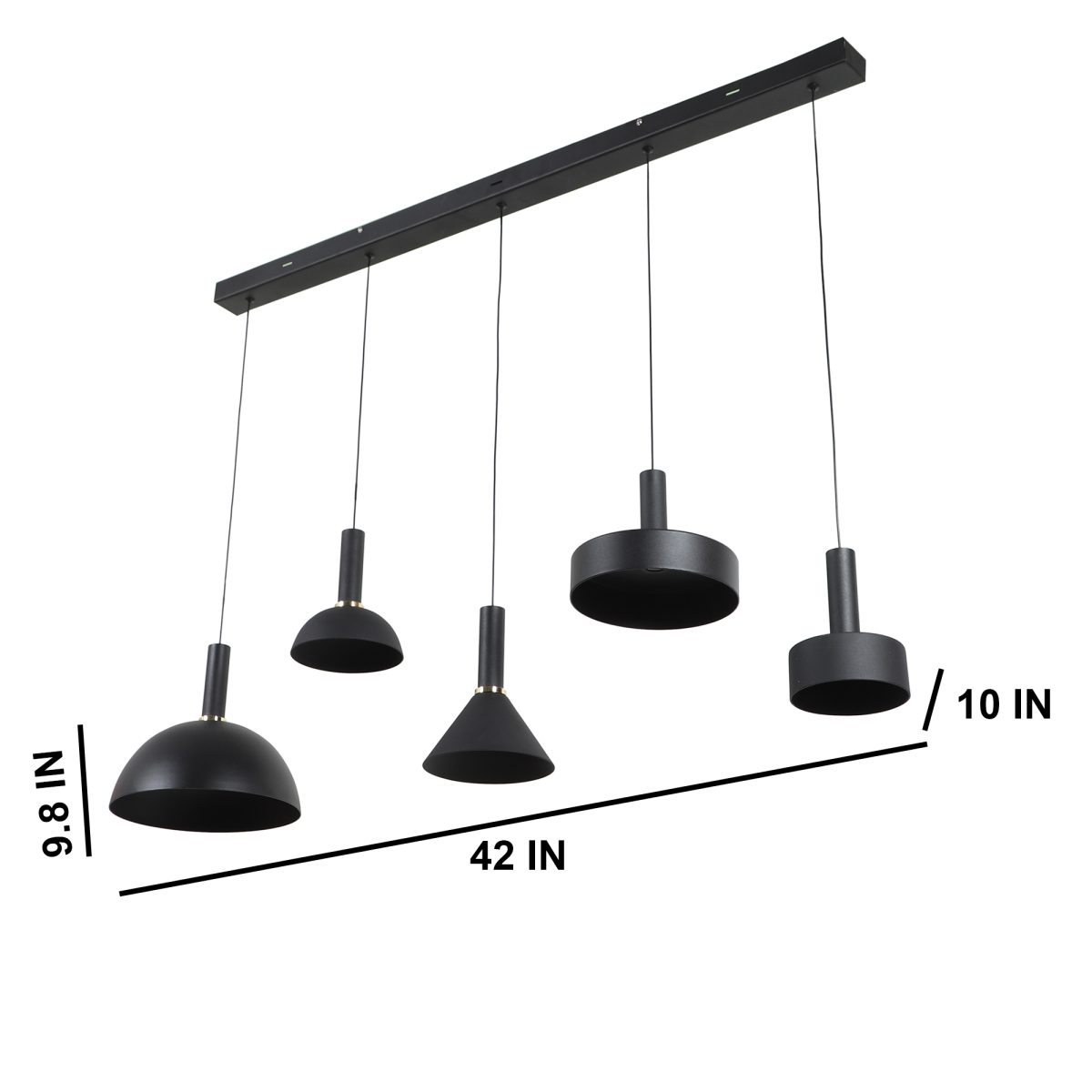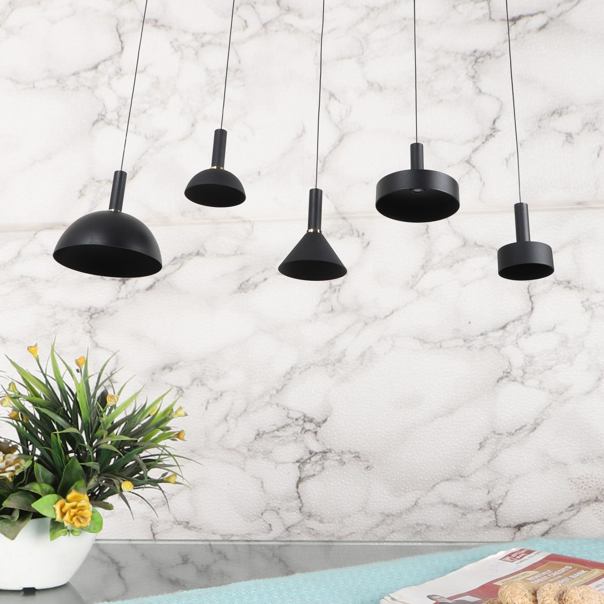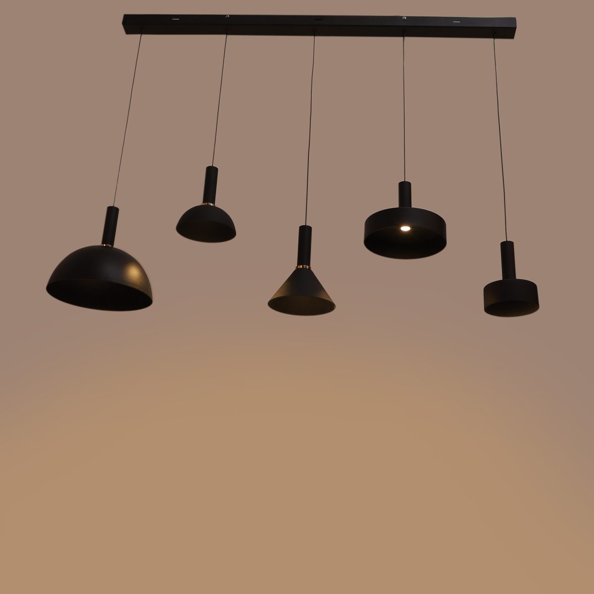 Exclusive black modern, cluster LED hanging light having five unique lights with high quality LED and branded LED driver having yellow light output. The suspension can be adjusted at time of installation to the desired height. Application includes both residential and comercial premises wherever it matches with your interiors.