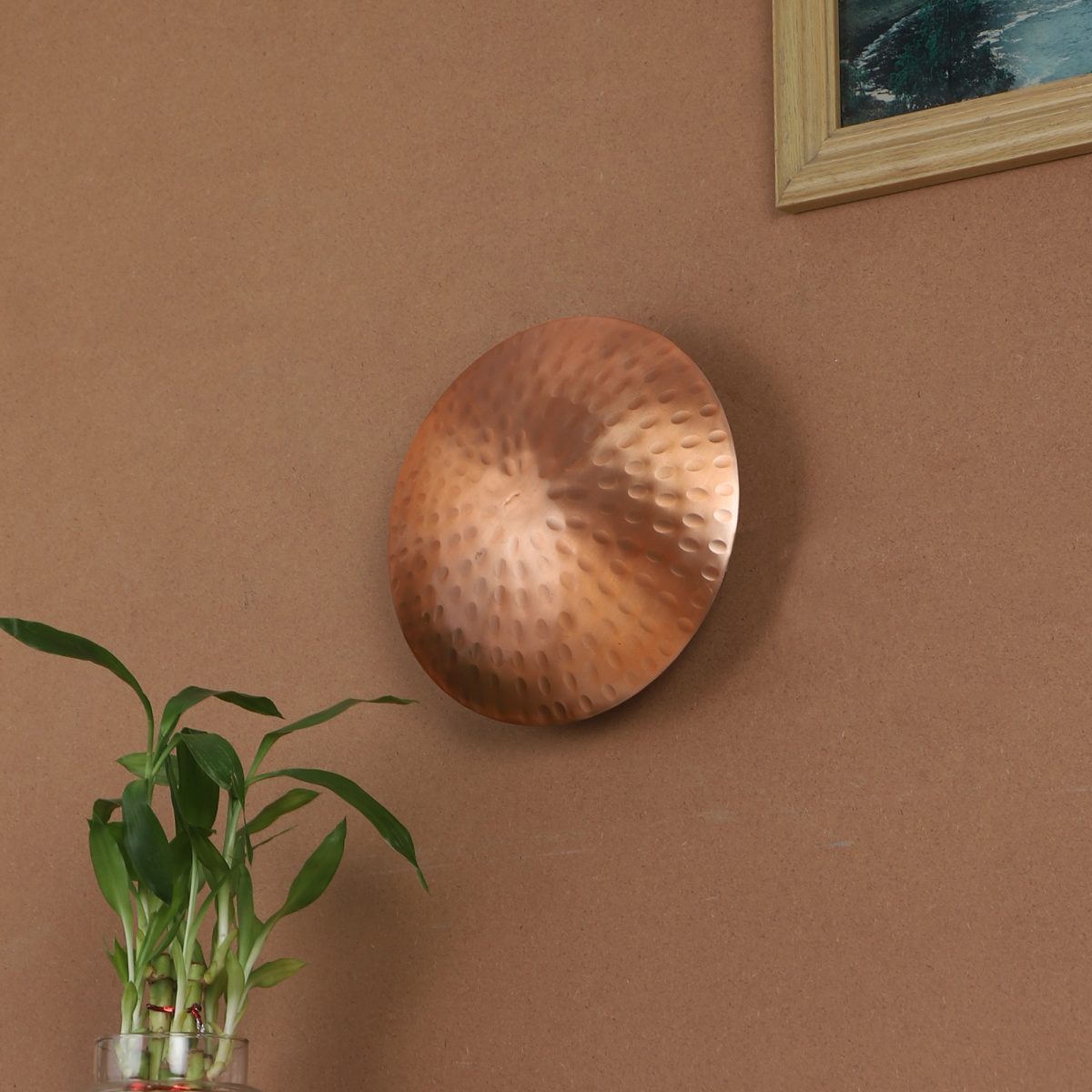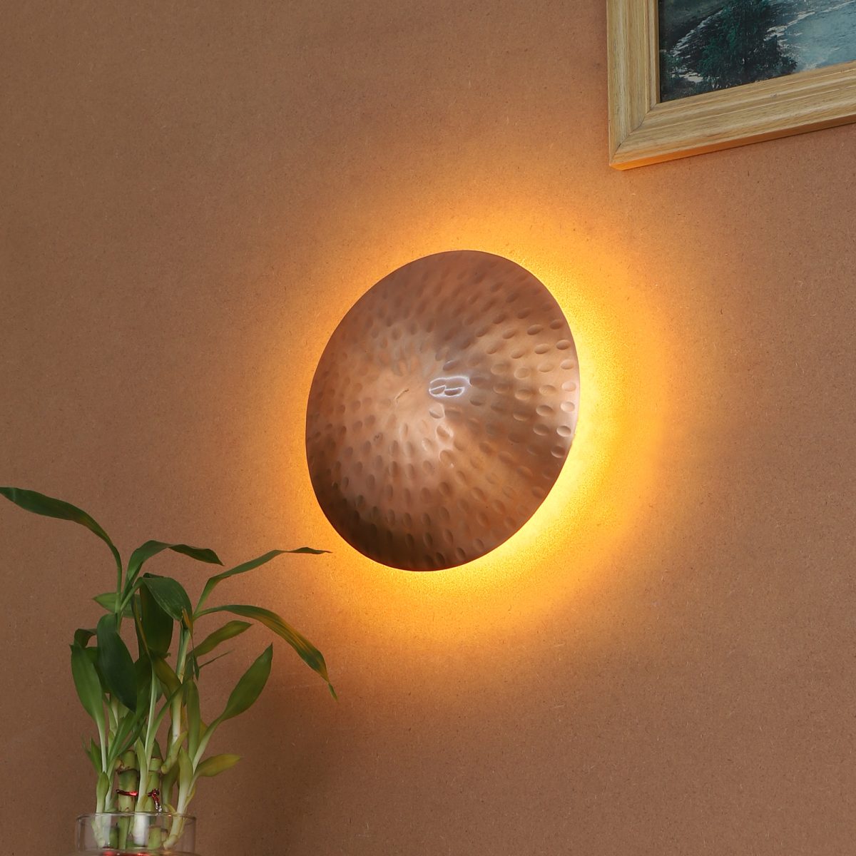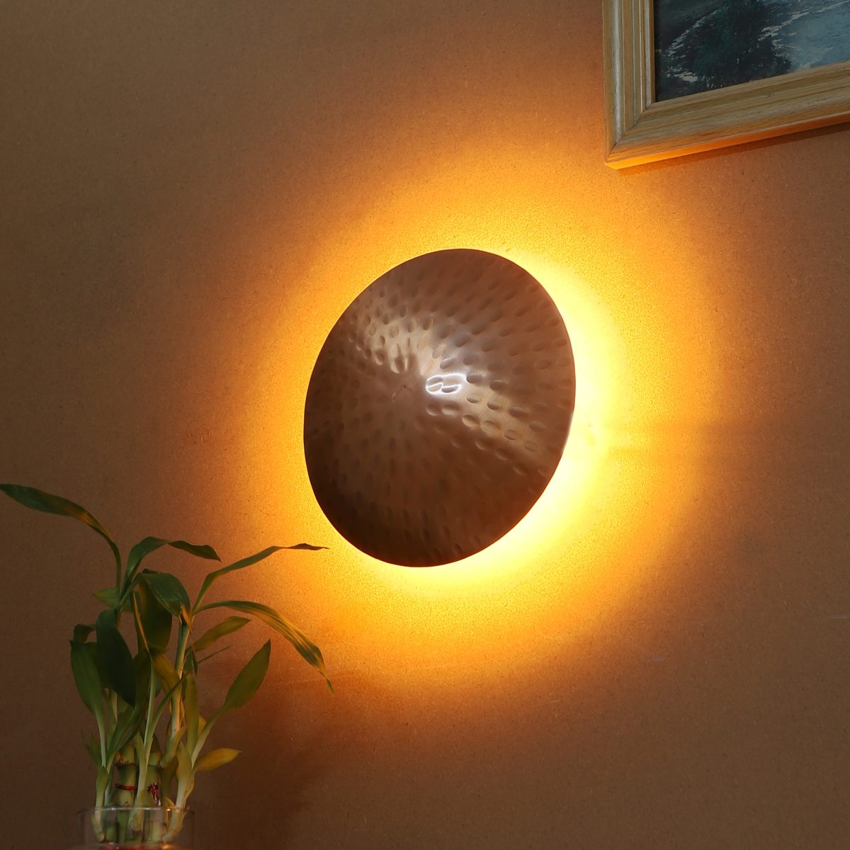 Copper finish aluminium sheet round LED wall light with indirect light, using high quality LED and driver with high success rate having less than 0.5% replacement with warm white (yellow) light output.This design is largely preferred by architects and interior designers. Application includes both residential and commercial premises. Also available in antique colour with code WL2556.