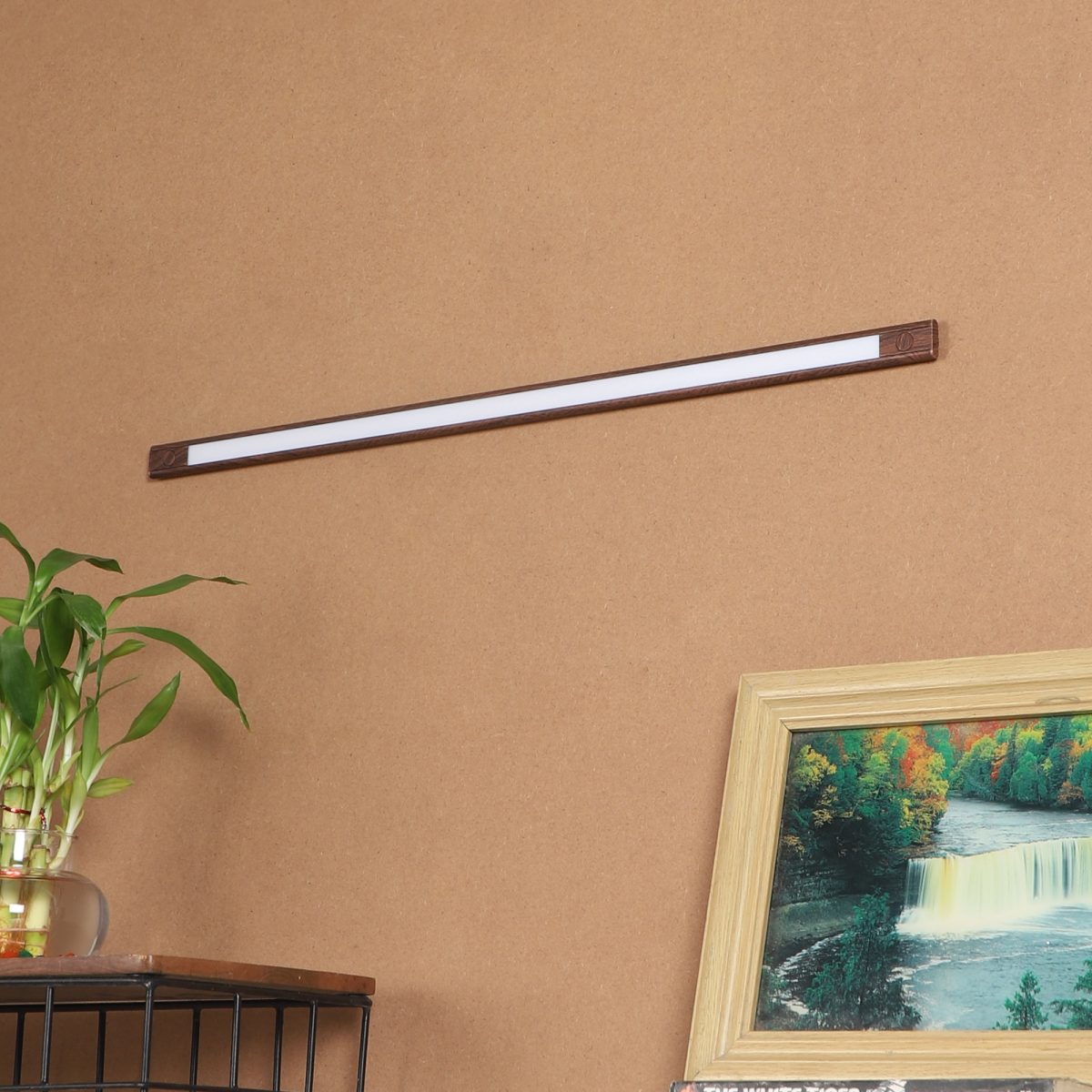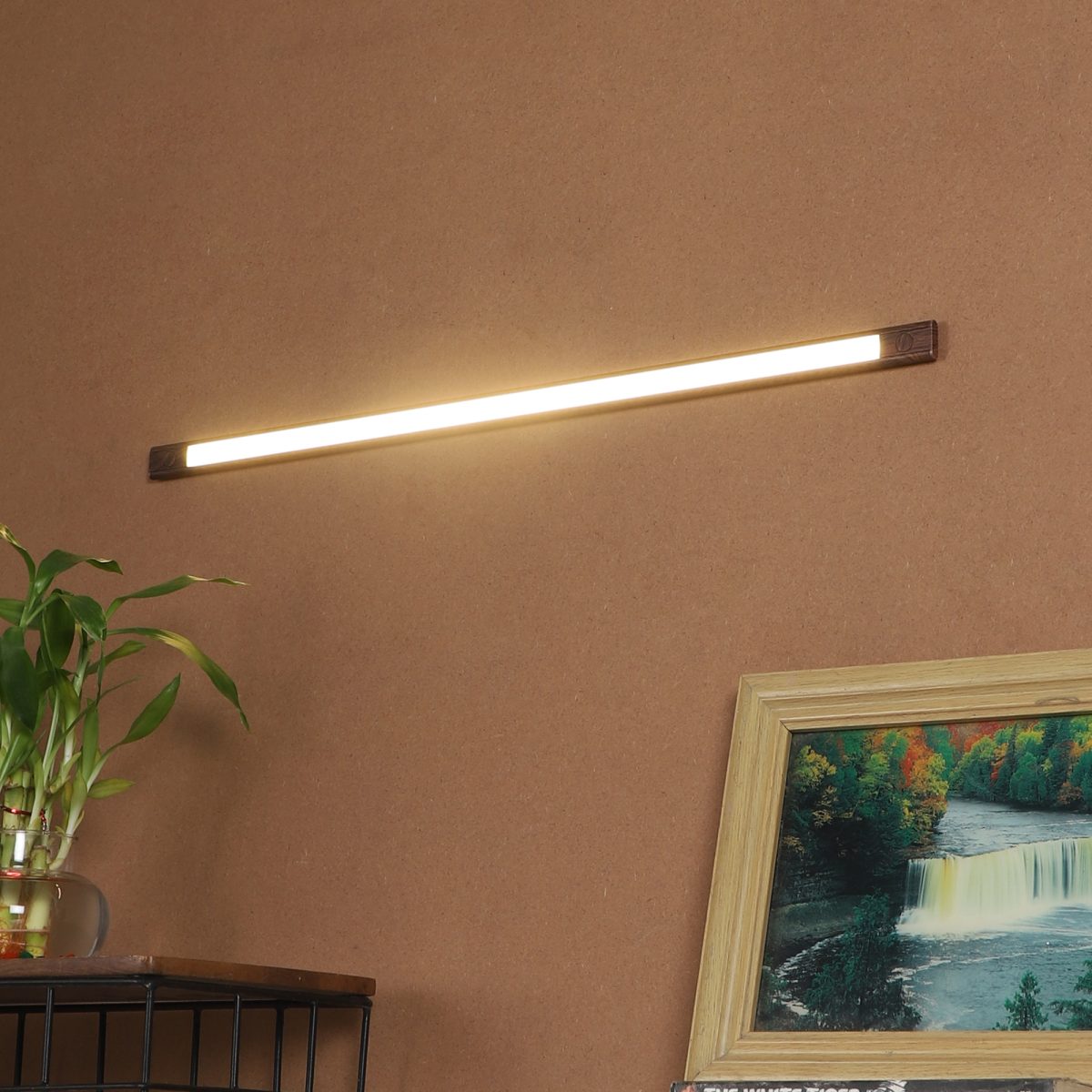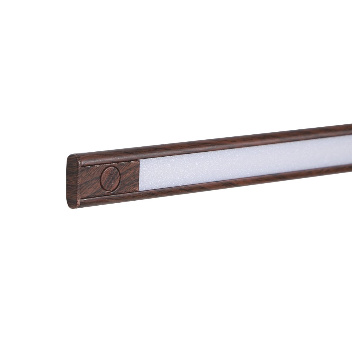 Brown (wooden finish with grains) 8 watt 2 feet LED linear profile light made of mild steel and acryilic difuser for uniform light output. Extensively used in commercial projects under the cabinets, shelves, show cases display windows. Also used for residential purpose in cupboards , bar counters and other display shelves. Available in various lengths, wattage and colour of light output.