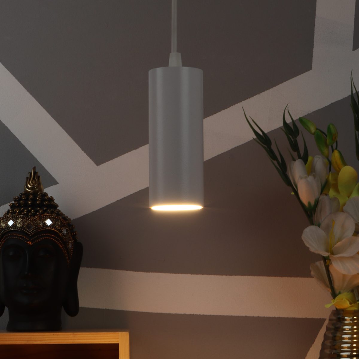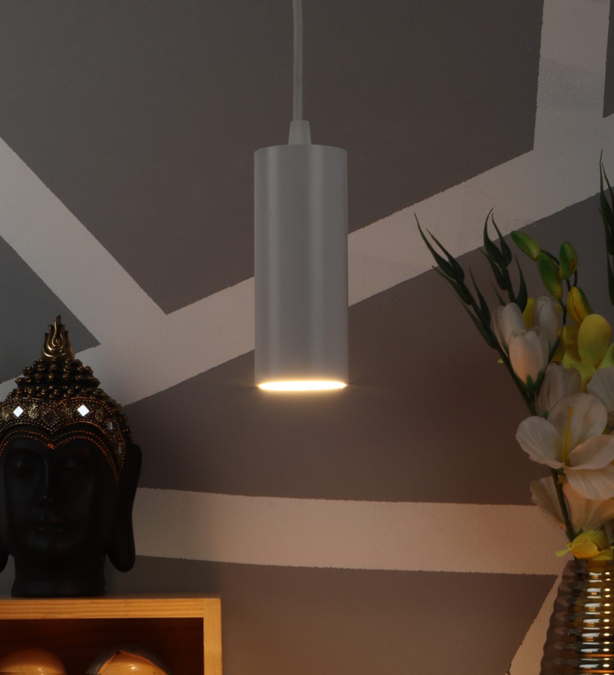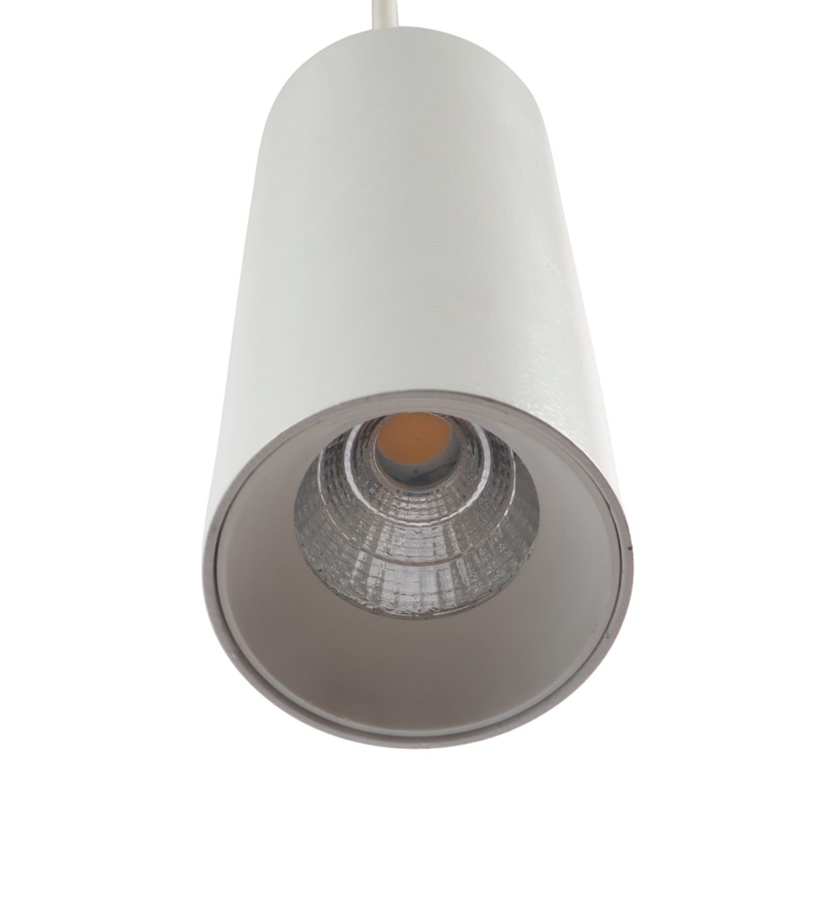 Powder coated white, modern small cylinderical aluminum single LED hanging light having high quality LED and driver with high success rate having less than 0.5% replacement. It is one of the best selling product. . The suspension can be adjusted at time of installation to the desired height. Application includes both residential and commercial premises wherever it matches with your interiors. Can be made available in cluster of multiple quantities against order.