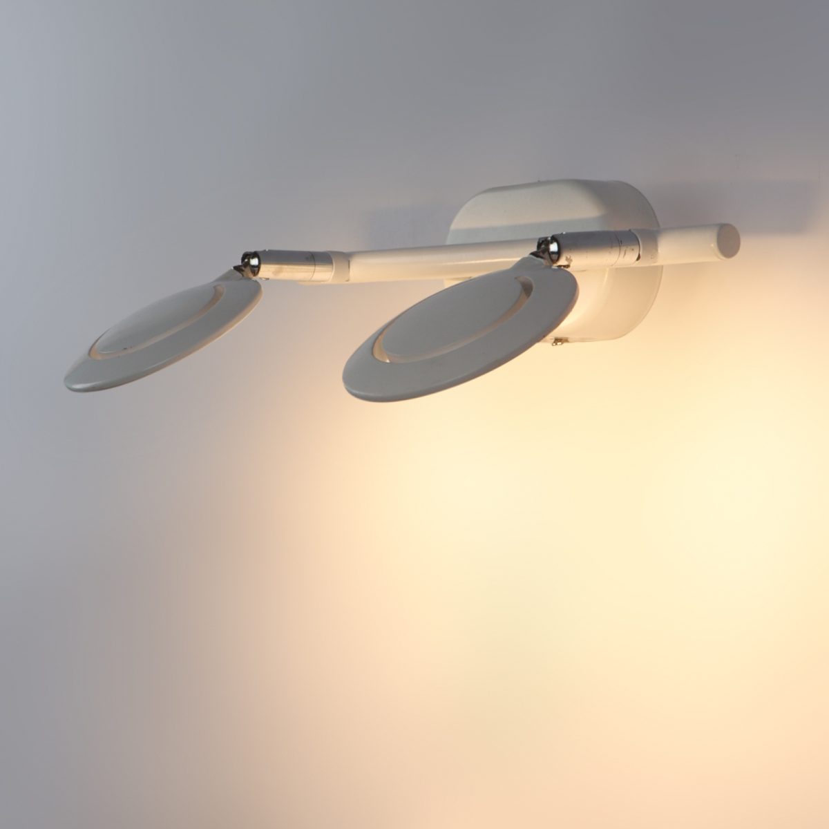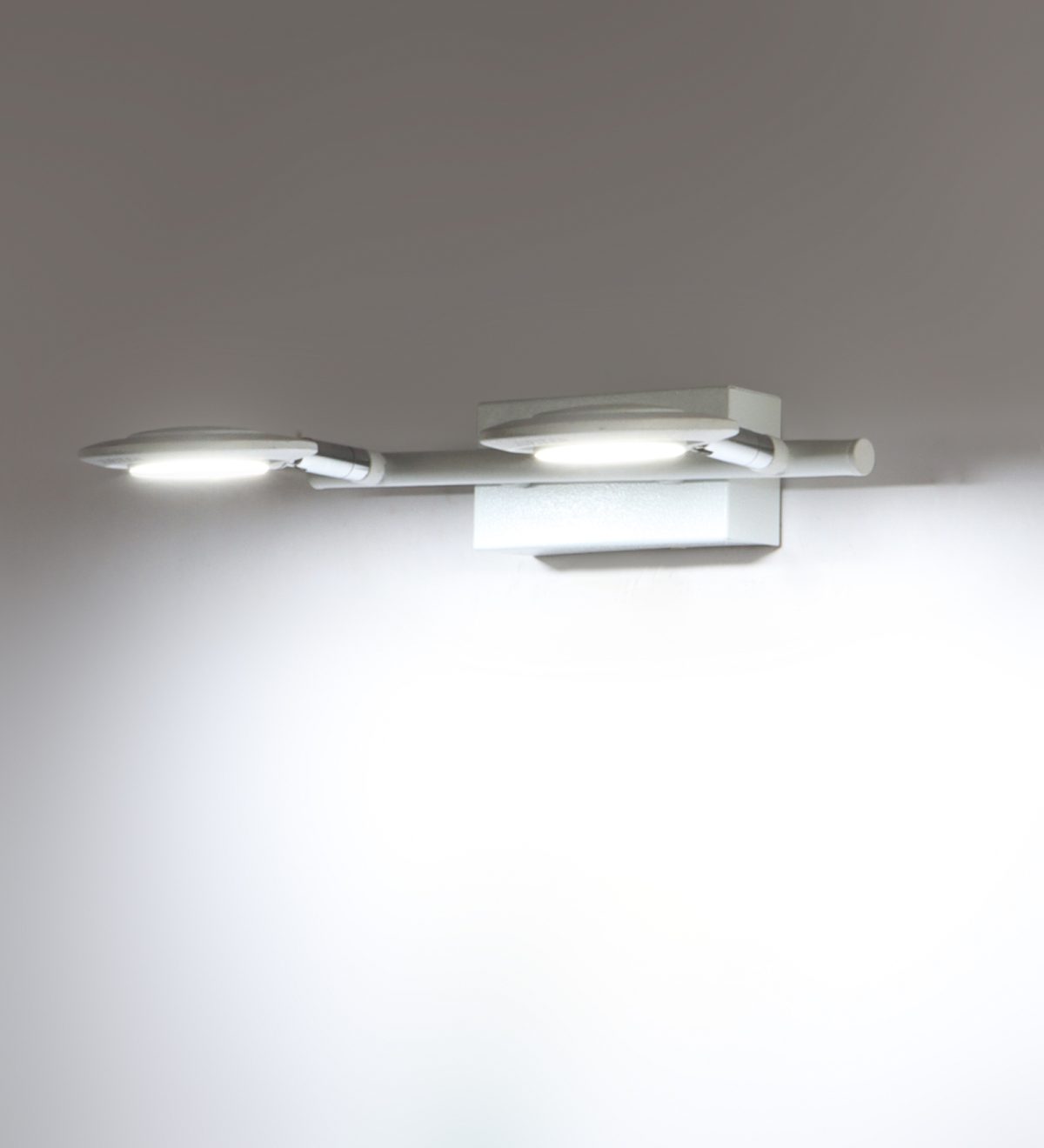 Aluminium die cast, economical powder coated adjustable spot/picture light in white finish. It is having two spot of 4W each to provide a very bright warm white (yellow)output. The light emitting spot is mounted on a rotatable neck which can be rotated in all the directions enabling spot to be positioned wherever required. Picture lights are functional wall lights which offer a direct light on the object we need to enhance. Can also be made available in white (6000K) light output for bulk requirement. Also available in one spot and three spot options with code ML374-1 and ML374-3. It is one of the highest selling product in our catalogue.