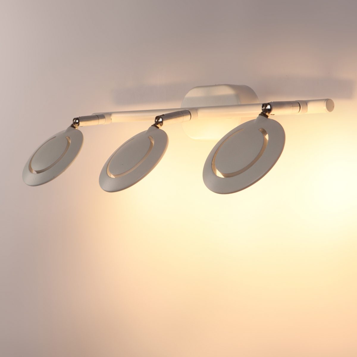Aluminium die cast, economical powder coated adjustable spot/picture light in white finish. It is having three spot of 4W each to provide a very bright warm white (yellow)output. The light emitting spot is mounted on a rotatable neck which can be rotated in all the directions enabling spot to be positioned wherever required. Picture lights are functional wall lights which offer a direct light on the object we need to enhance. Can also be made available in white (6000K) for bulk requirement. Also available in one spot and two spot options with code ML374-1 and ML374-2. It is one of the highest selling product in our catalogue.