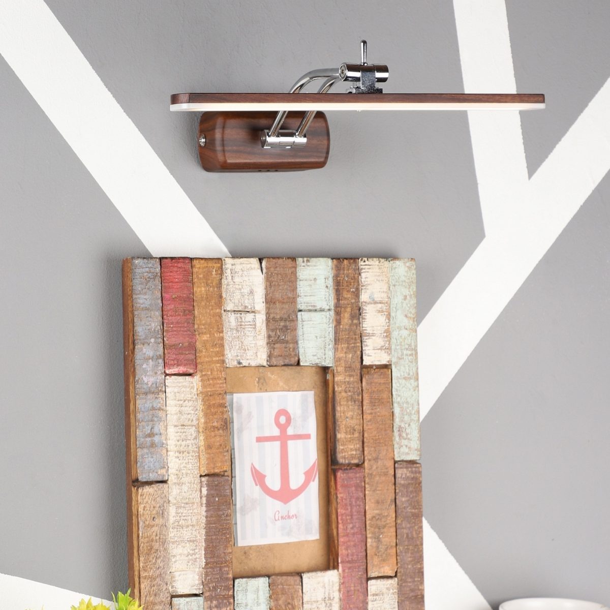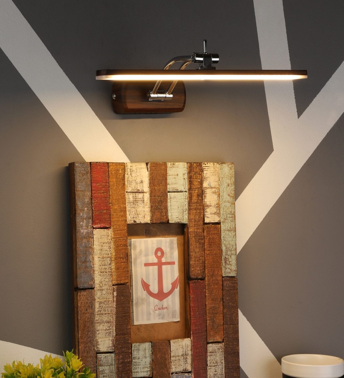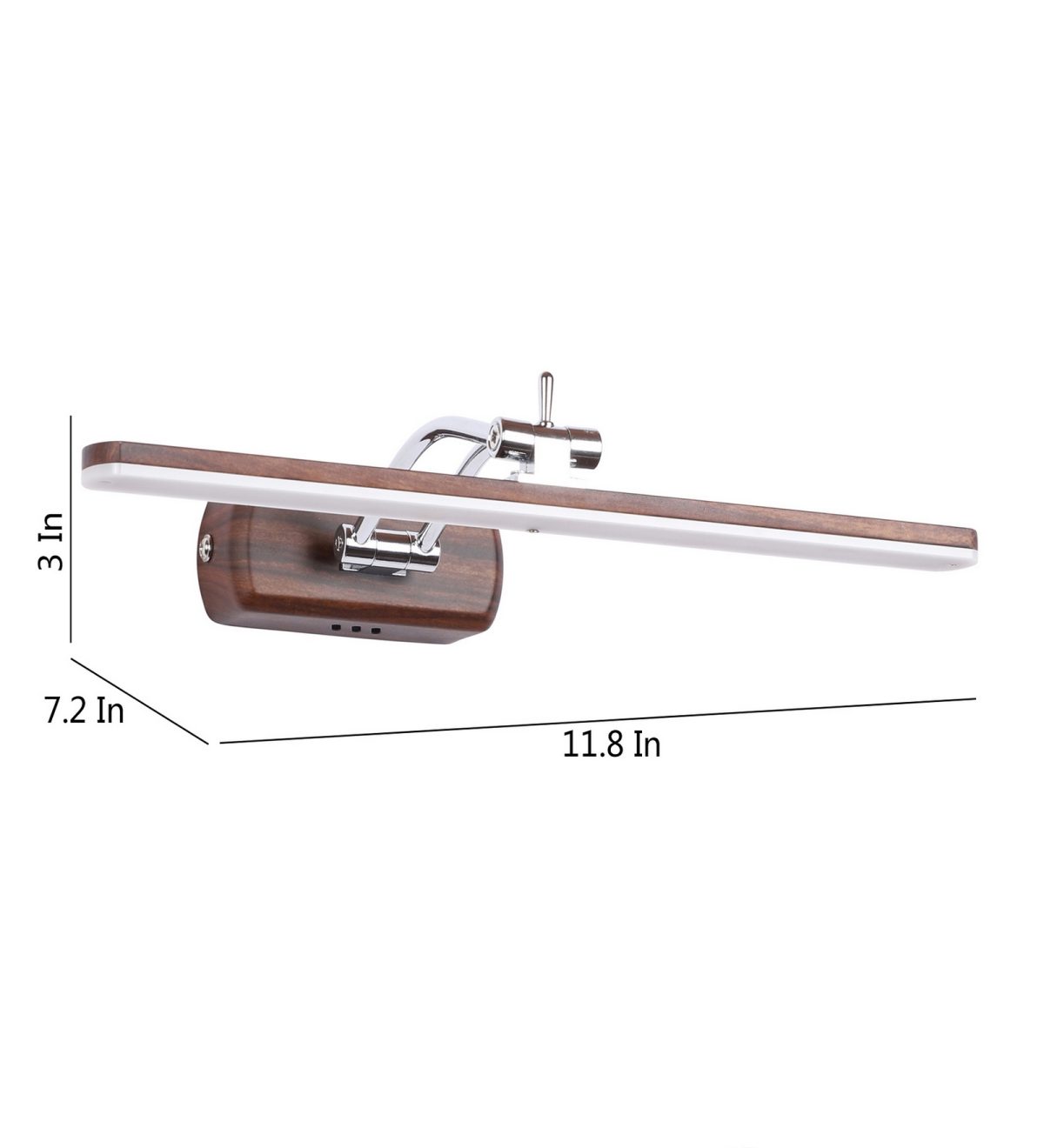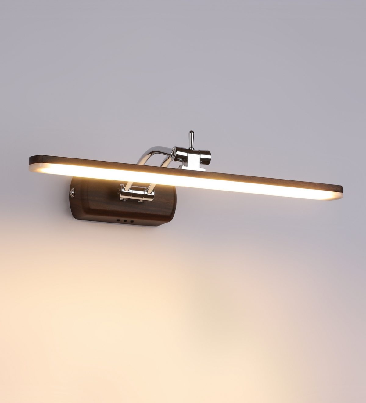 Exclusive dark brown (wood finish) LED picture light using high quality LED and driver with high success rate having less than 0.5% replacement with warm white (yellow) light output. It features two adjustible points. It is usually placed over the painting or a photo frame on the wall. Its premium quality wood finish makes it one of the best selling product in our catalogue. It is also available in large and small size with codes ML333-L, ML333-S. it can be made in silver, antique, copper, white, and black finish in case of bulk requirement.