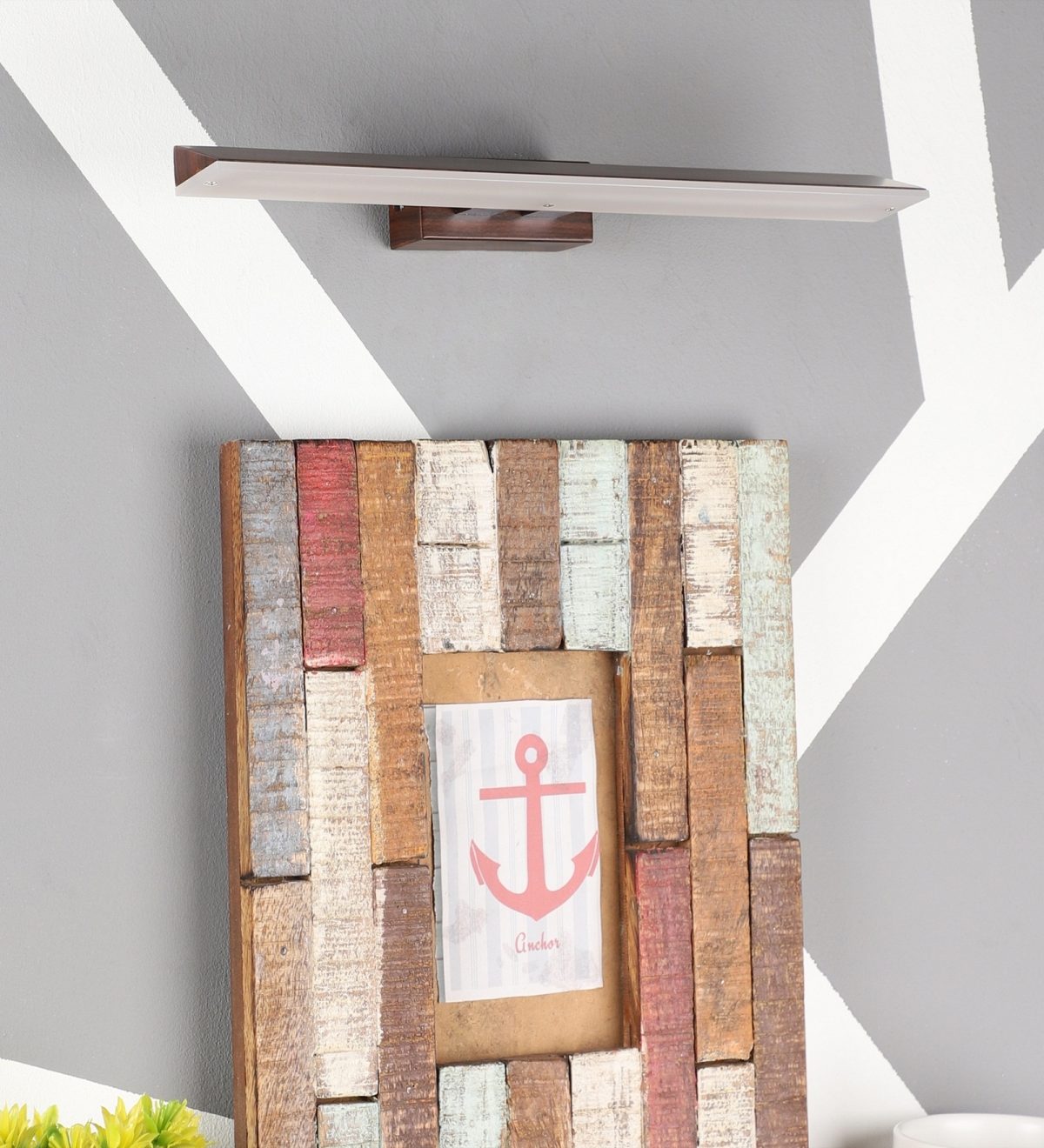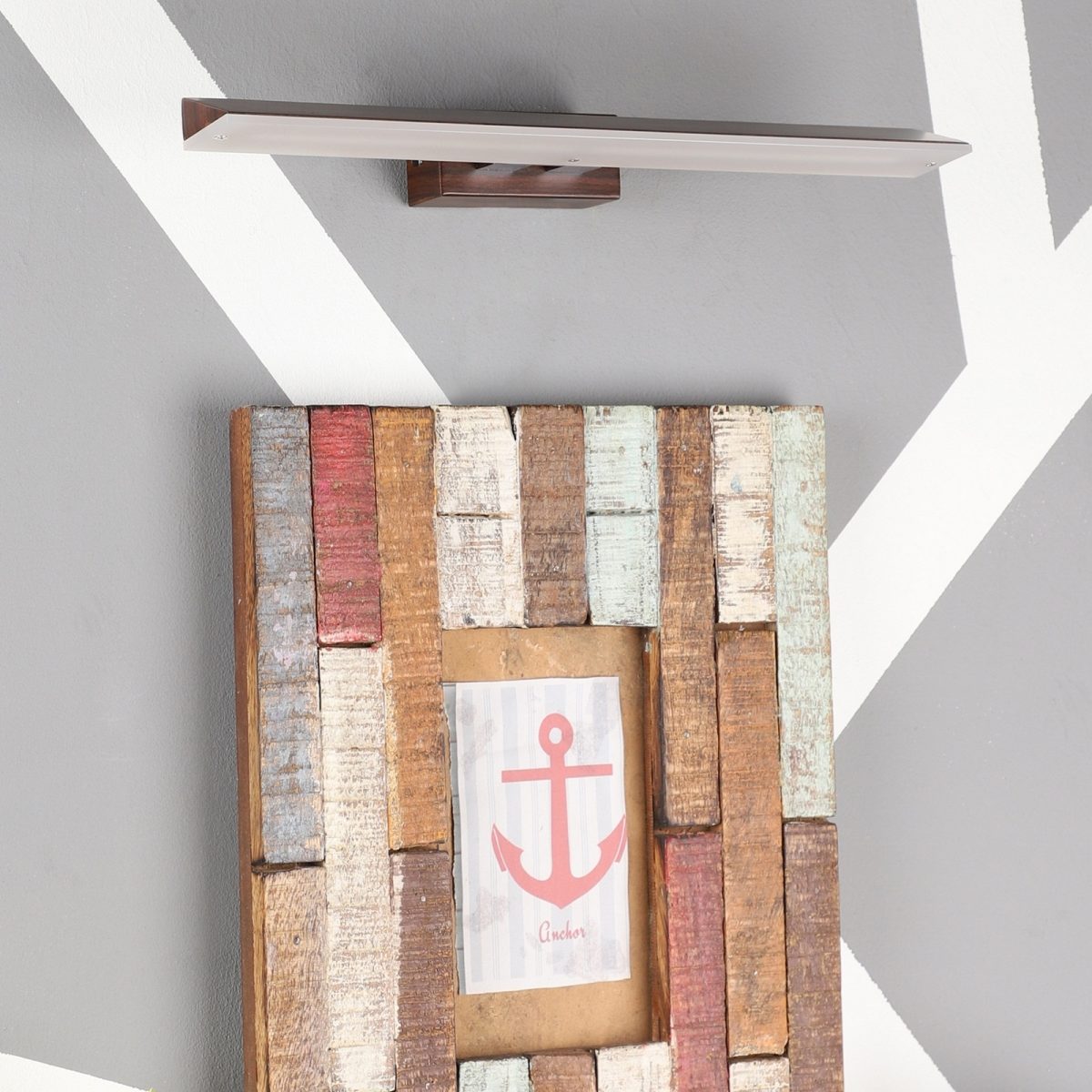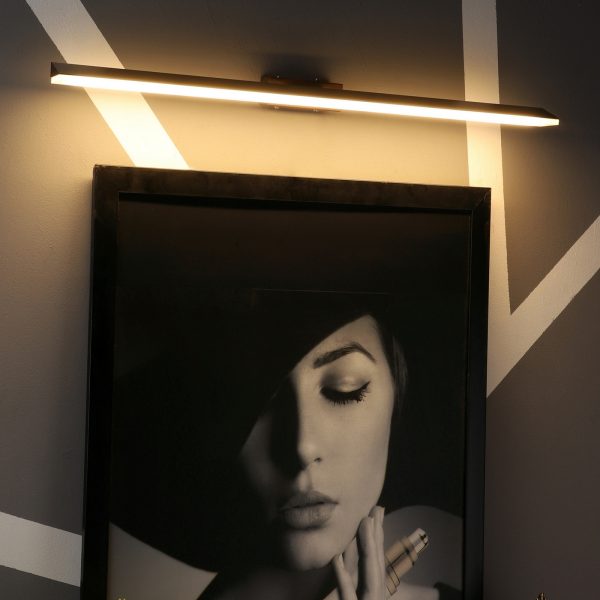 Exclusive dark brown (wood finish) LED picture light using high quality LED and driver with high success rate having less than 0.5% replacement with warm white (yellow) light output. It features one adjustible point. It is usually placed over the painting or a photo frame on the wall. Can also be used above the mirror. Its premium quality wood finish makes it one of the best selling product in our catalogue. It is also available in X-large and small size with codes ML336-XL, ML336-S. it can be made in silver, antique, copper, white, and black finish in case of bulk requirement.