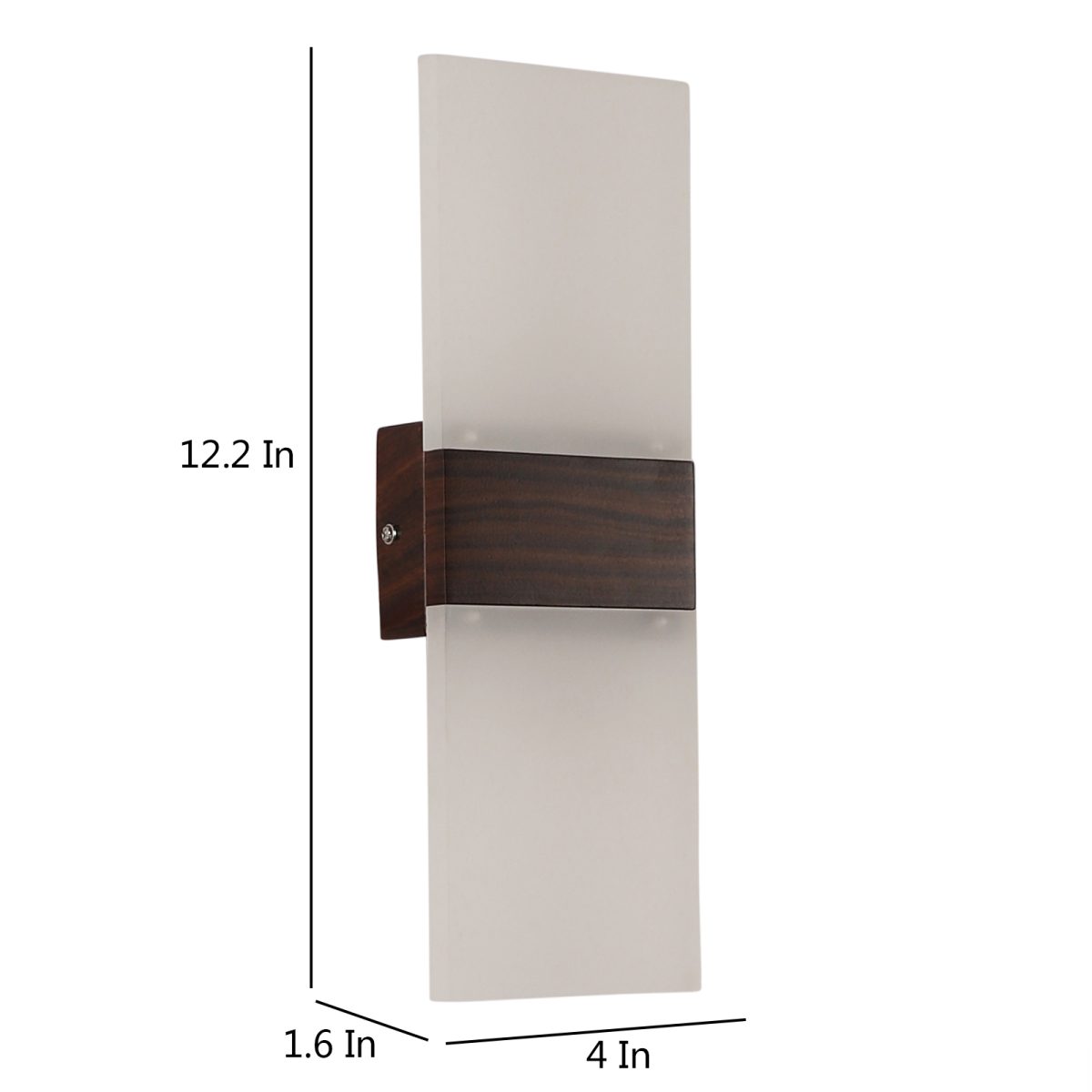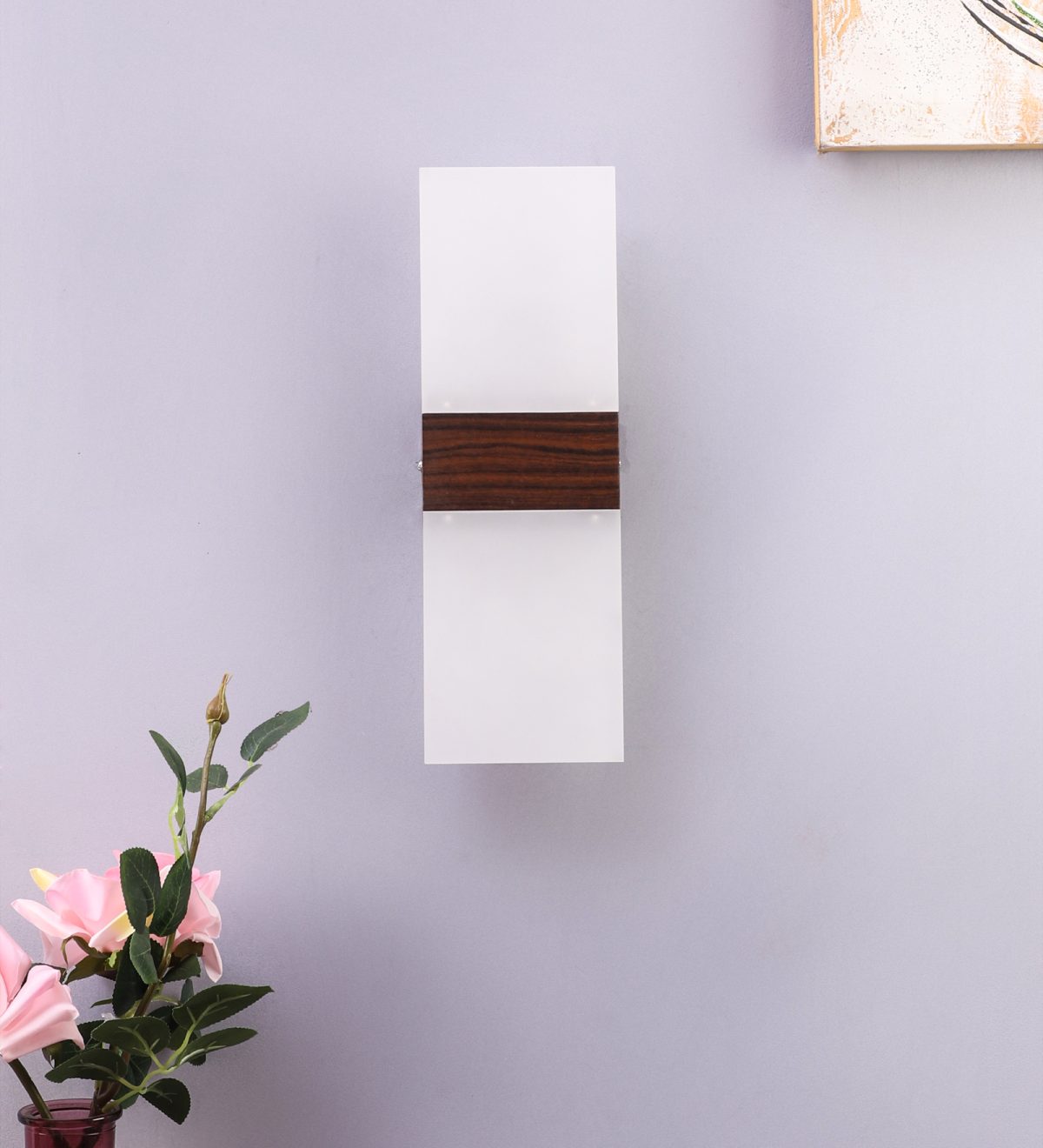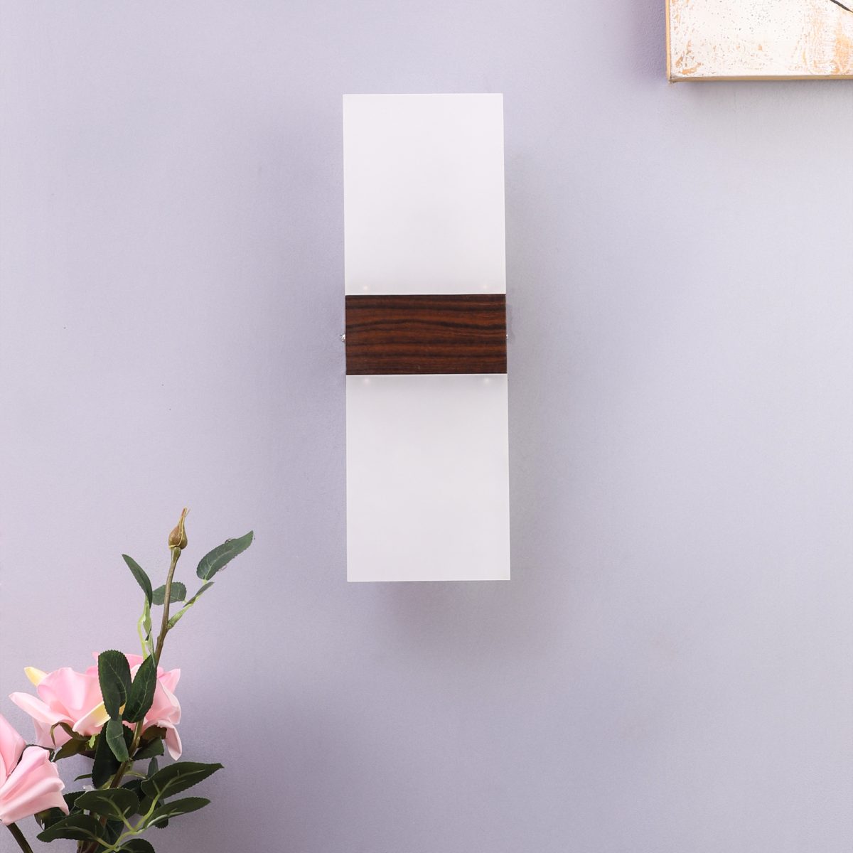 Exclusive dark brown (wood finish) aluminium die cast rectangular LED wall light with frosted acrylic diffuser. It uses high quality LED and driver with high success rate having less than 0.5% replacement with warm white (yellow) light output. This design is largely preferred by architects and interior designers. Its premium quality wood finish makes it one of the best selling product in our catalogue. Application includes both residential and commercial premises.
