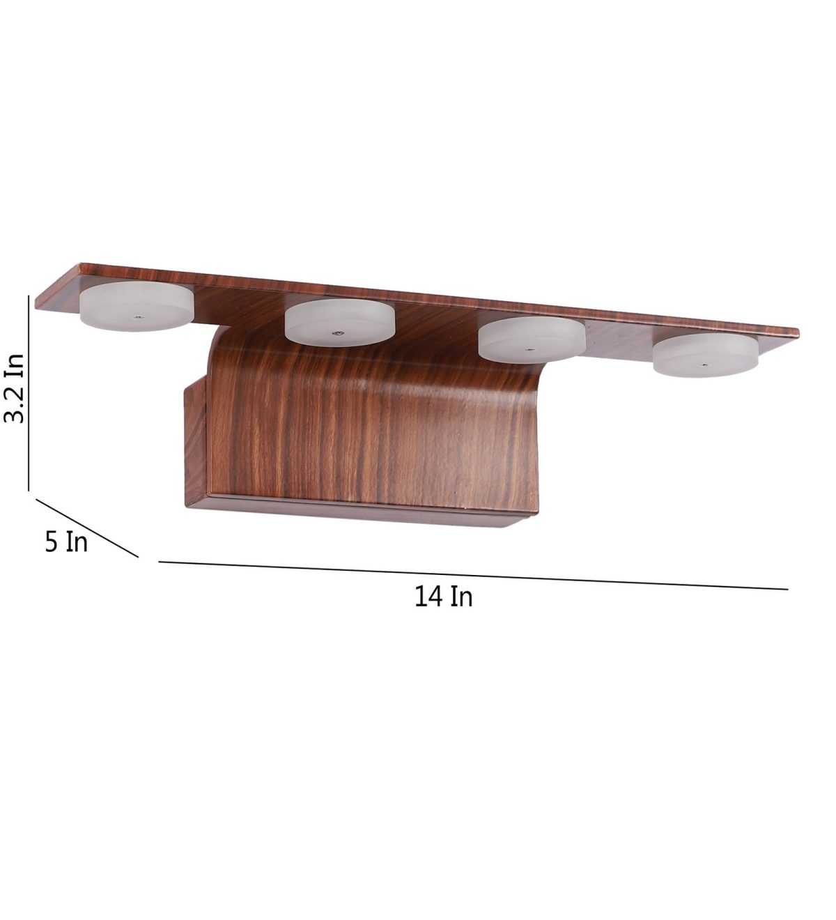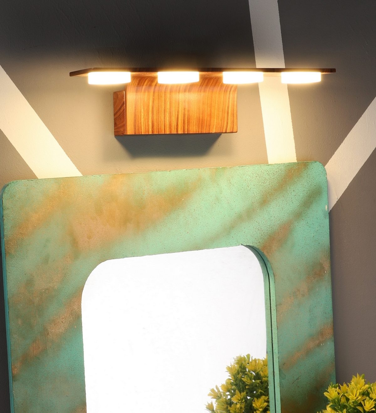 LEARC LED Lighting aluminium die cast premium wood finish 14 inch three light 12 watt LED Mirror Light with yellow light ML358-3