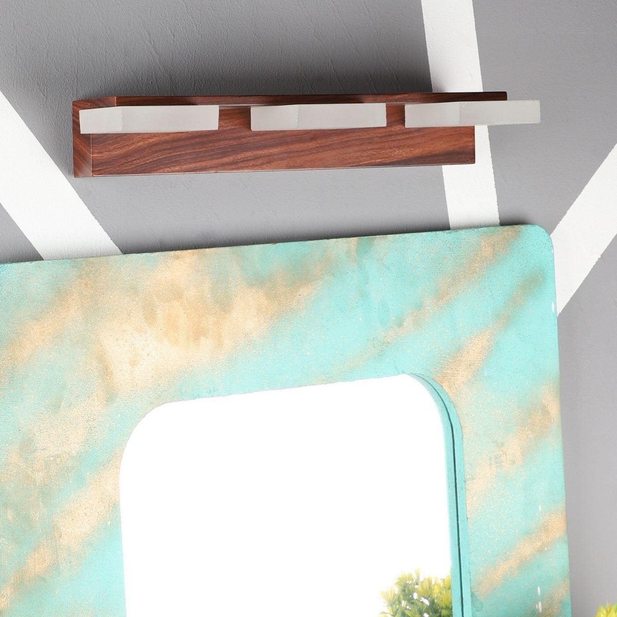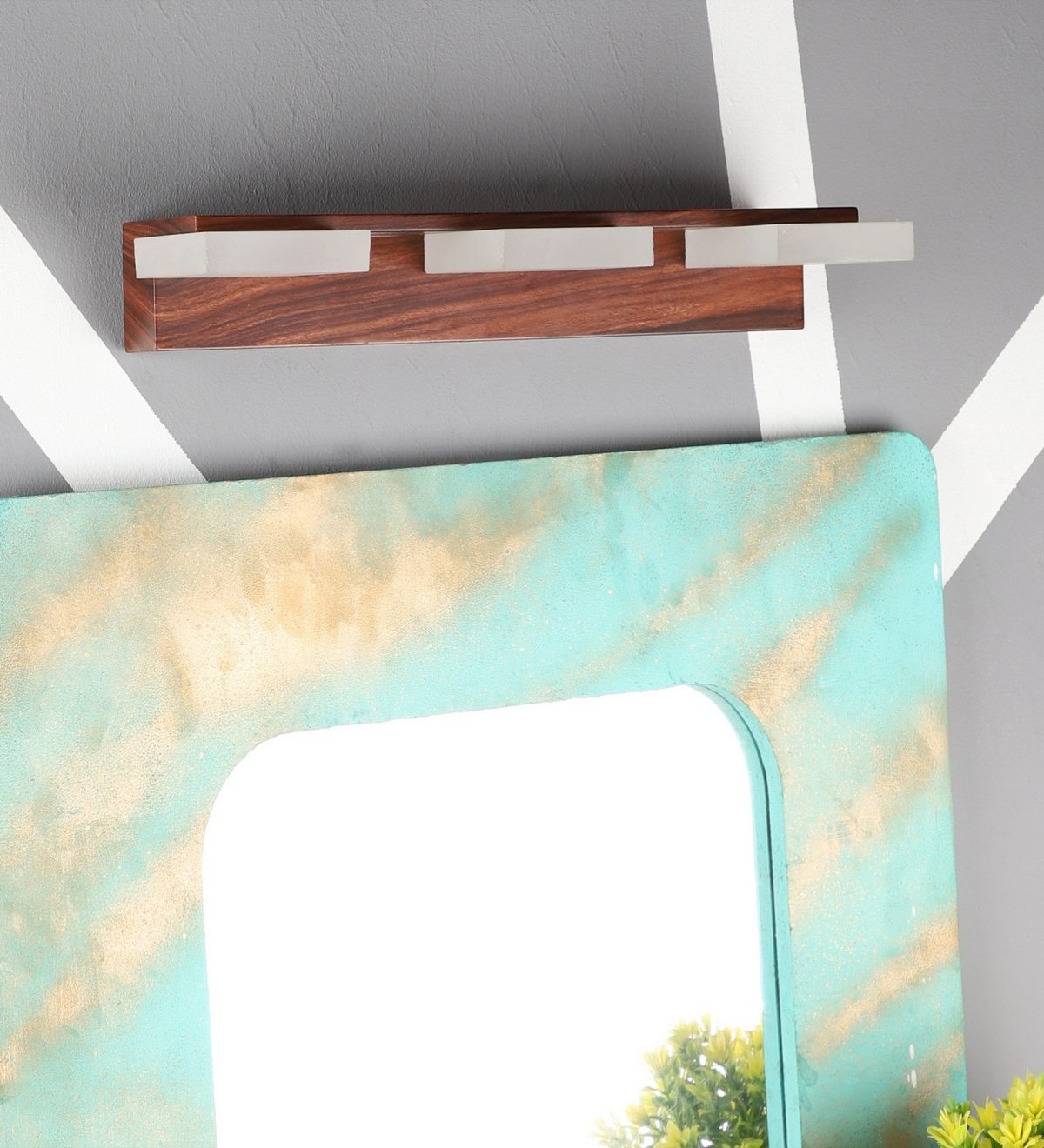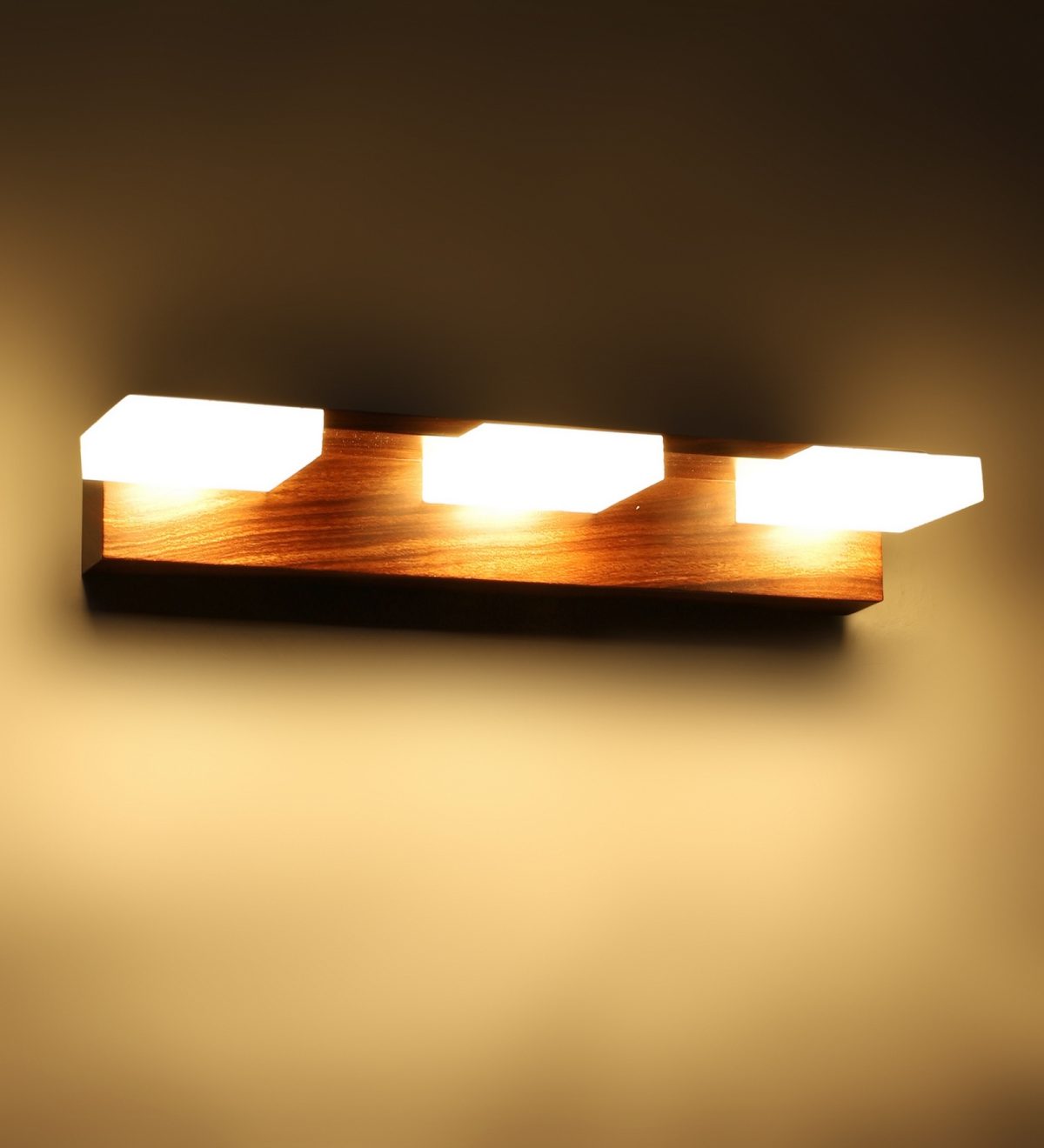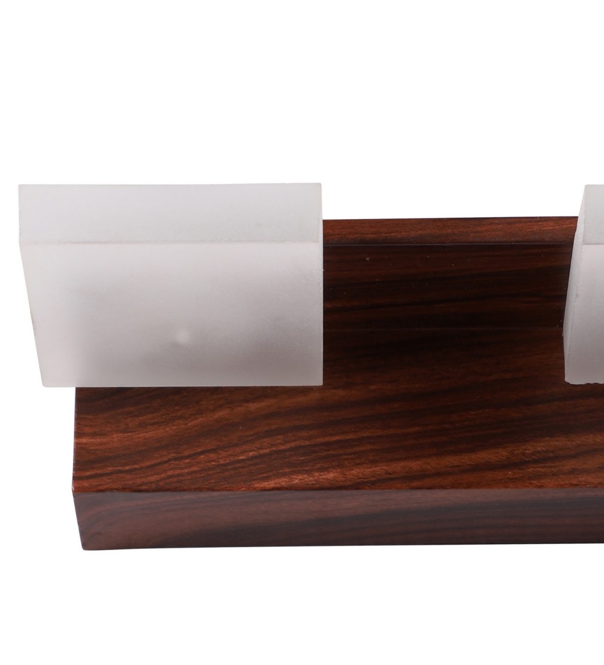 Exclusive dark brown (wood finish) LED mirror light using high quality LED and driver with high success rate having less than 0.5% replacement with warm white (yellow) light output. It is usually placed over the mirror. Can also be used as a picture light or a wall light. Its premium quality wood finish makes it one of the best selling product in our catalogue. It is also available in big size with code ML358-6. It can be made in silver, antique, copper, white, and black finish with two, four and five lamp units also, in case of bulk requirement.