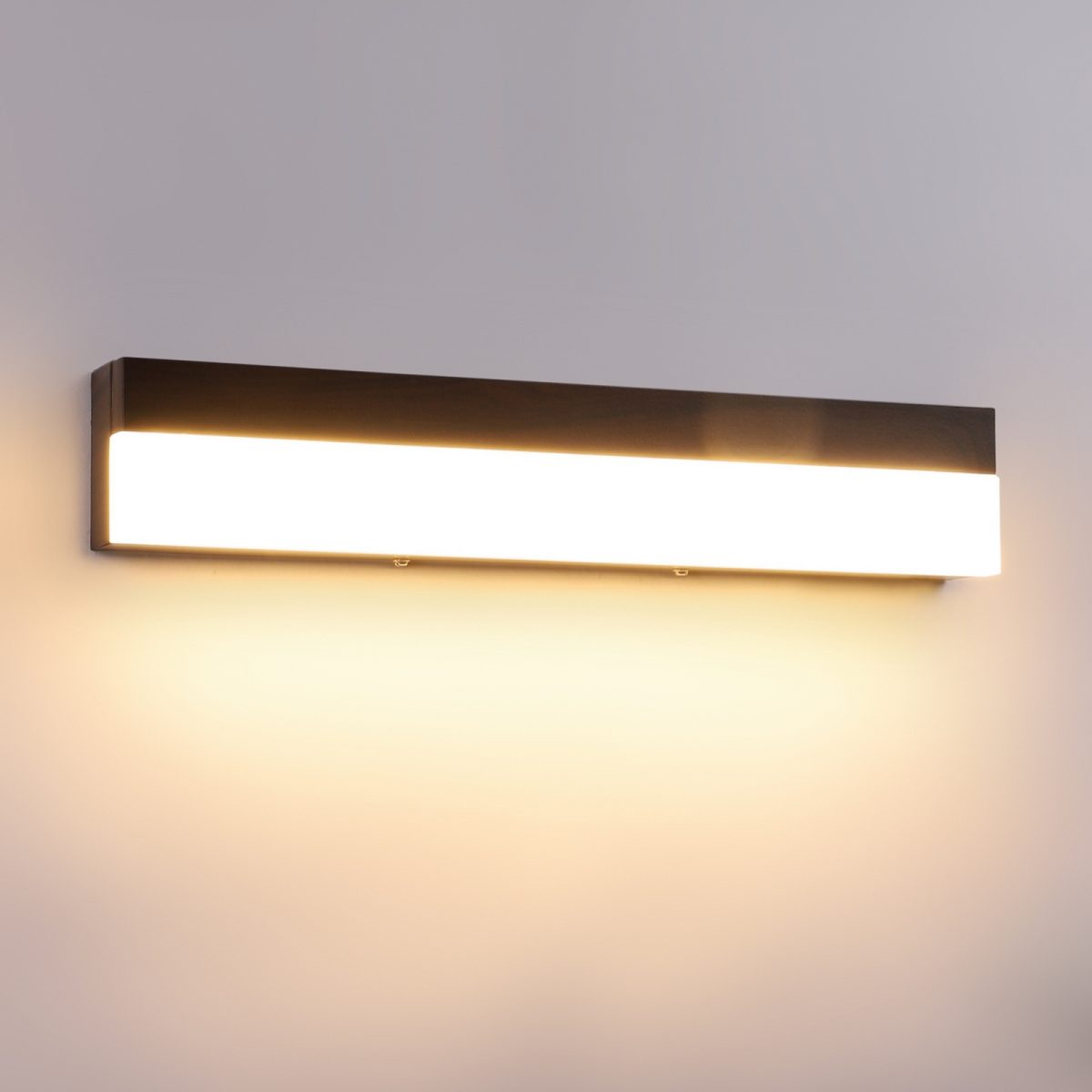 Exclusive dark brown (wood finish) LED mirror light using high quality LED and driver with high success rate having less than 0.5% replacement with warm white (yellow) light output. It is usually placed over the mirror. Can also be used as a picture light or a wall light. Its premium quality wood finish makes it one of the best selling product in our catalogue. It is also available in small sizes with codes ML337-S and WL2491. It can be made in silver, antique, copper, white, and black finish in case of bulk requirement.