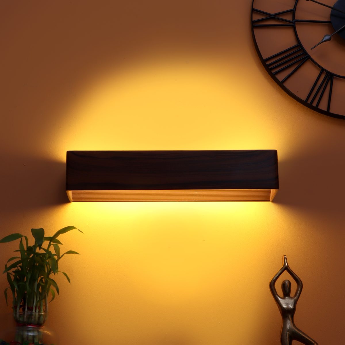 Wood finish, aluminium die cast rectangular LED wall light with indirect light, using high quality LED and driver with high success rate having less than 0.5% replacement with warm white (yellow) light output.This design is largely preferred by architects and interior designers. Application includes both residential and commercial premises. Can also be used as a wall highlighter. Can be used in multiple quantities in the same wall to create a design. Can be customised as per requirement for bulk quantities. Please scroll down to see matching products.