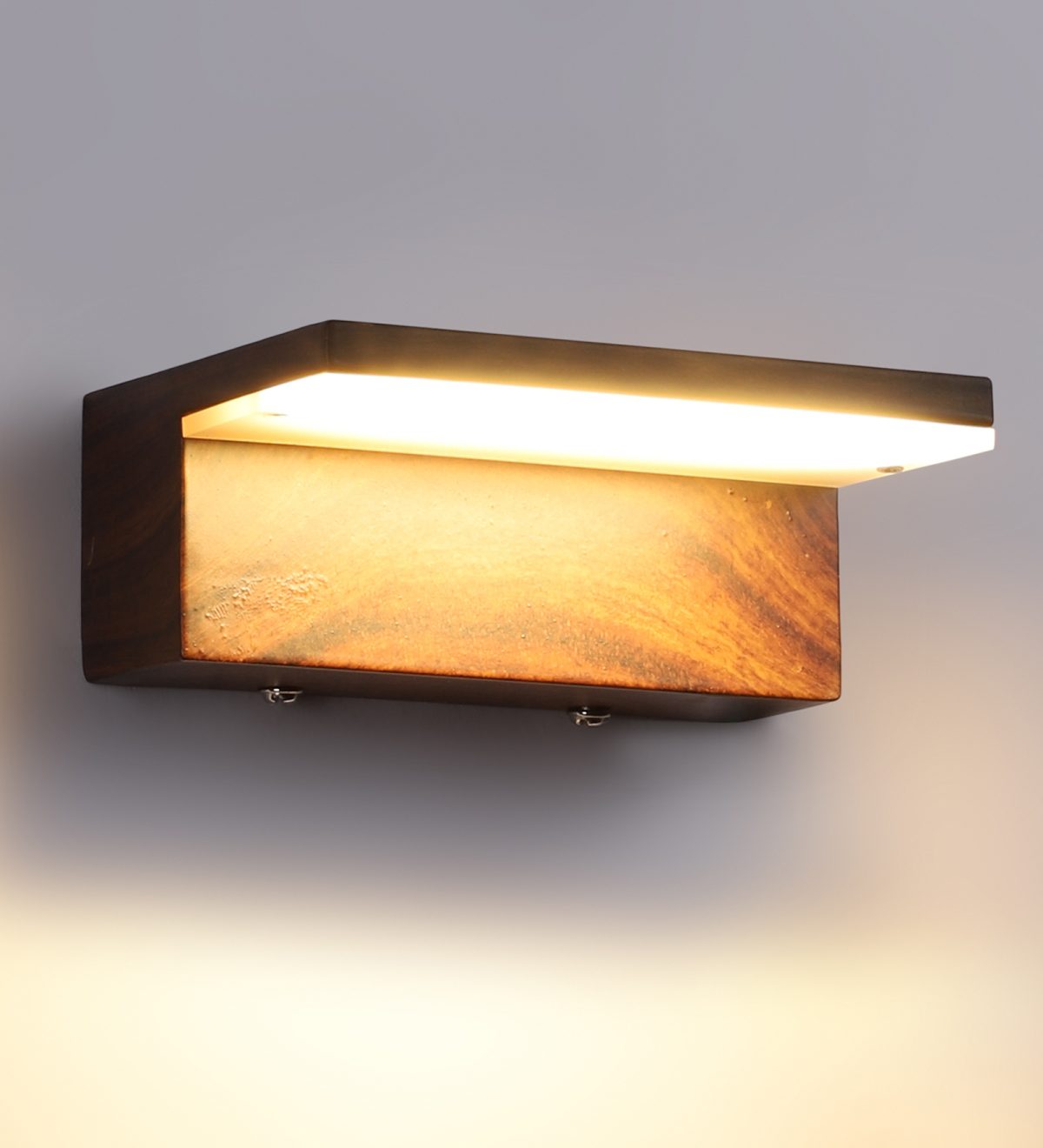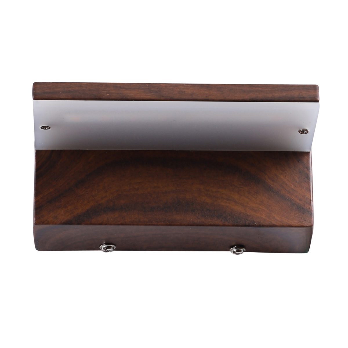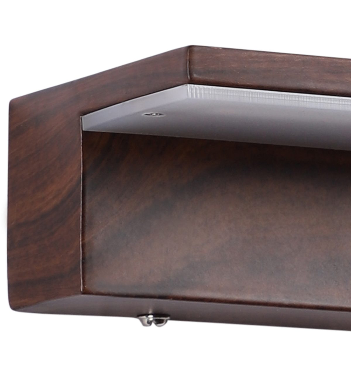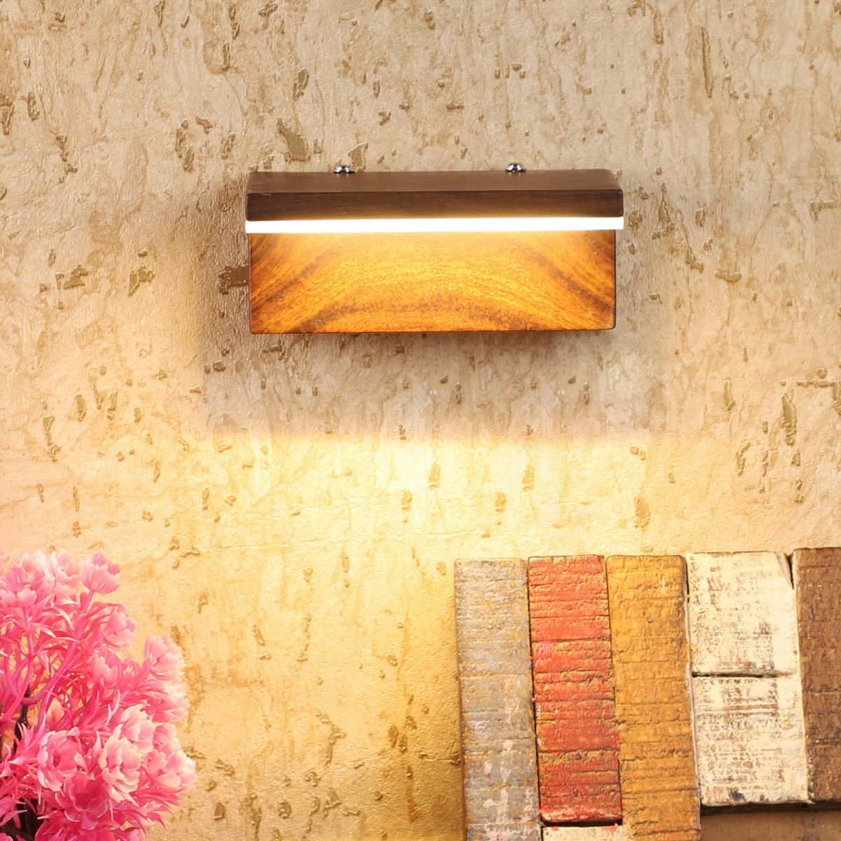 Brown (wood) finish LED wall light using high quality LED and driver with high success rate having less than 0.5% replacement with warm white (yellow) light output. Can also be used as a mirror light. It can be made in silver, antique, copper, white, and black finish having various width and wattage in case of bulk requirement.