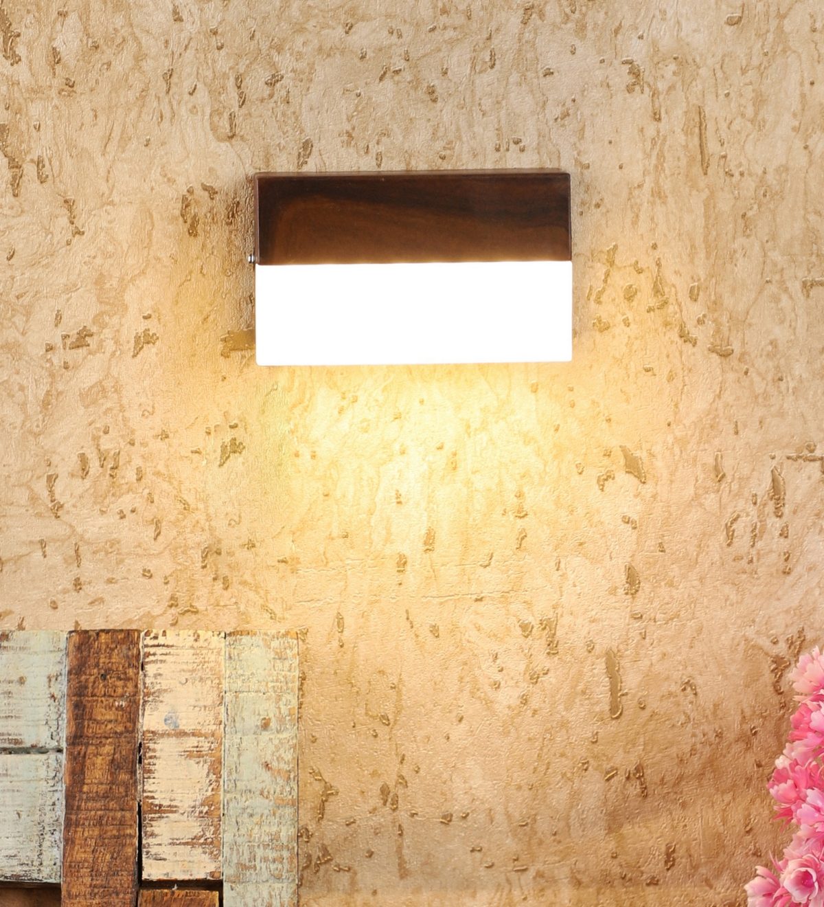 Brown (wood) finish LED wall light using high quality LED and driver with high success rate having less than 0.5% replacement with warm white (yellow) light output. Can also be used as a mirror light. Also available in bigger size with code ML337-S, ML337-L. It can be made in silver, antique, copper, white, and black finish having various width and wattage in case of bulk requirement.