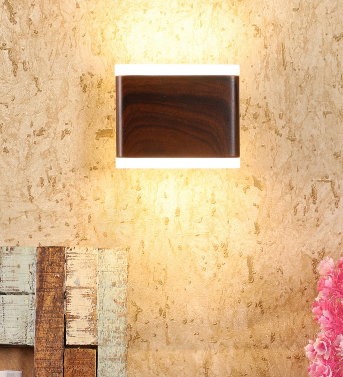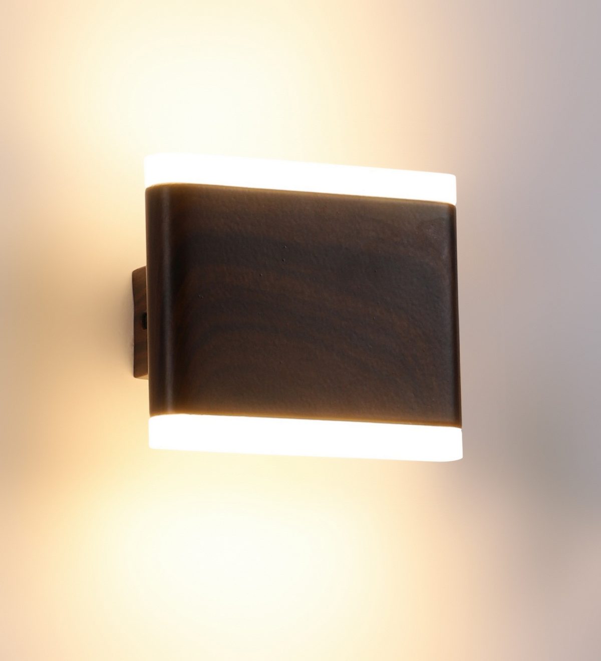 Brown (wood) finish up and down LED wall light using high quality LED and driver with high success rate having less than 0.5% replacement with warm white (yellow) light output. This design is largely preferred by architects and interior designers. Application includes both residential and commercial premises. Also available in big sizes with code ML332 and ML368-S. It can be made in silver, antique, copper, white, and black finish having various width and wattage in case of bulk requirement.