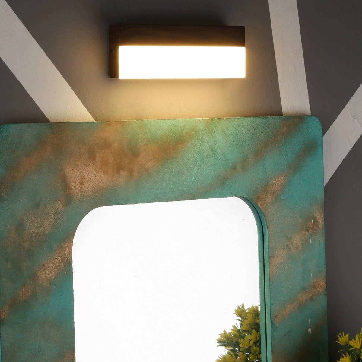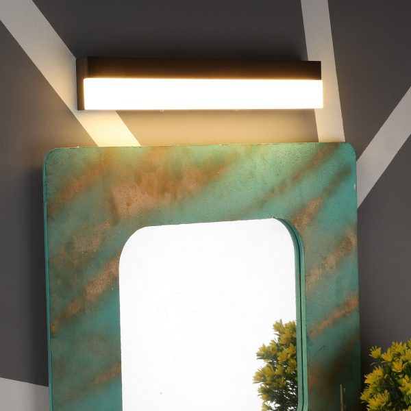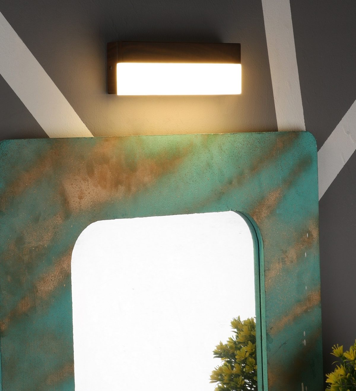 Exclusive dark brown (wood finish) LED mirror light using high quality LED and driver with high success rate having less than 0.5% replacement with warm white (yellow) light output. It is usually placed over the mirror. Can also be used as a picture light or a wall light. Its premium quality wood finish makes it one of the best selling product in our catalogue. It is also available in big and small size with codes ML337-L and WL2491. It can be made in silver, antique, copper, white, and black finish in case of bulk requirement.