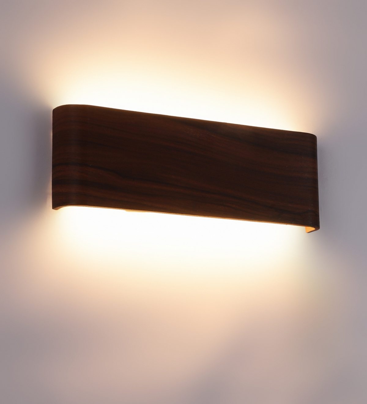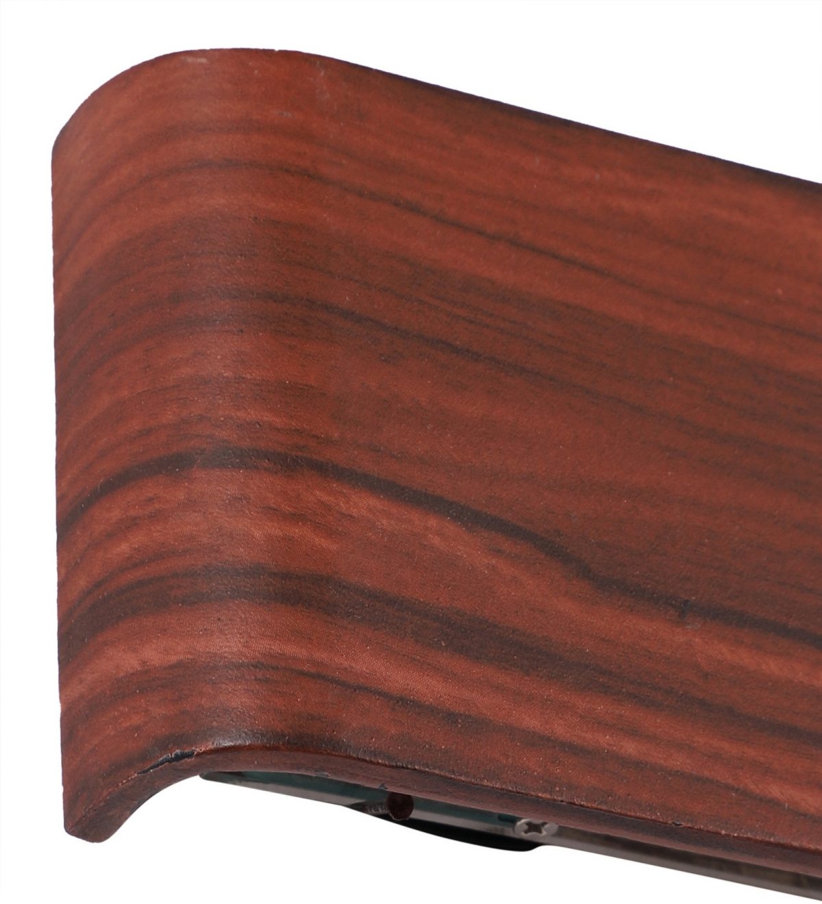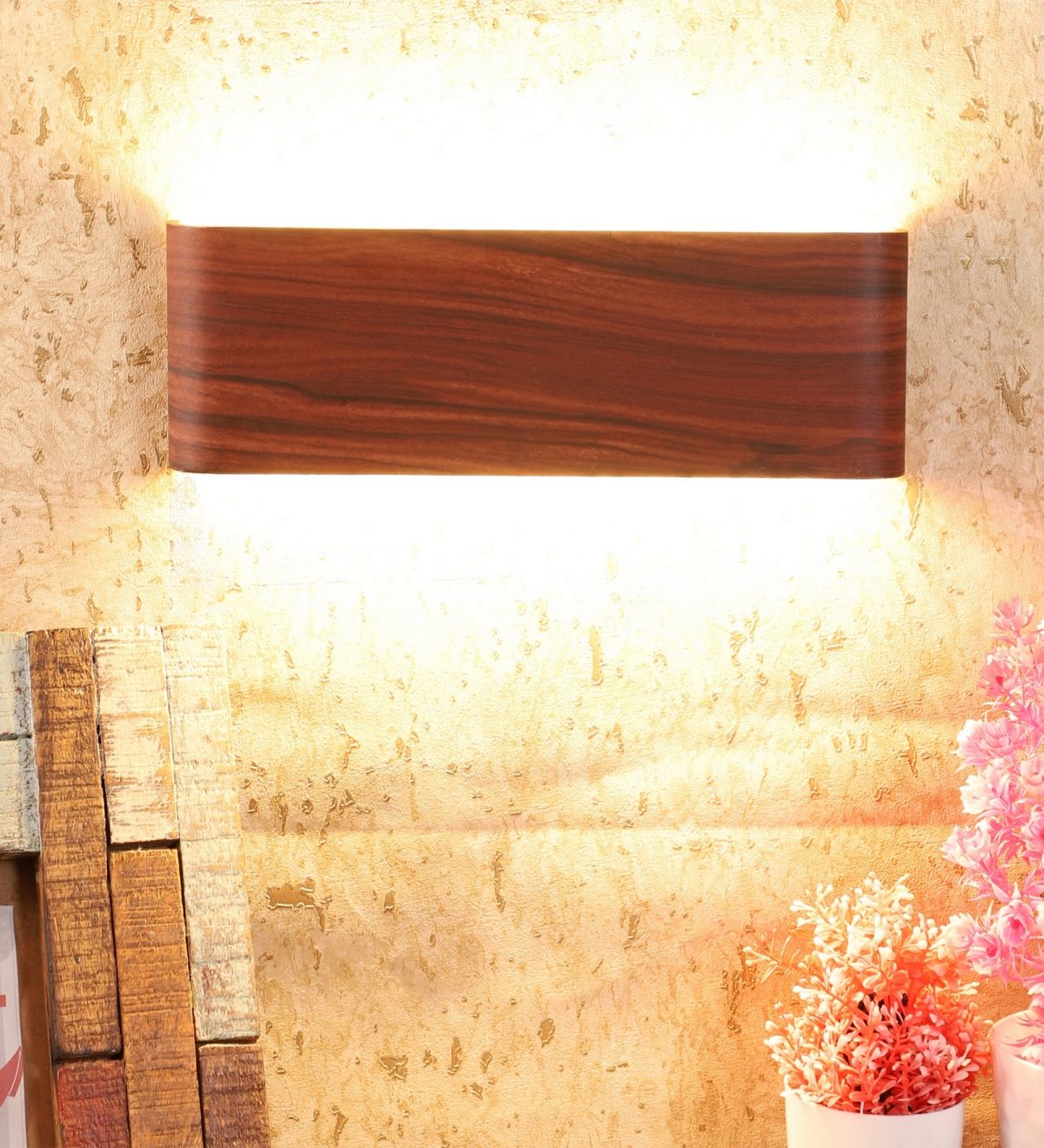 Brown (wood) finish up and down LED wall light using high quality LED and driver with high success rate having less than 0.5% replacement with warm white (yellow) light output. This design is largely preferred by architects and interior designers. Application includes both residential and commercial premises. Also used as a wall highlighter. It can be made in silver, antique, copper, white, and black finish having various width and wattage in case of bulk requirement.