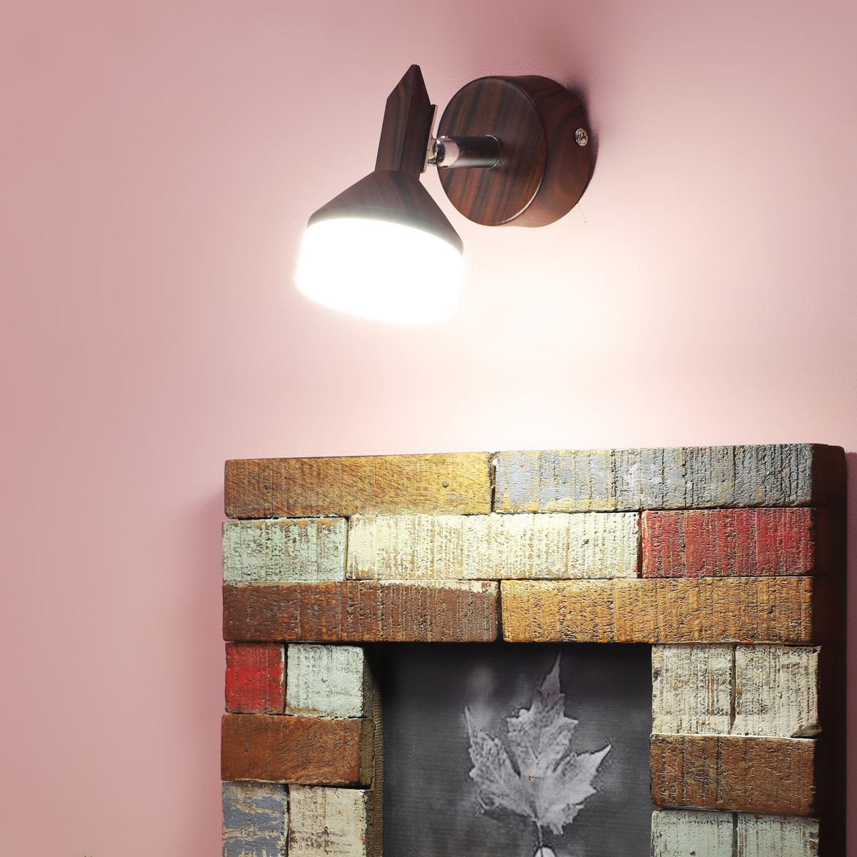 Aluminium die cast, premium brown (wood finish with grains) adjustable spot/picture light. It is having a spot of 5W to provide a very bright warm white (yellow)output. The light emitting spot is mounted on a rotatable neck which can be rotated in all the directions enabling spot to be positioned wherever required. Picture lights are functional wall lights which offer a direct light on the object we need to enhance. Can also be made available in white (6000K) and neutral white (4000K) light output for bulk requirement. Also available in two spot option with code ML370-2. Can also be made available in three, four, five and six spot options in case of bulk requirement.