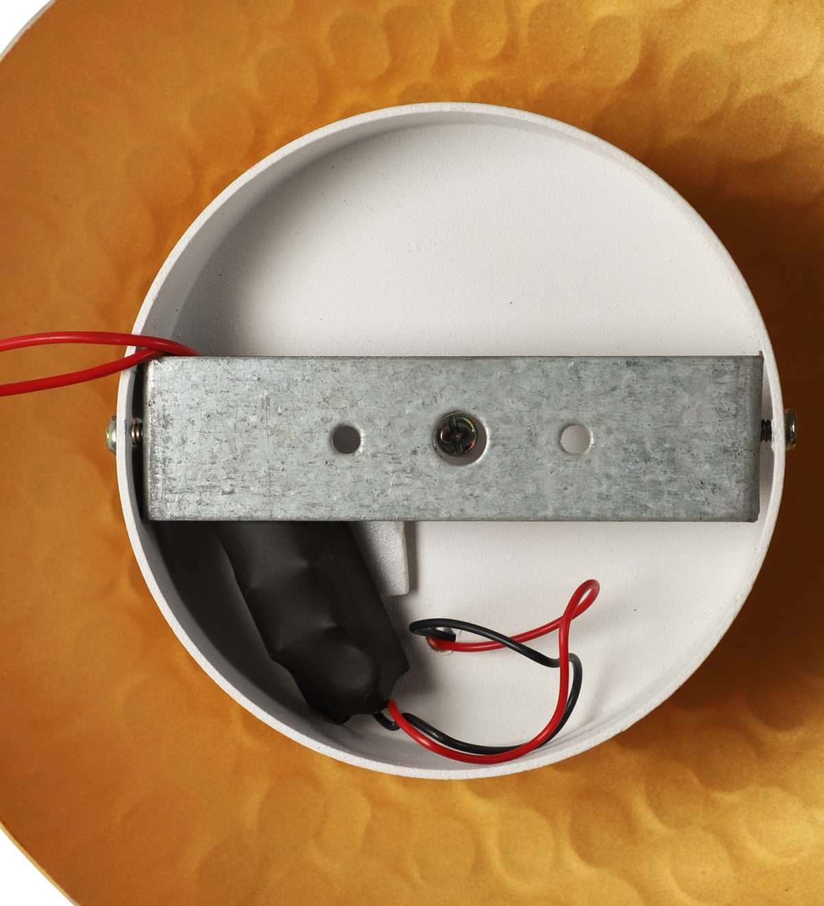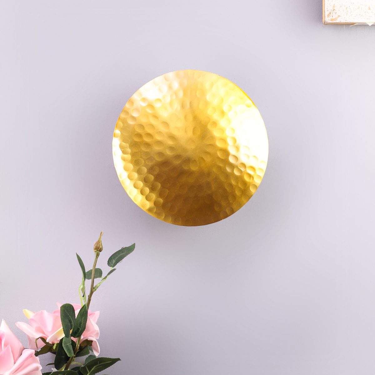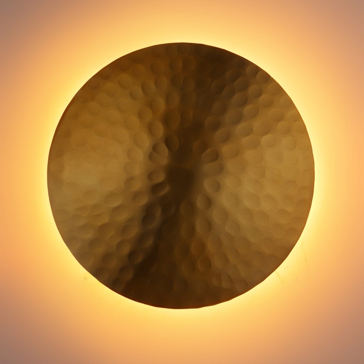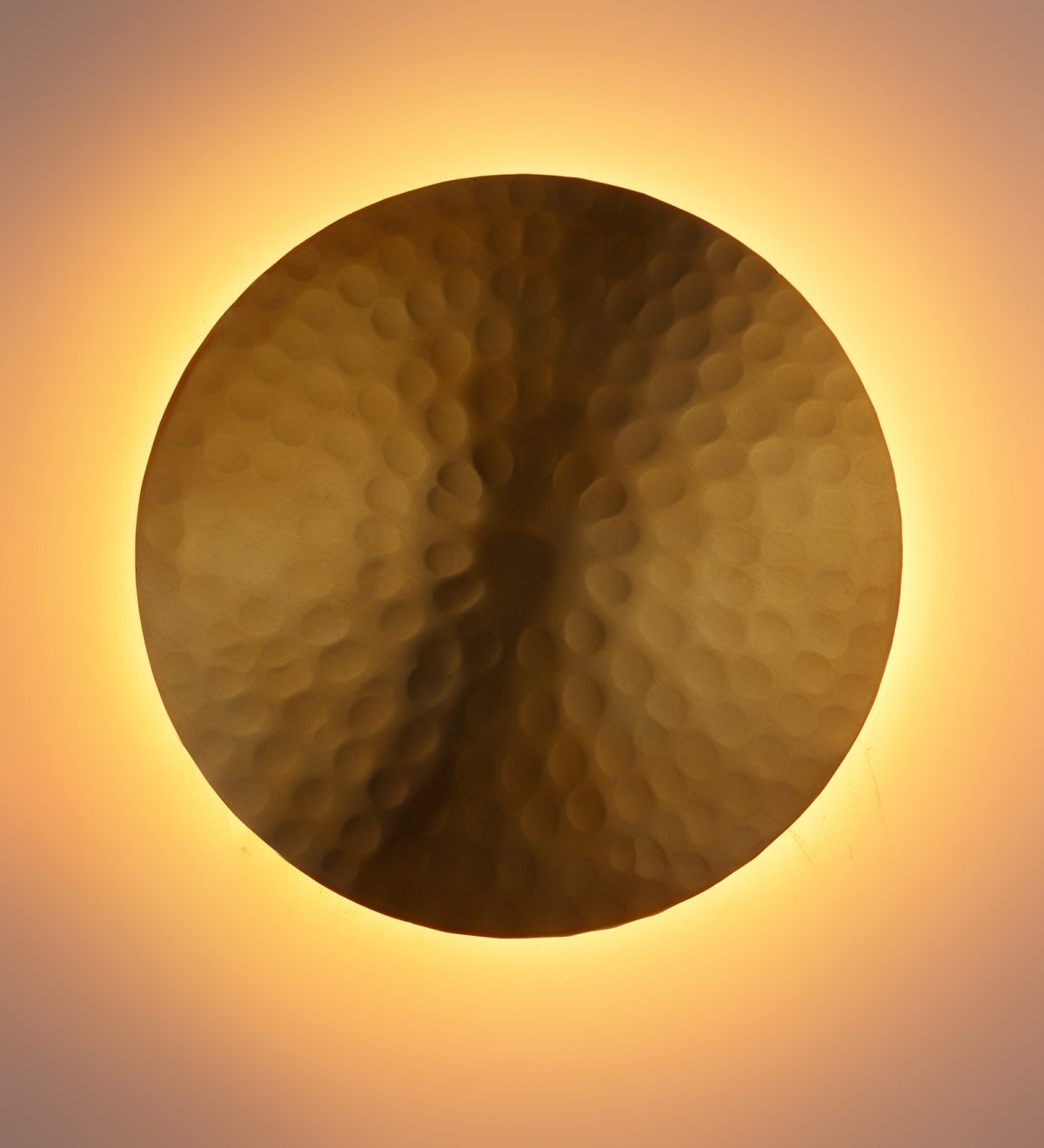 Antique gold finish aluminium sheet round LED wall light with indirect light, using high quality LED and driver with high success rate having less than 0.5% replacement with warm white (yellow) light output.This design is largely preferred by architects and interior designers. Application includes both residential and commercial premises. Also available in copper colour with code WL2940.