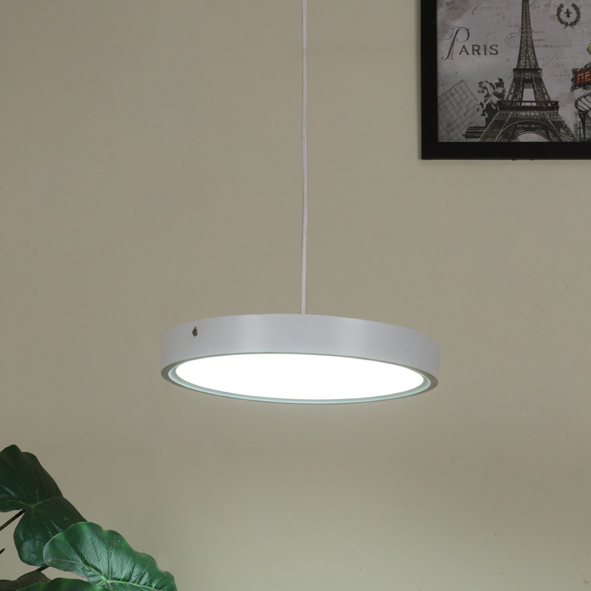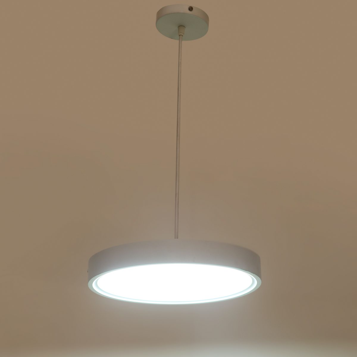 Powder coated white, modern, round, 24W single LED hanging light having high quality LED and driver with high success rate having less than 0.5% replacement. It is one of the best selling product. . The suspension can be adjusted at time of installation to the desired height. Application includes both residential and commercial premises wherever it matches with your interiors. Can be made available in cluster of multiple quantities against order.