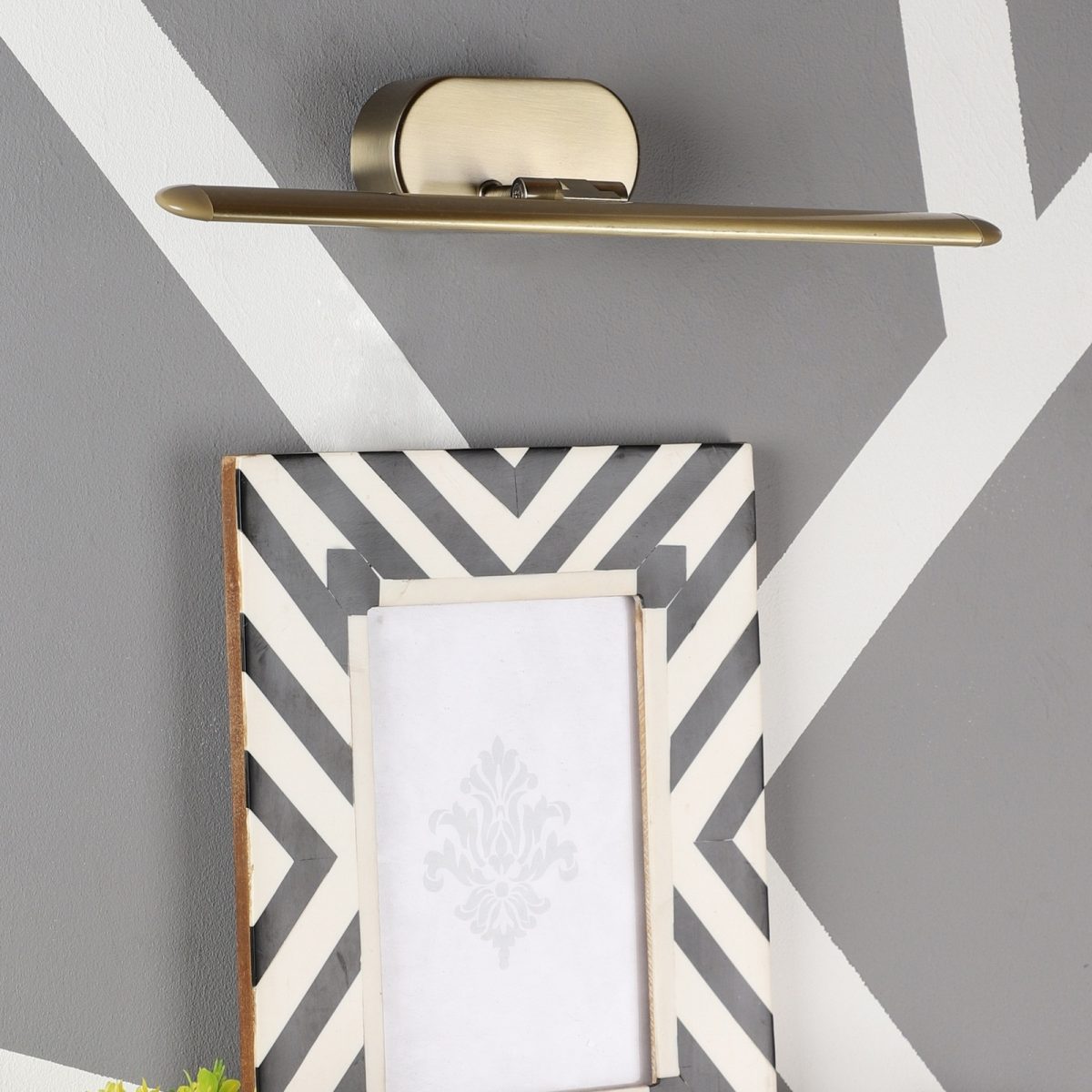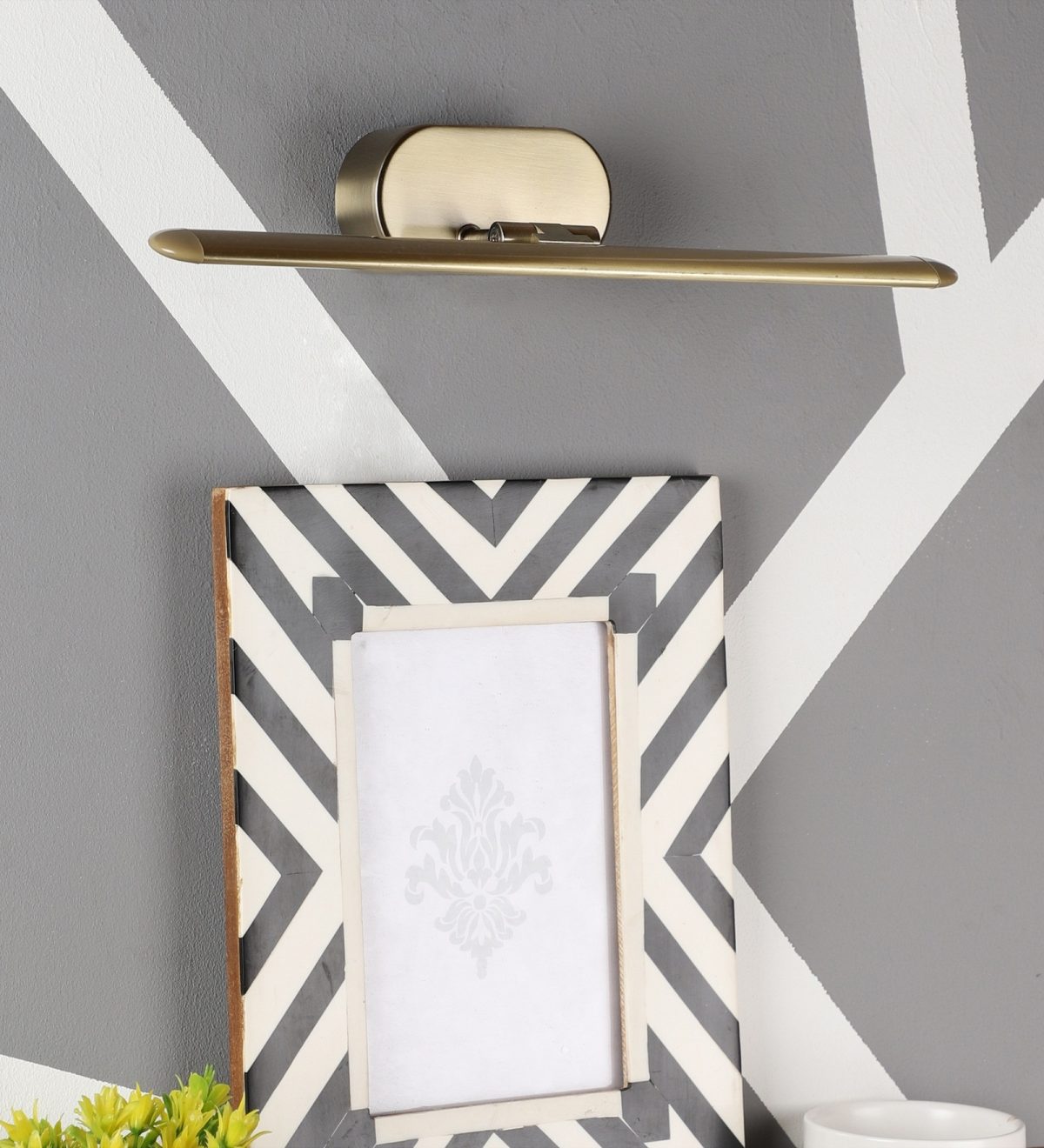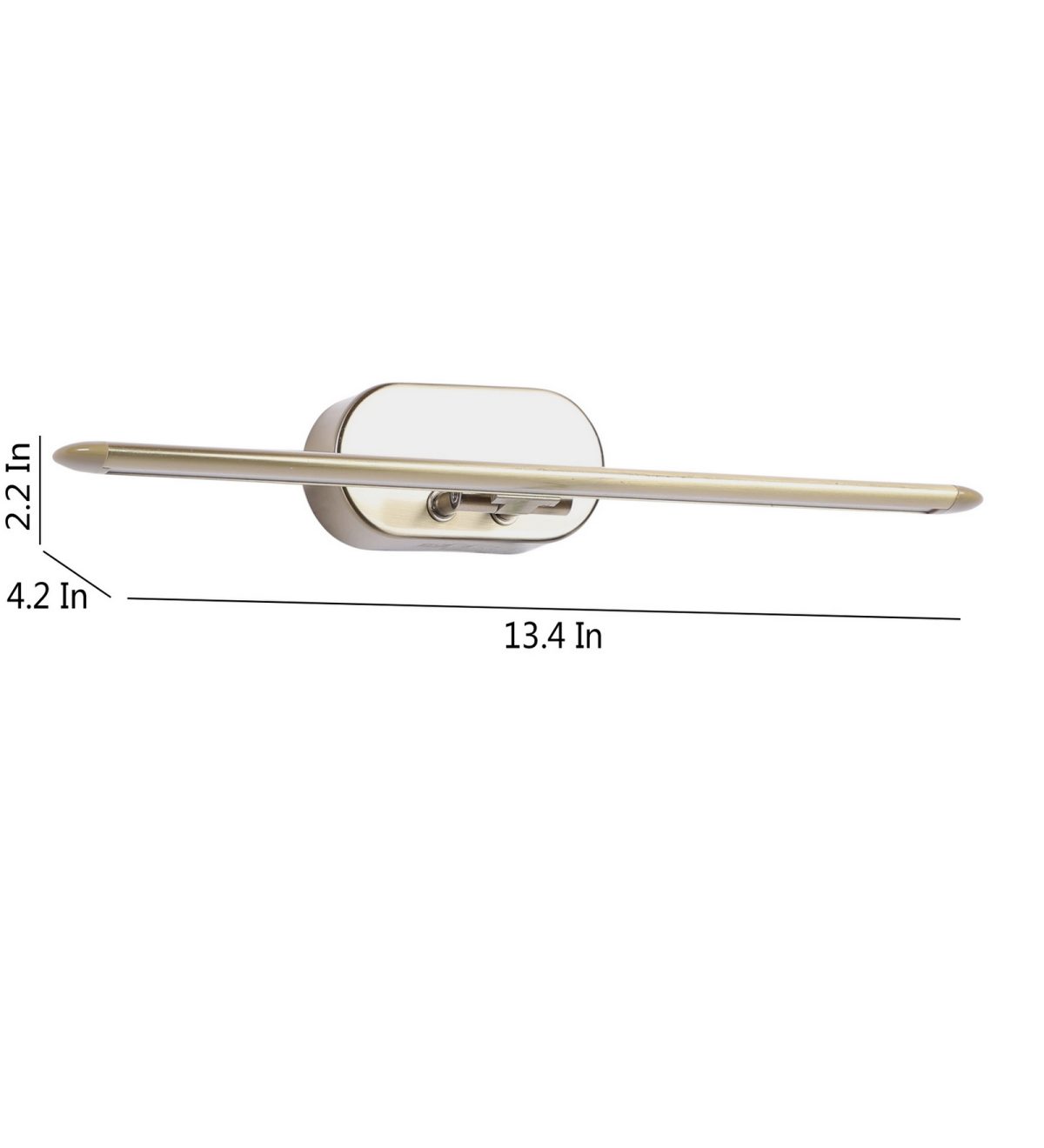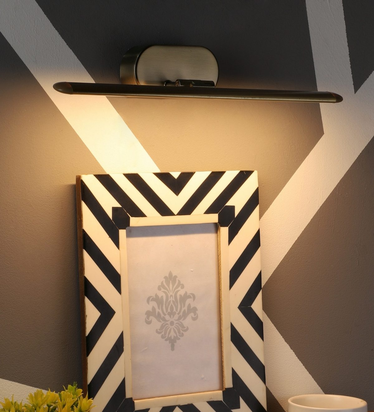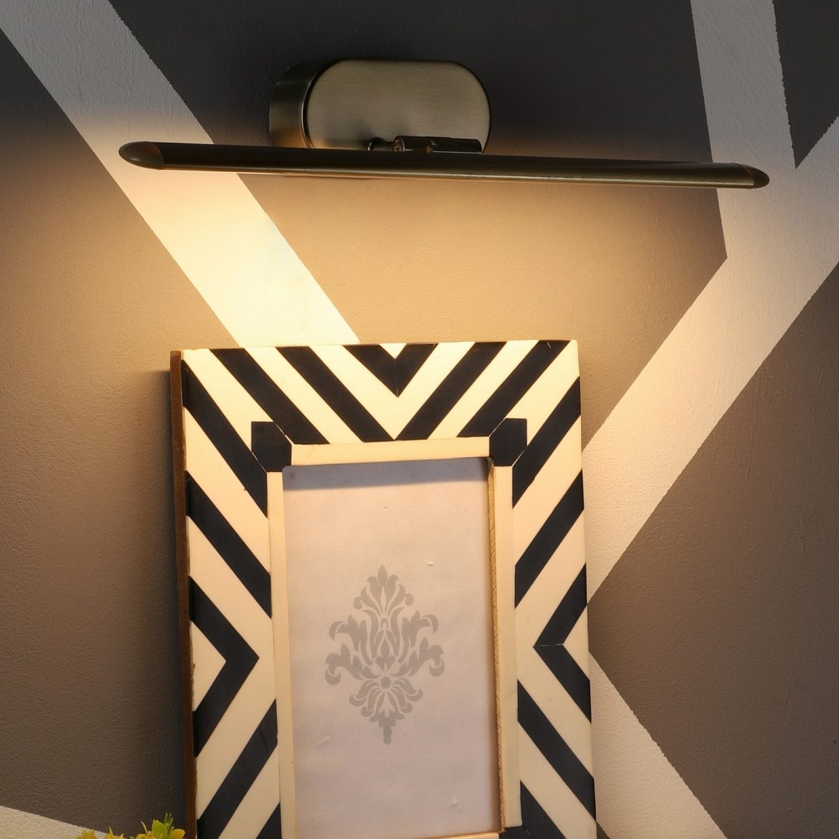 Antique brass finish LED picture light using high quality LED and driver with high success rate having less than 0.5% replacement with warm white (yellow) light output. It features one adjustible point. Its sleek design is preffred by lot of customers. It is usually placed over the painting or a photo frame on the wall. Can also be used above the mirror. It is also available in big size with codes ML338-L.