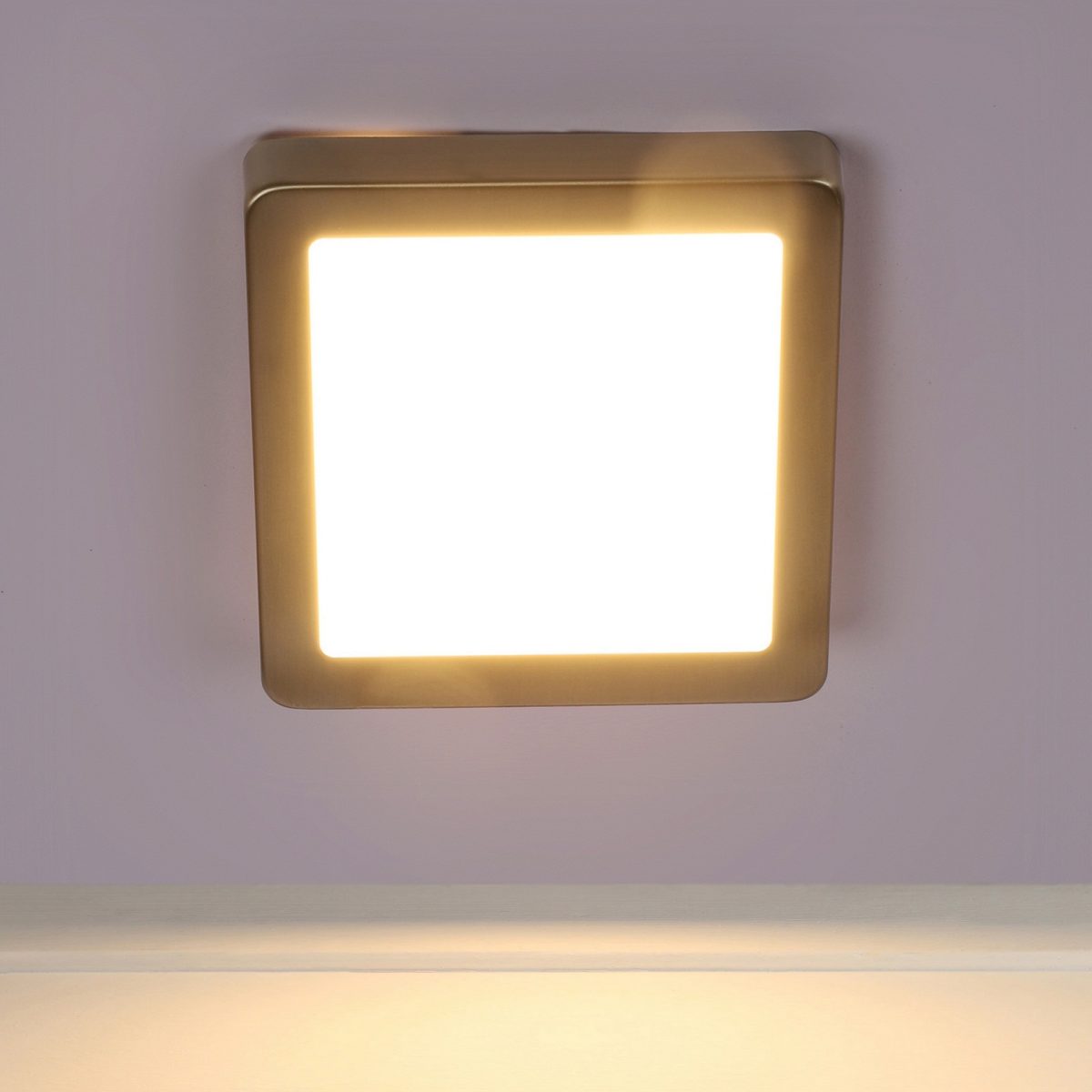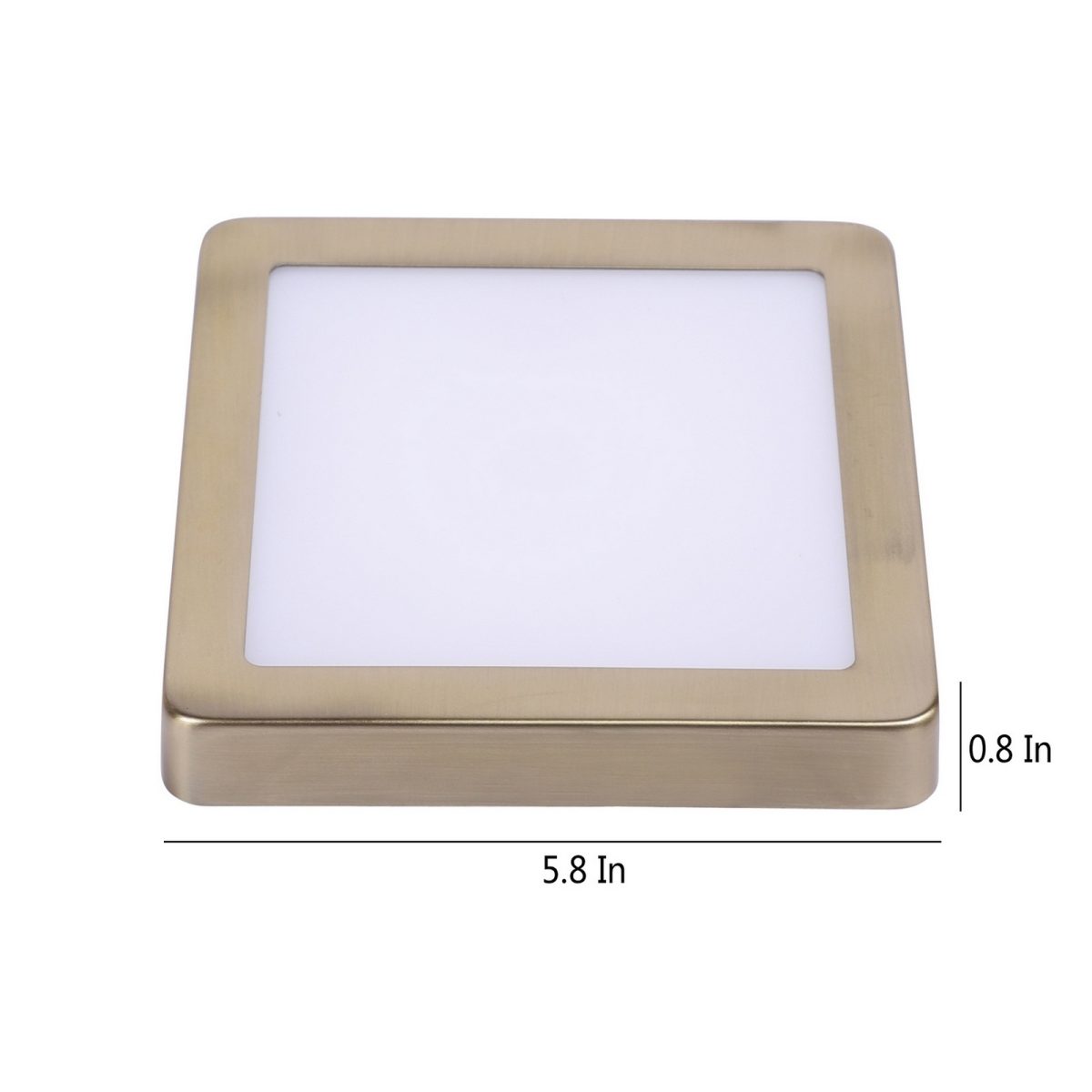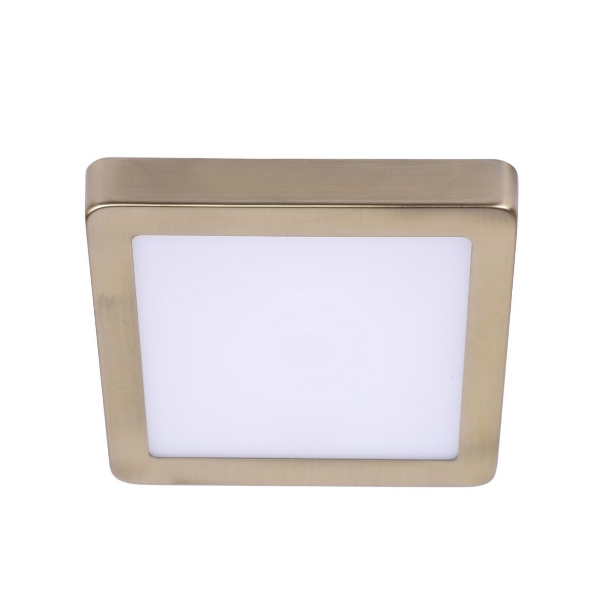 Antique brass finish square LED surface seiling light with warm white (yellow) light output. Can be used both indoors and outdoors.
