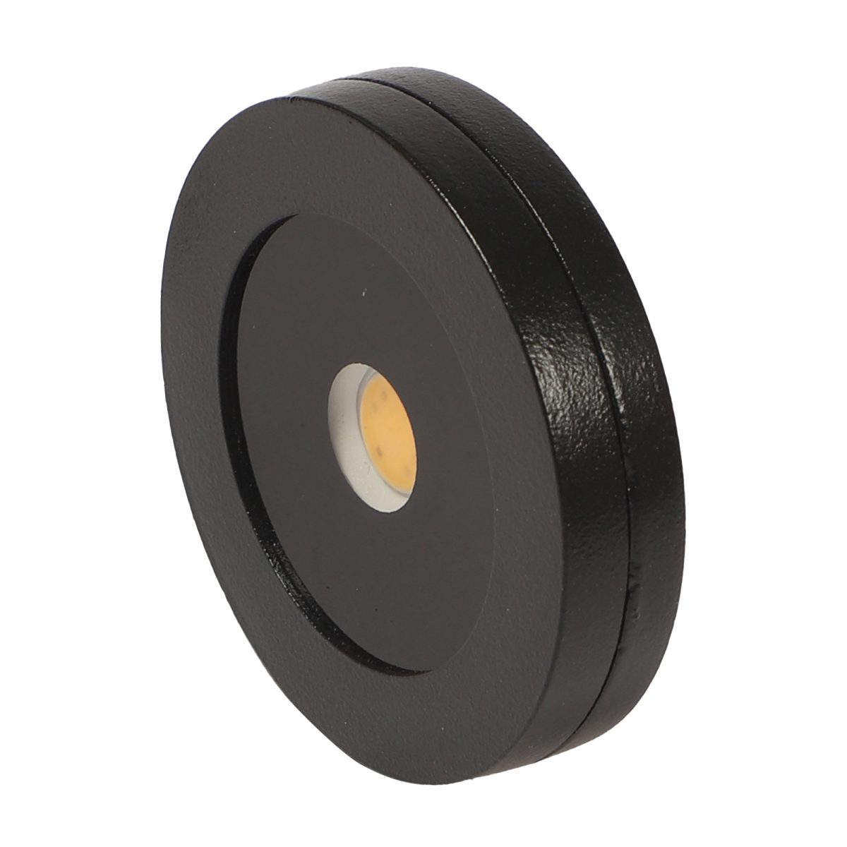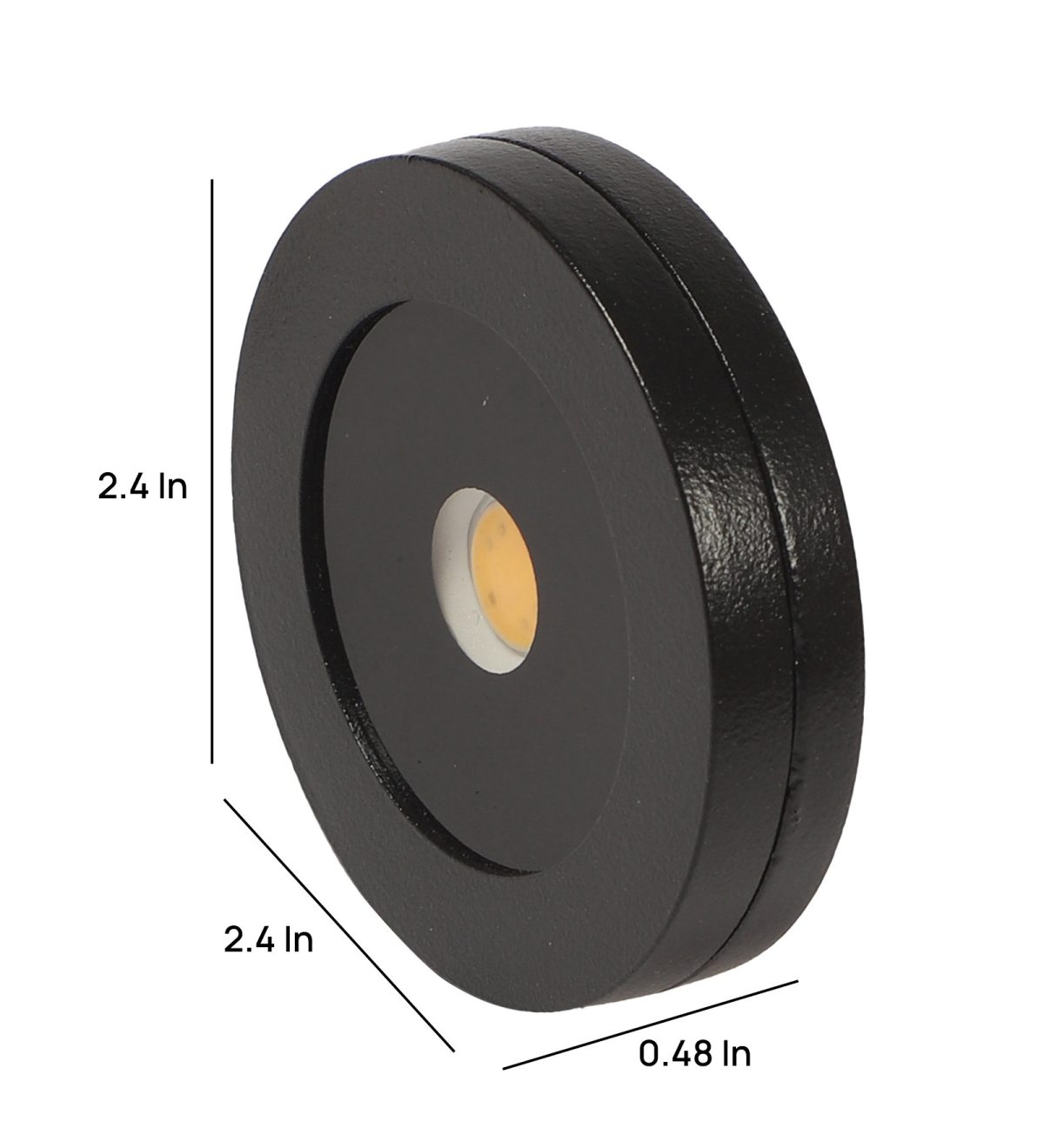 Black finish, aluminium round LED round surface type LED cabinet light with inbuild high quality LED and driver Application includes cabinets, show cases, wardrobes, mandir, niche..
