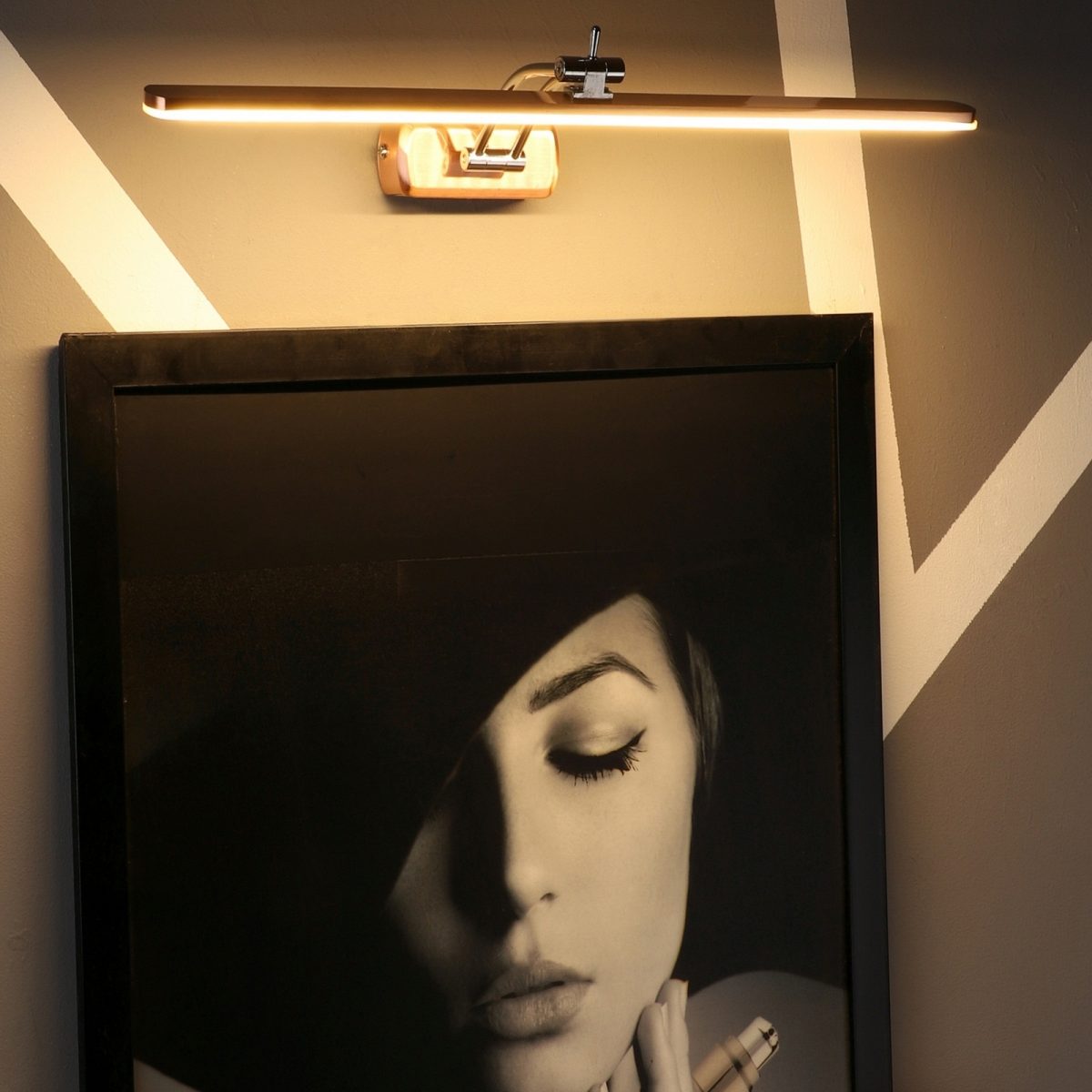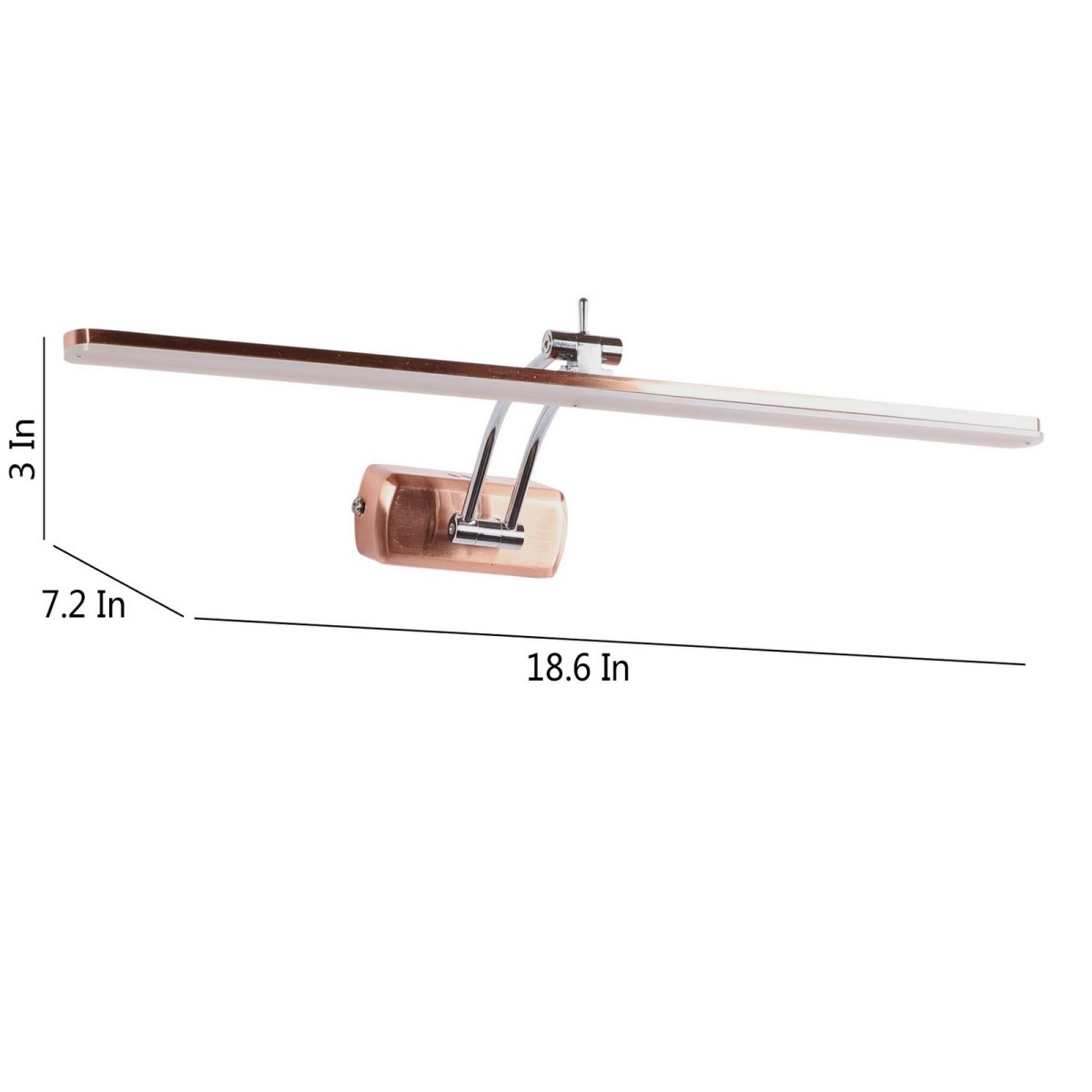 Exclusive copper finish LED picture light using high quality LED and driver with high success rate having less than 0.5% replacement with warm white (yellow) light output. It features two adjustible points. It is usually placed over the painting or a photo frame on the wall. Its premium quality copper finish makes it one of the best selling product in our catalogue. it can be made in silver, antique, wood, white, and black finish in different width in case of bulk requirement.