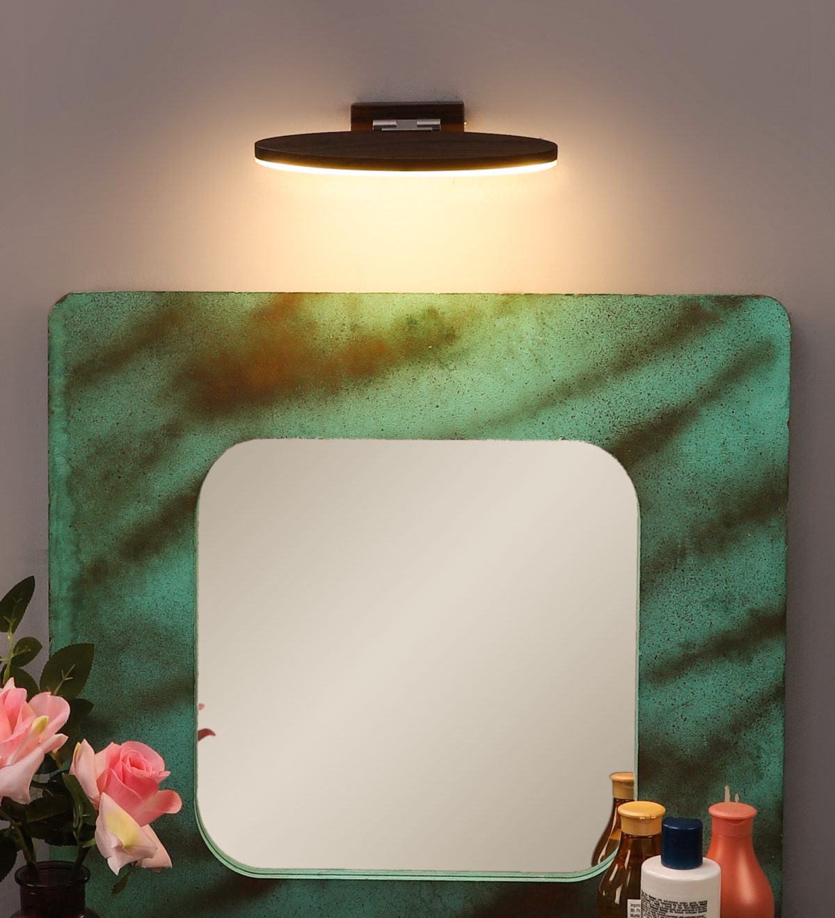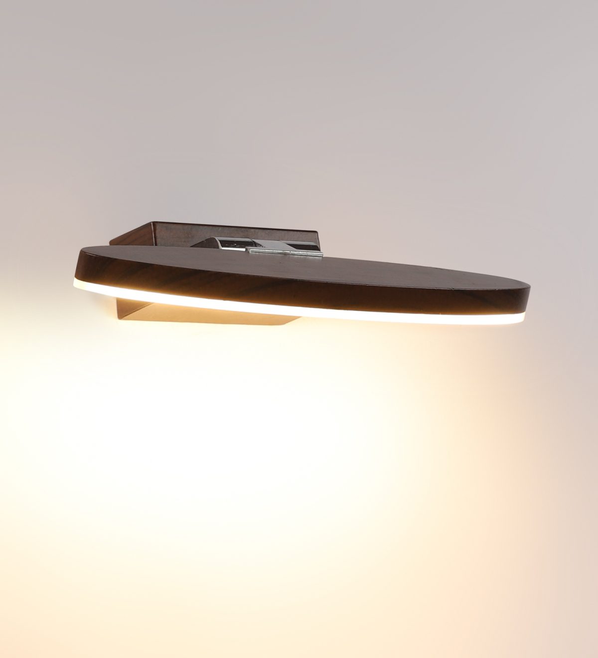 Exclusive dark brown (wood finish) LED picture light using high quality LED and driver with high success rate having less than 0.5% replacement with warm white (yellow) light output. It features one adjustible point. It is usually placed over the painting or a photo frame on the wall. Can also be used above the mirror. Its premium quality wood finish makes it one of the best selling product in our catalogue. It can be made in silver, antique, copper, and black finish in case of bulk requirement. Available in small size with code ML379-S.