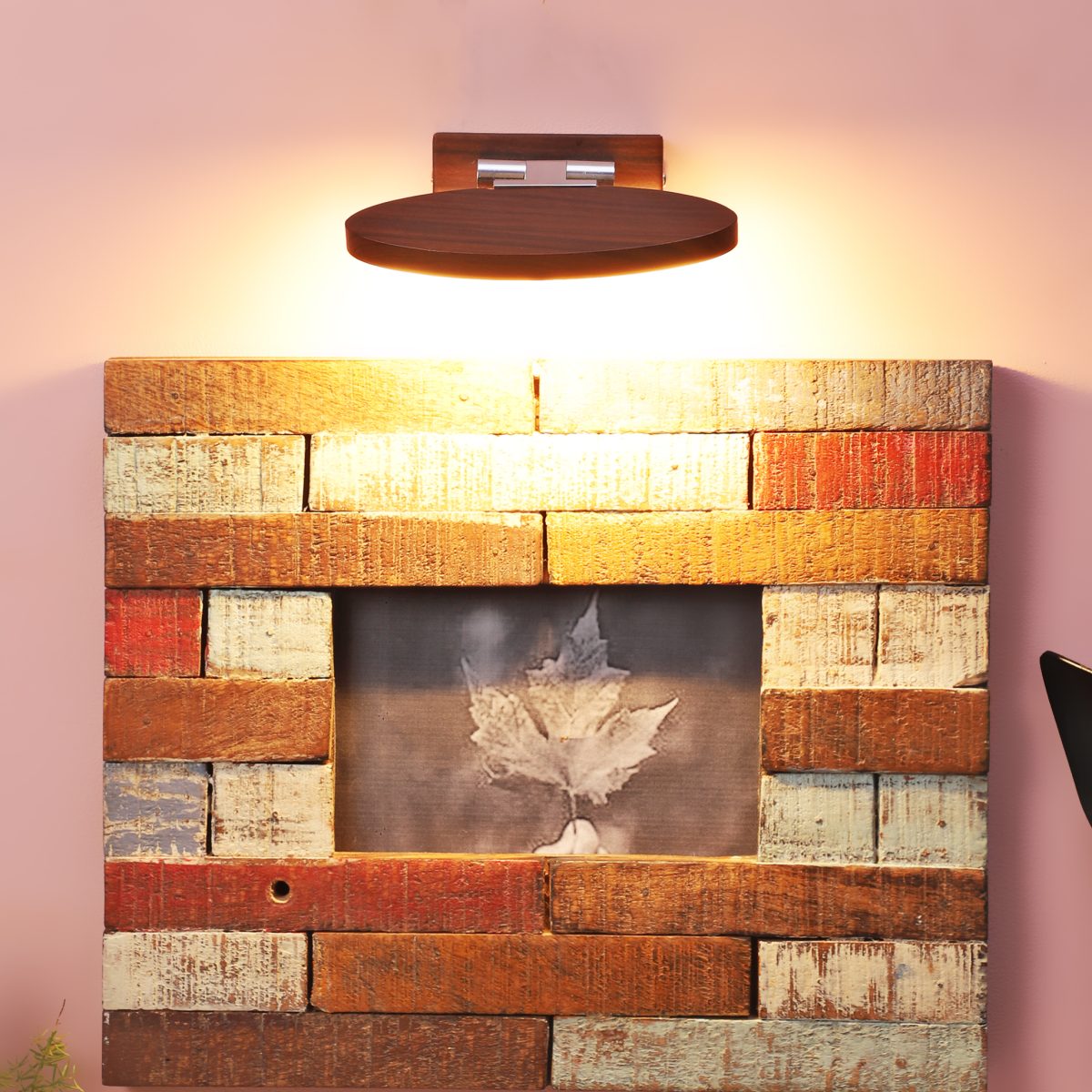 Exclusive dark brown (wood finish) LED picture light using high quality LED and driver with high success rate having less than 0.5% replacement with warm white (yellow) light output. It features one adjustible point. It is usually placed over the painting or a photo frame on the wall. Can also be used above the mirror. Its premium quality wood finish makes it one of the best selling product in our catalogue. It can be made in silver, antique, copper, and black finish in case of bulk requirement. Also available in medium size with code ML379-M.