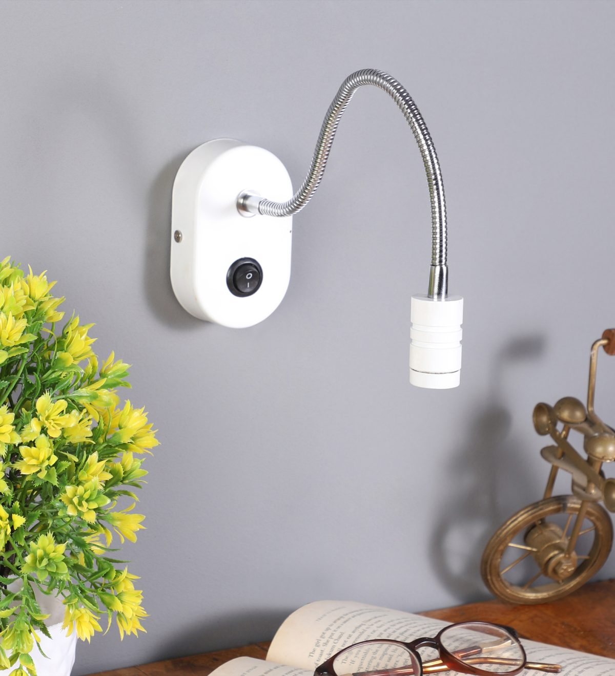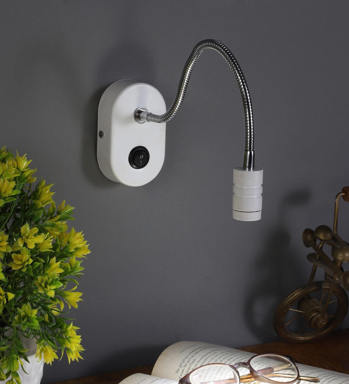 White , sleek, economical, aluminium, mild steel adjustable bed side spot light using high quality LED and driver with high success rate having less than 0.5% replacement. It is one of the best selling product. Ideal to install on the side of the bed at a low height. This highlights a small area giving white light output , which can be adjusted by rotating the pipe in any required direction. The sleep of the other person is not disturbed while using this light since the area highlighted is limited.. It in available in warm white (yellow) light output with code SL89-WW. It can also be used as a spot light or a picture light to enhance the look of any object.