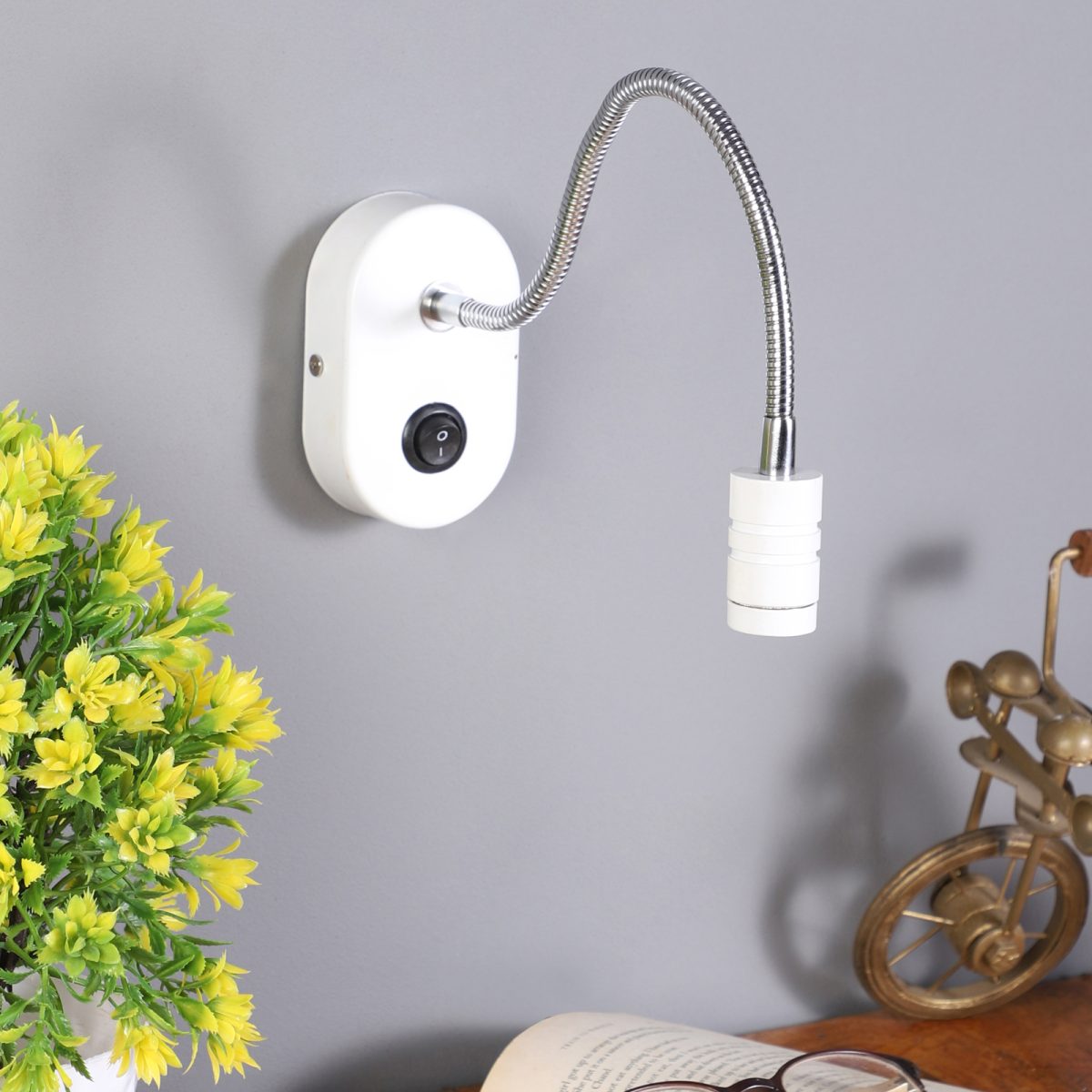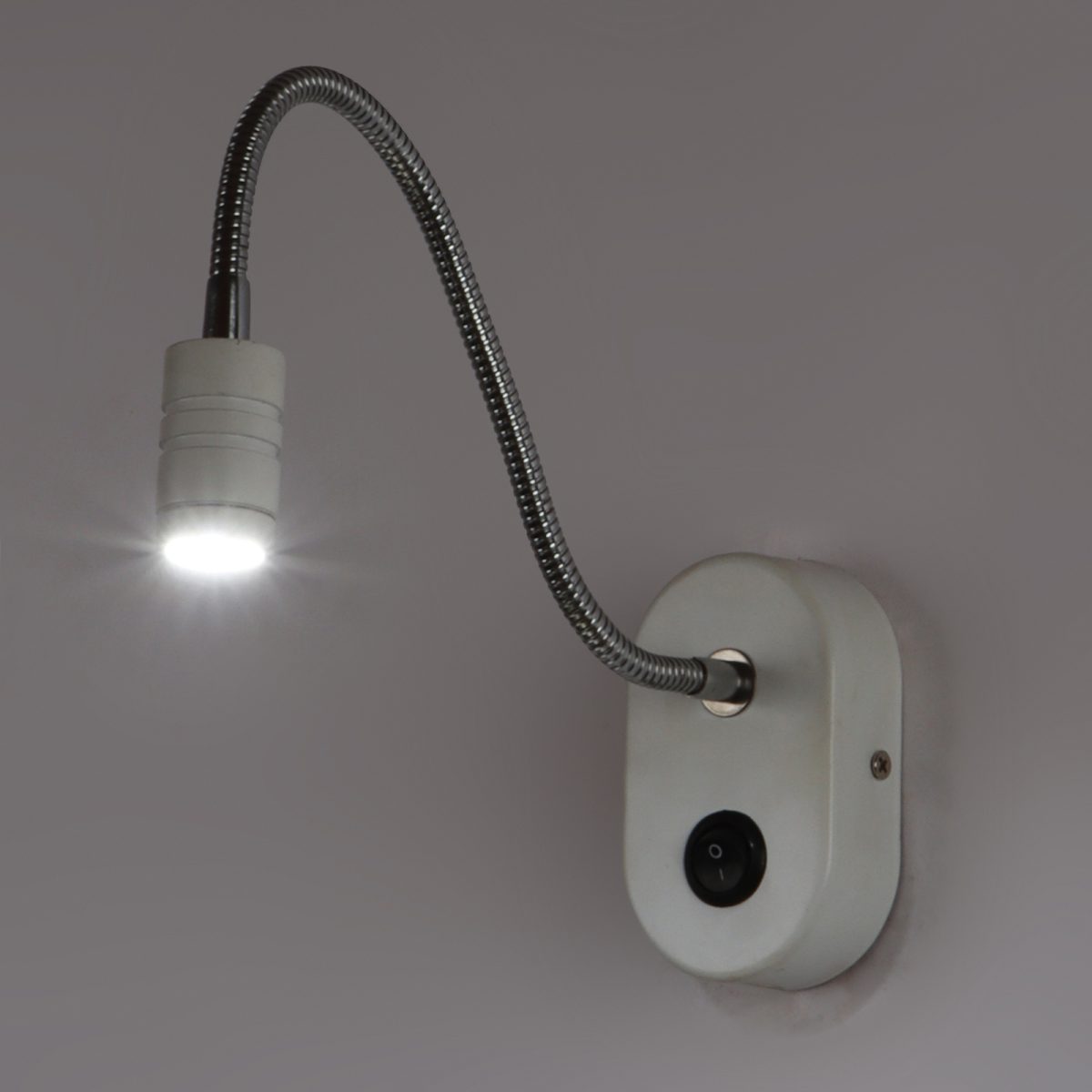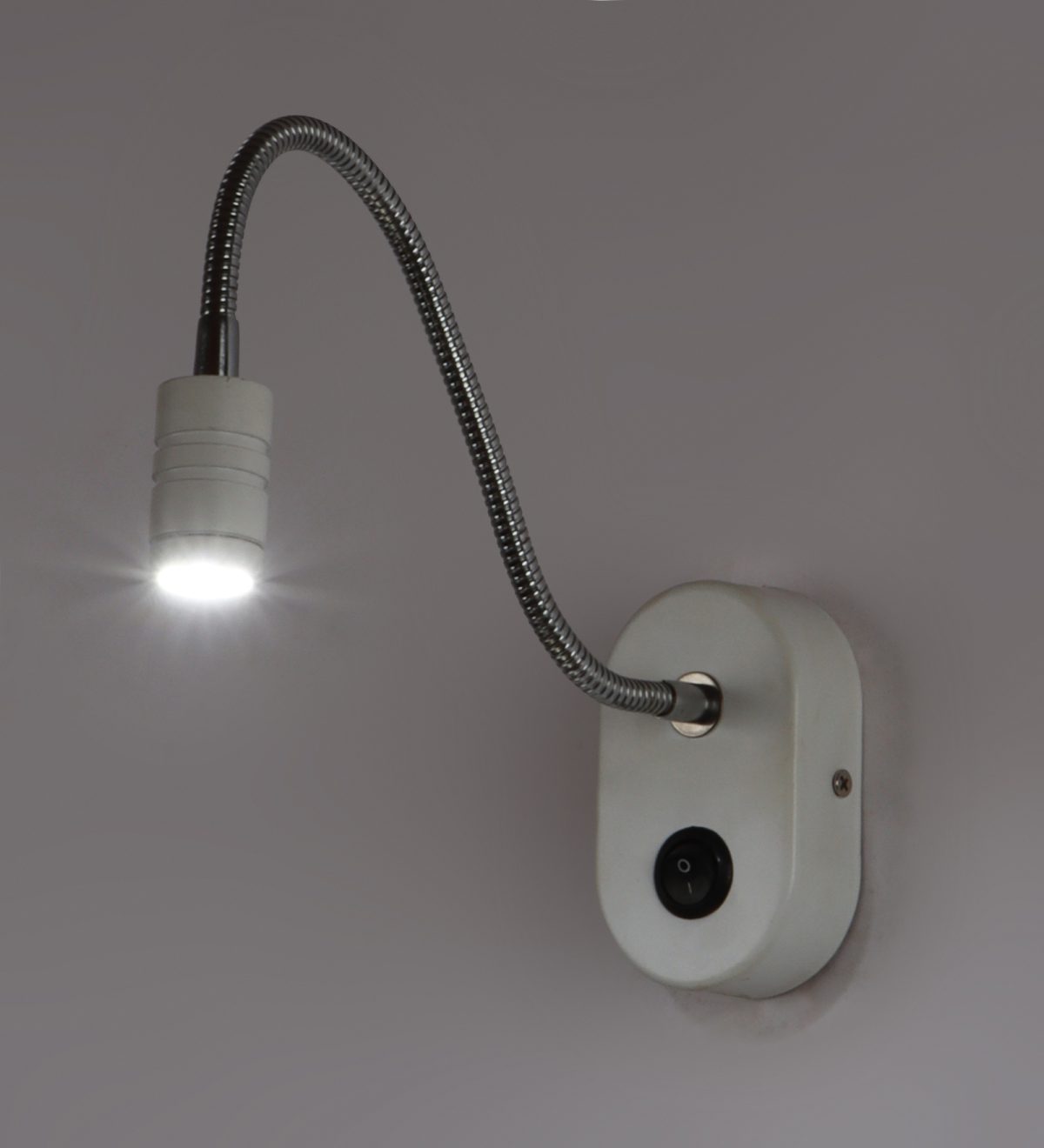 LEARC Led Lighting powder coated white finish 3 watt LED Bed Side Light with switch with yellow light SL89-WW